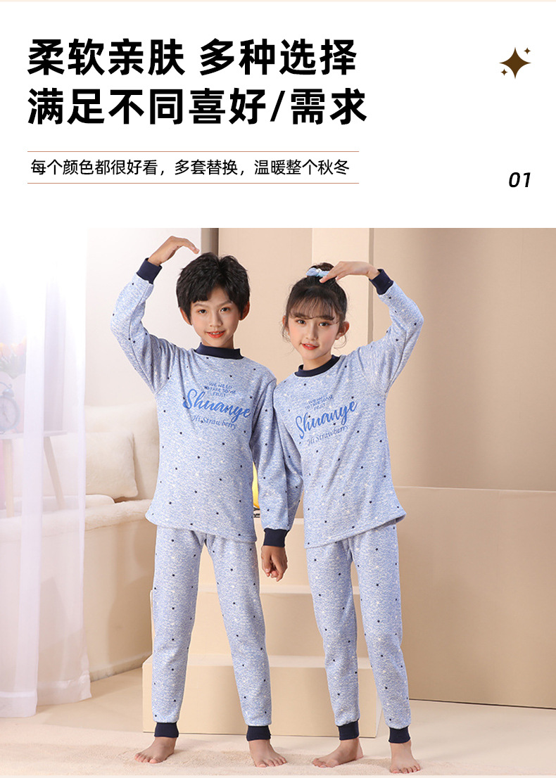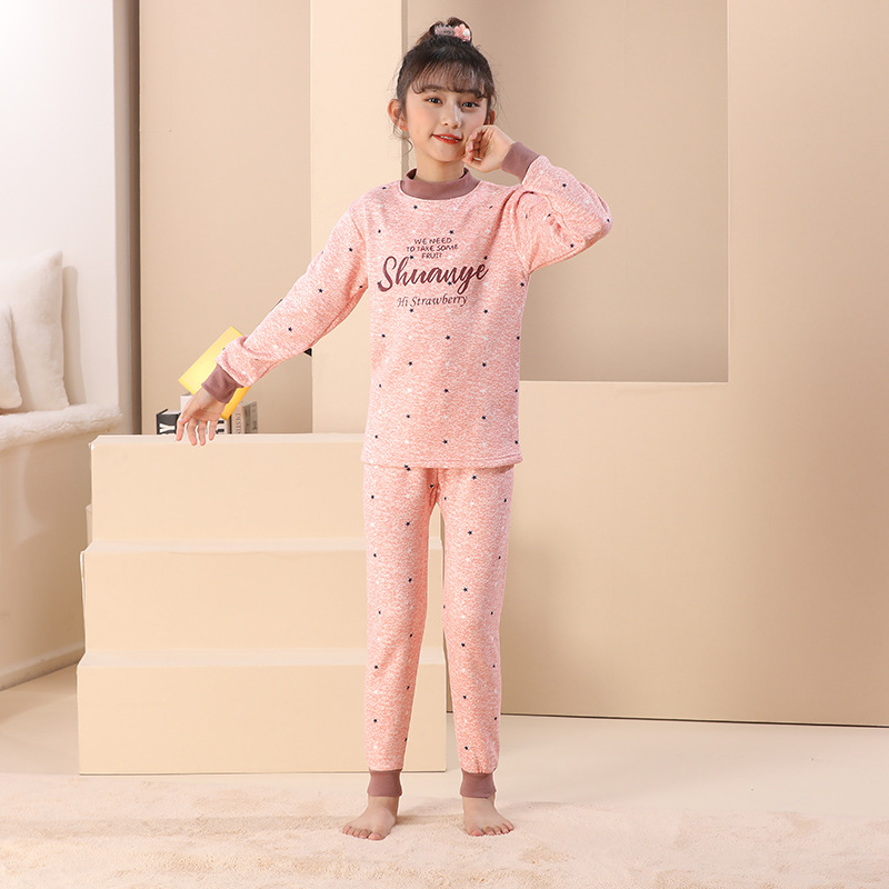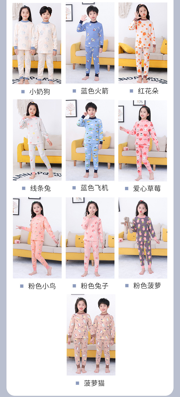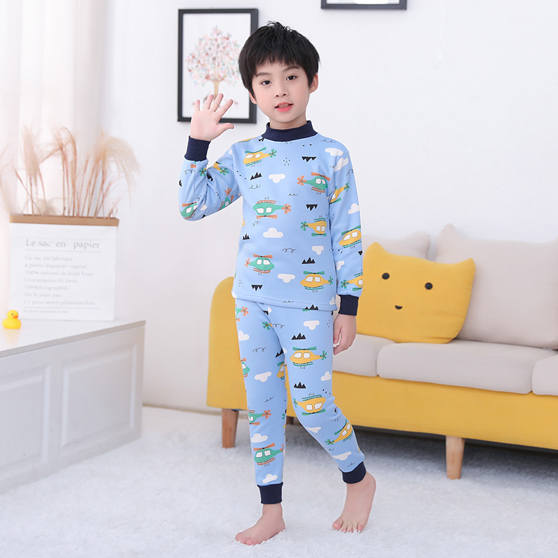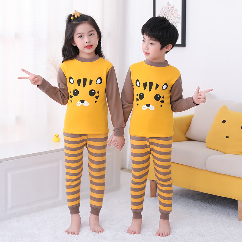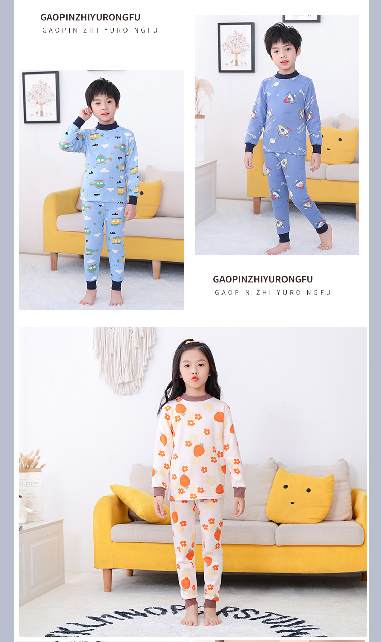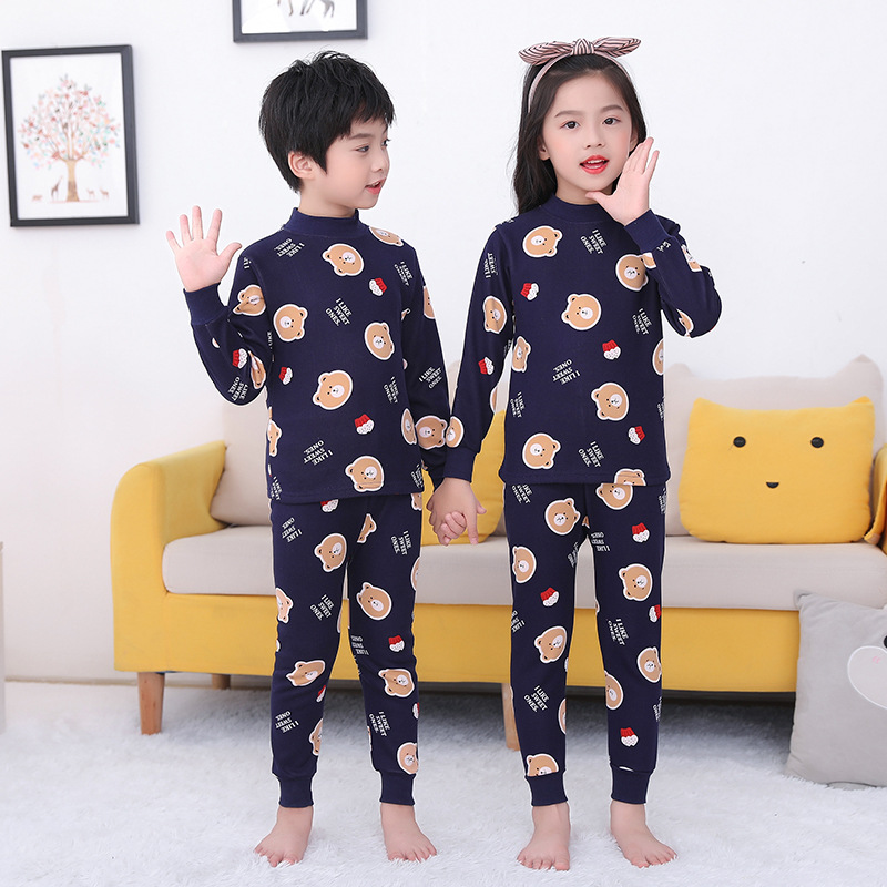 아동용 보온 속옷 세트, 유아용 벨벳 두꺼운 중간 칼라, 남아 및 여아 가을 옷 및 긴 바지, 중대형 아동용 잠옷, 가을 겨울스토어 가기