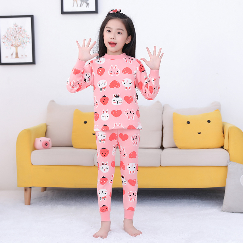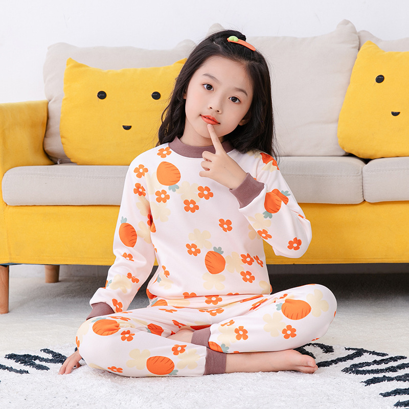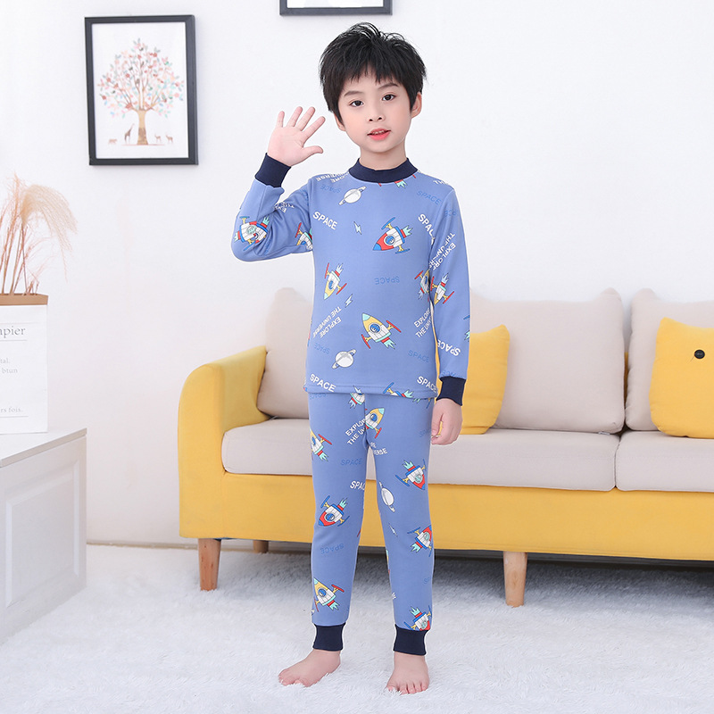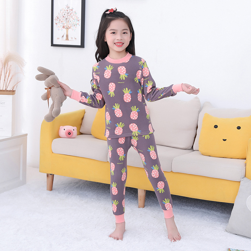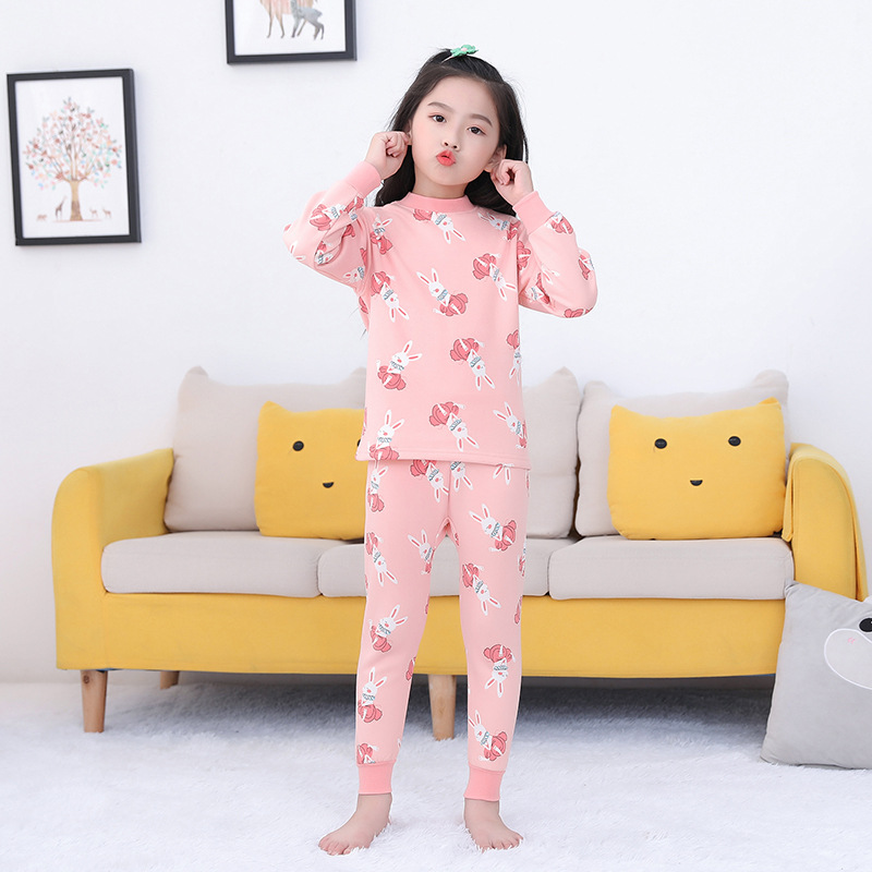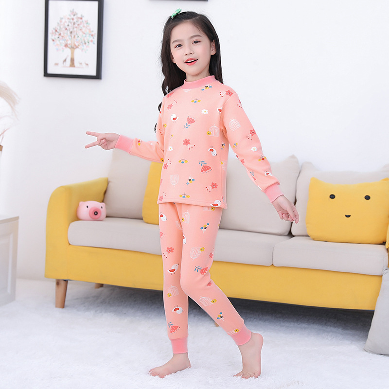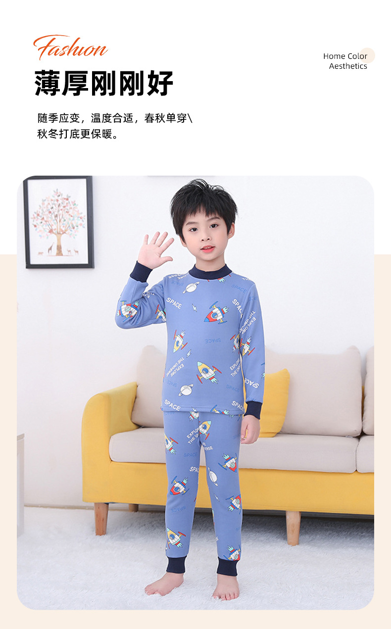 아동용 보온 속옷 세트, 유아용 벨벳 두꺼운 중간 칼라, 남아 및 여아 가을 옷 및 긴 바지, 중대형 아동용 잠옷, 가을 겨울스토어 가기