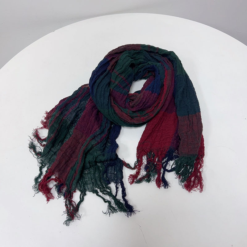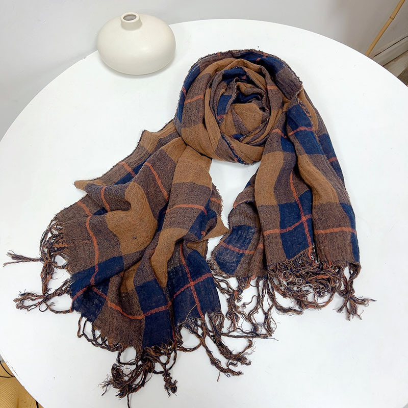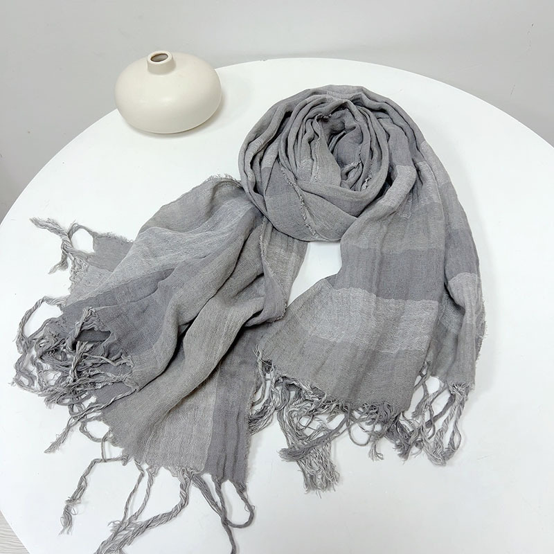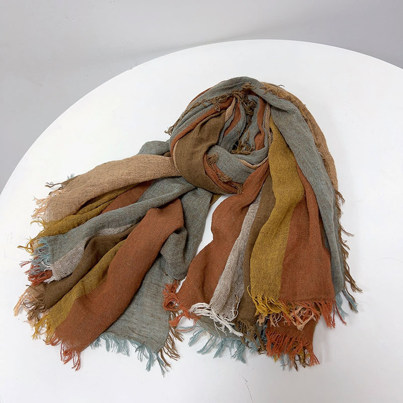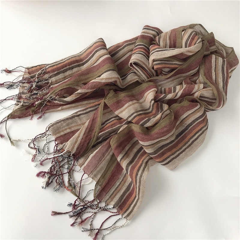 봄과 여름 얇은 면화와 리넨 줄무늬 스카프 예술적 모든 경기 부드러운 목 보호 스카프 여성 여행 목도리 2023 신제품