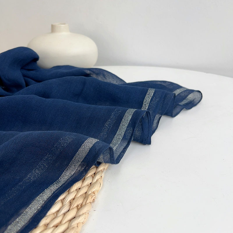 • 면과 린넨 네이비블루 70*180+2*10cm