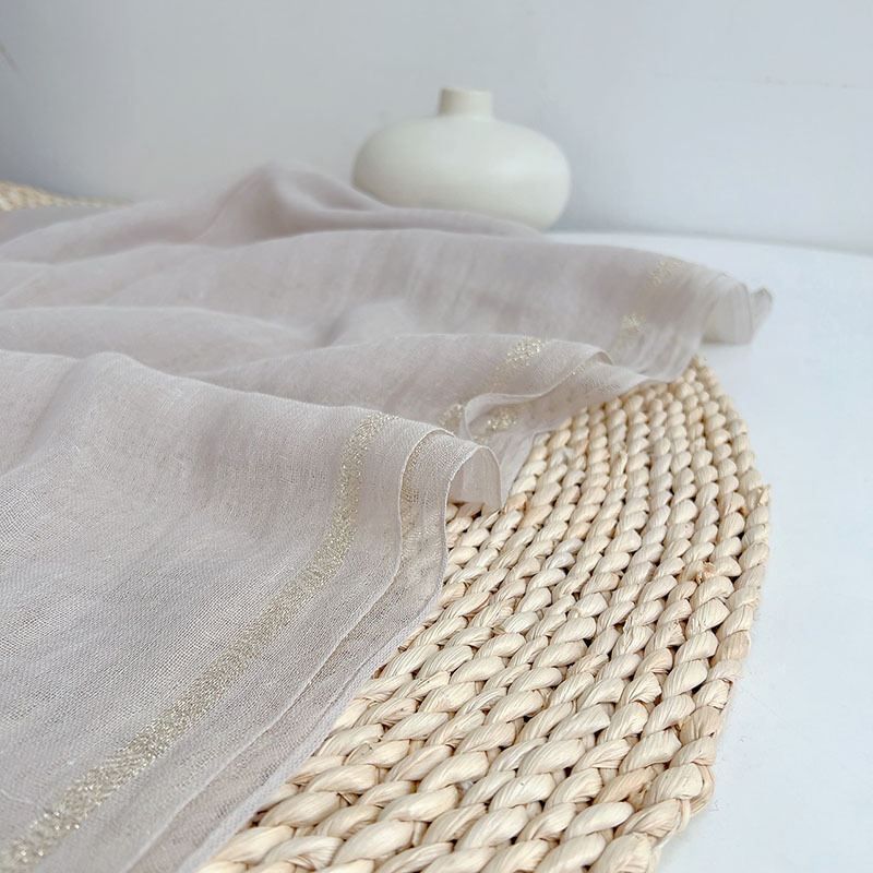 • 코튼 린넨 골드 엣지 라이트 핑크 70*180+2*10cm