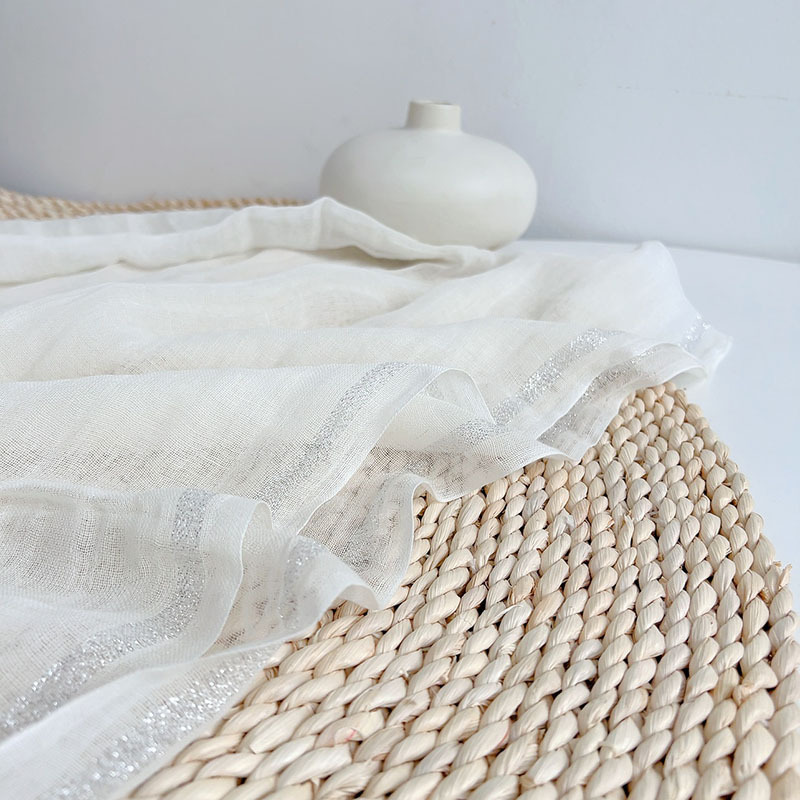 • 스퀘어 스카프 면과 린넨 스트라이프 140*140cm