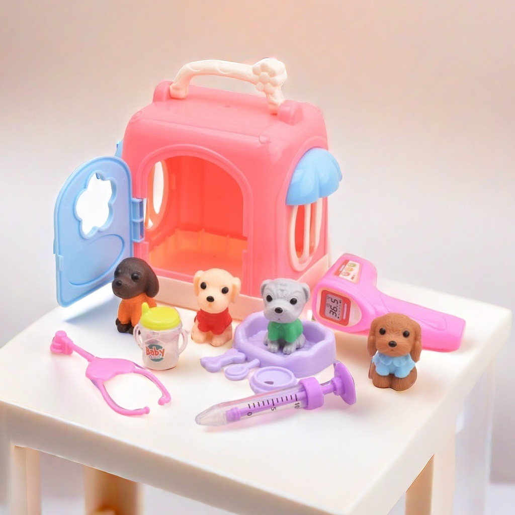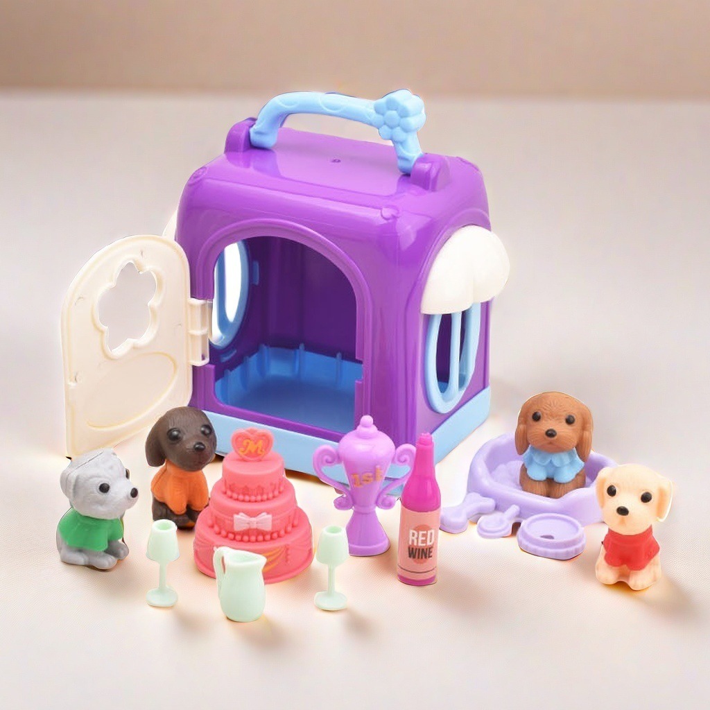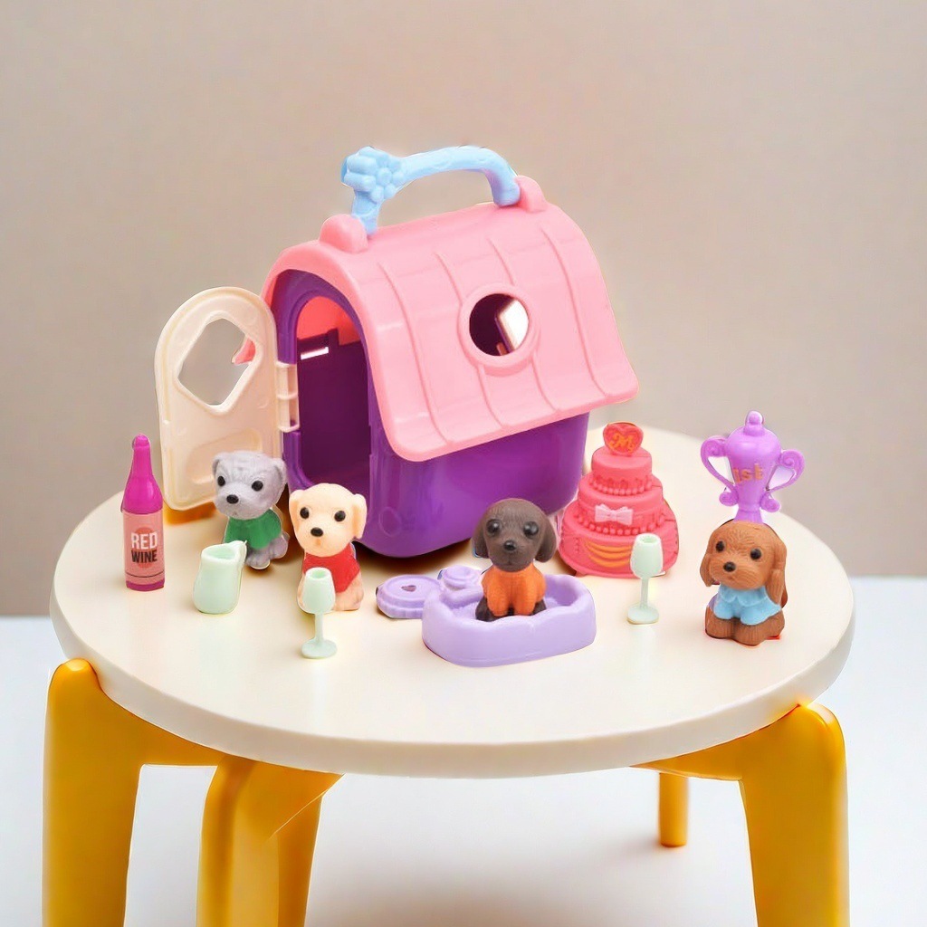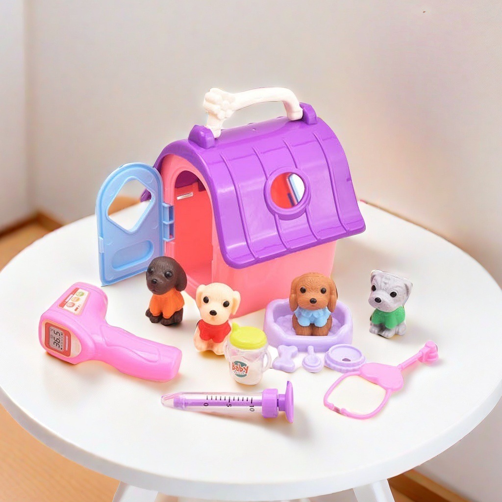 국경 간 어린이 집 인형 액세서리 미니 시뮬레이션 애완견 집 개 케이지 세트 소녀 장난감