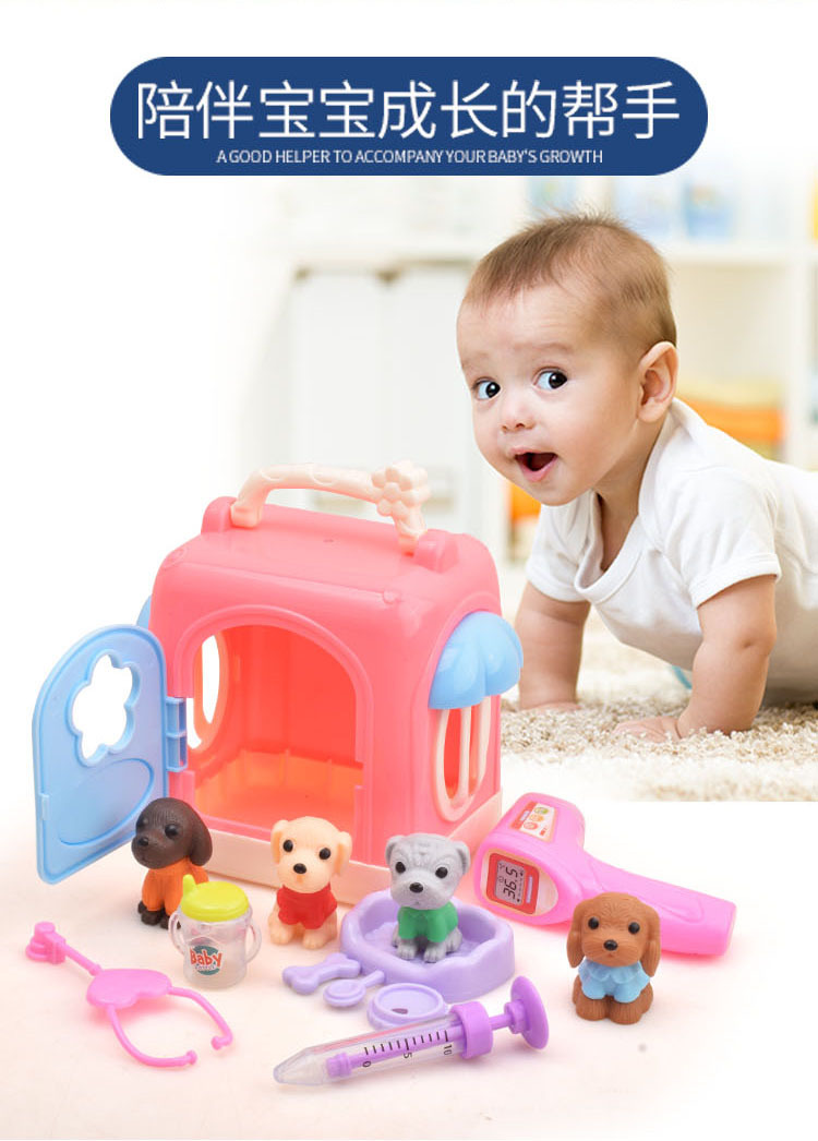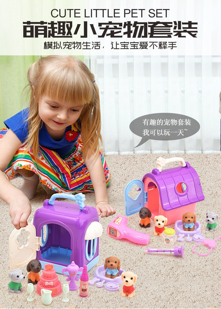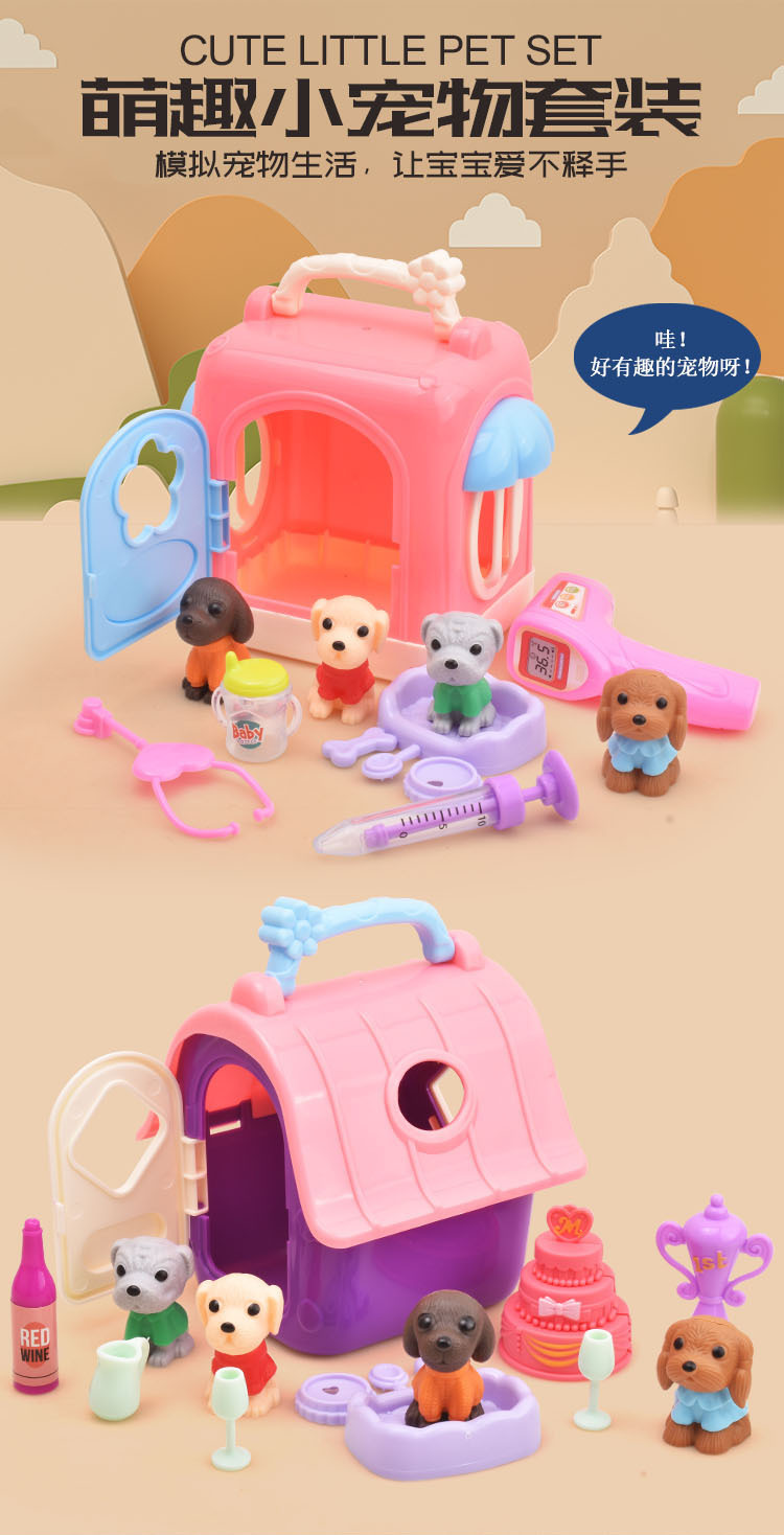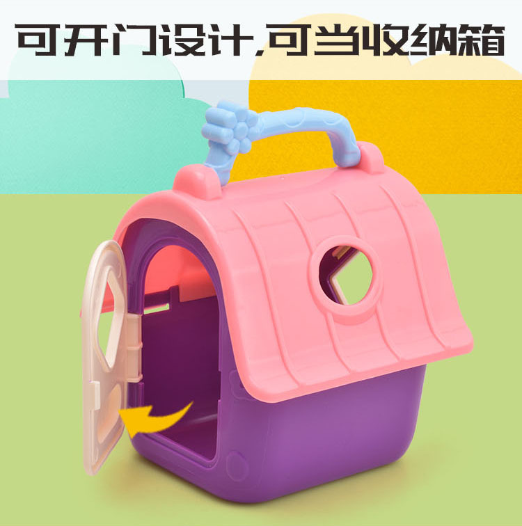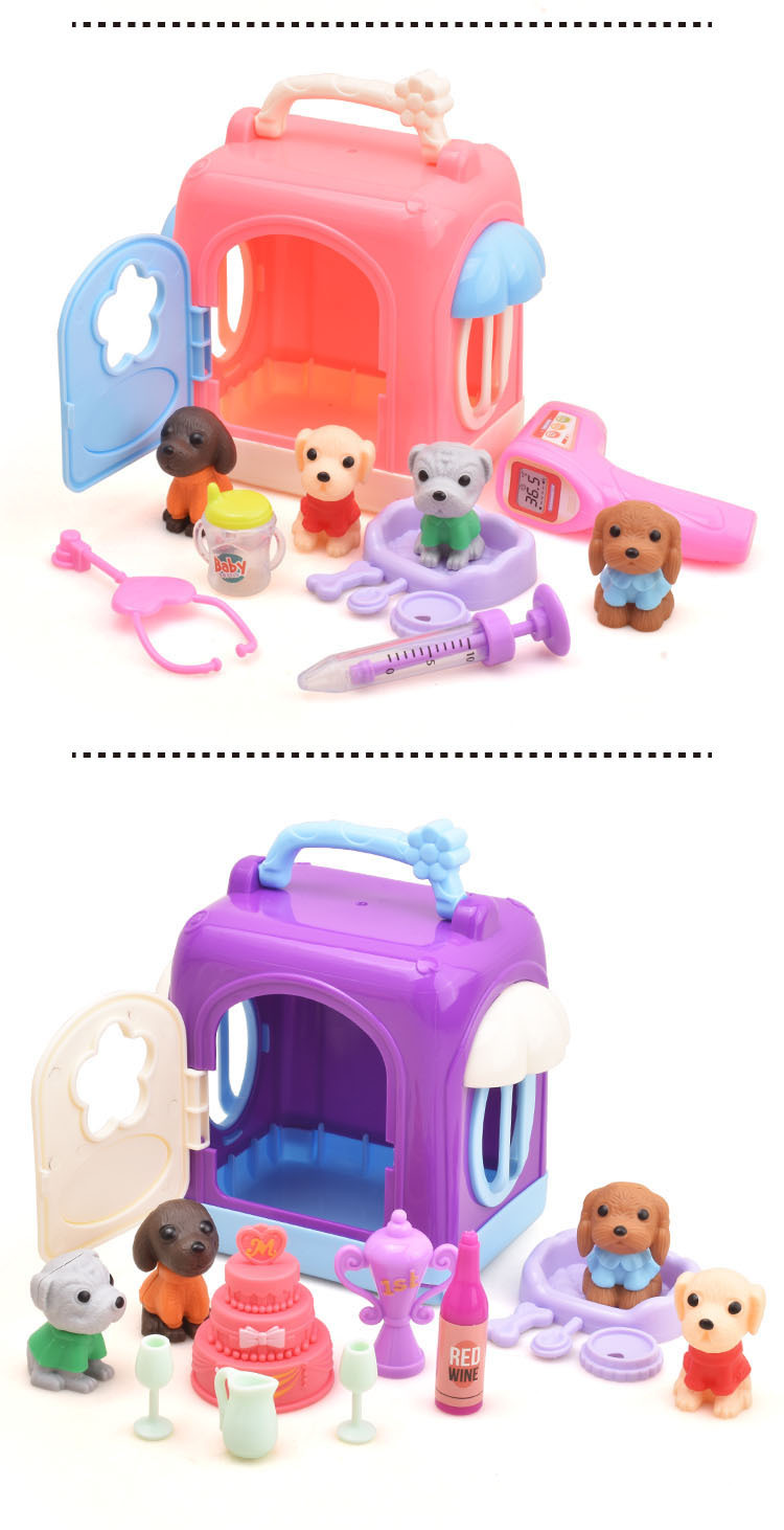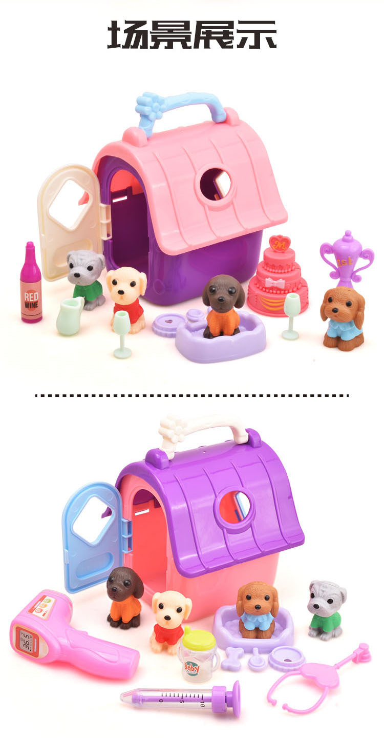 국경 간 어린이 집 인형 액세서리 미니 시뮬레이션 애완견 집 개 케이지 세트 소녀 장난감스토어 가기