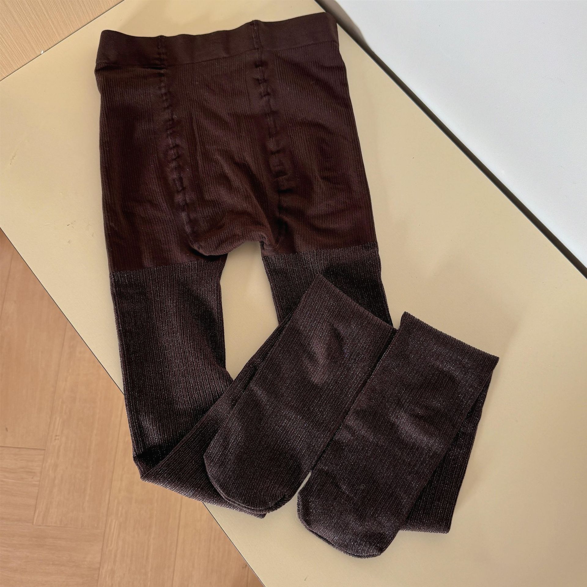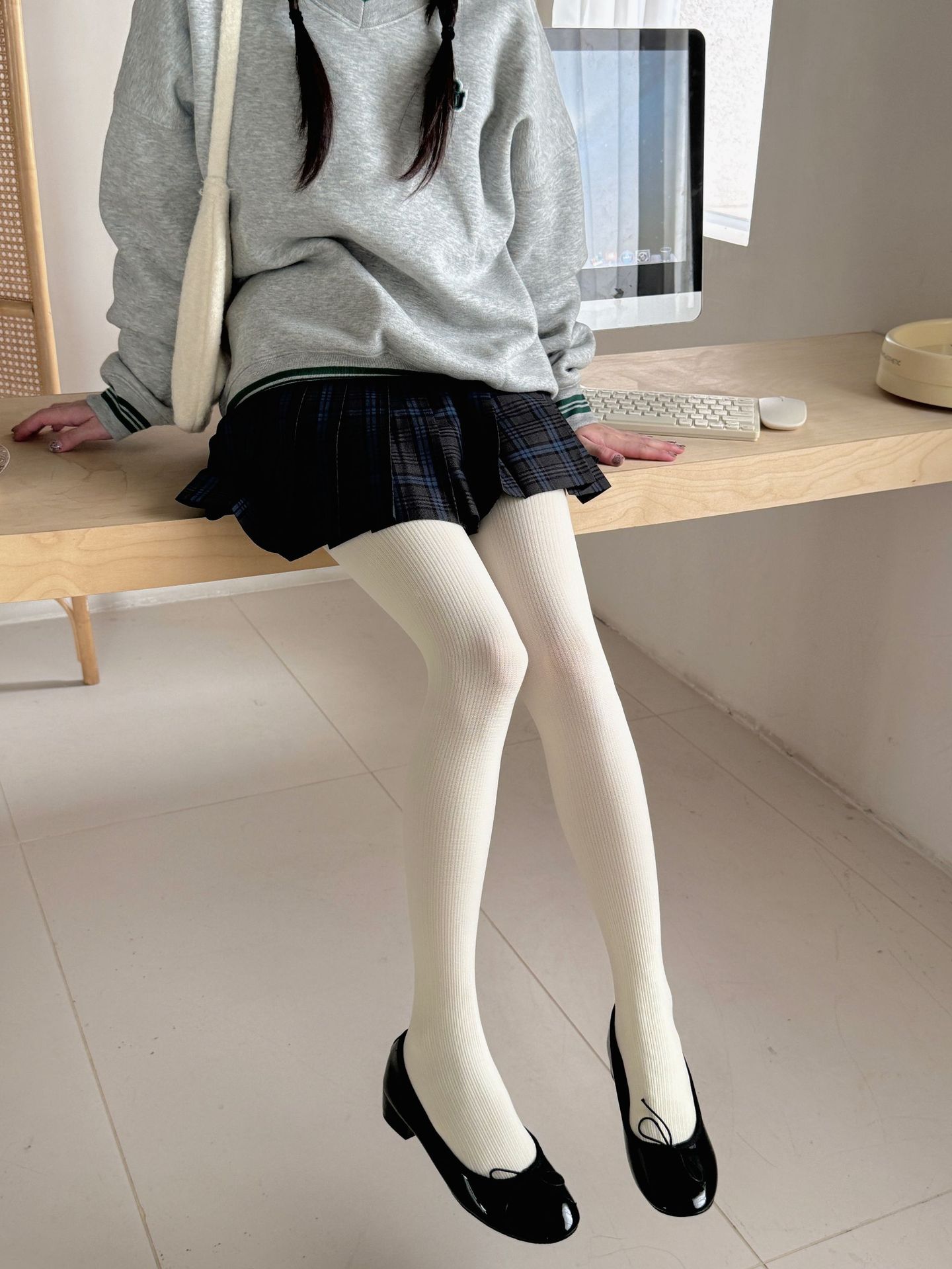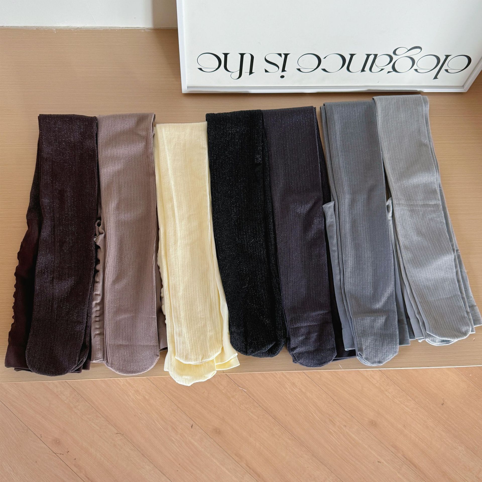 2024 가을과 겨울 새로운 수직 스트립 실버 실크 팬티 스타킹 흰색 달콤한 소녀베이스 양말 얇은 벨벳 여성용 양말