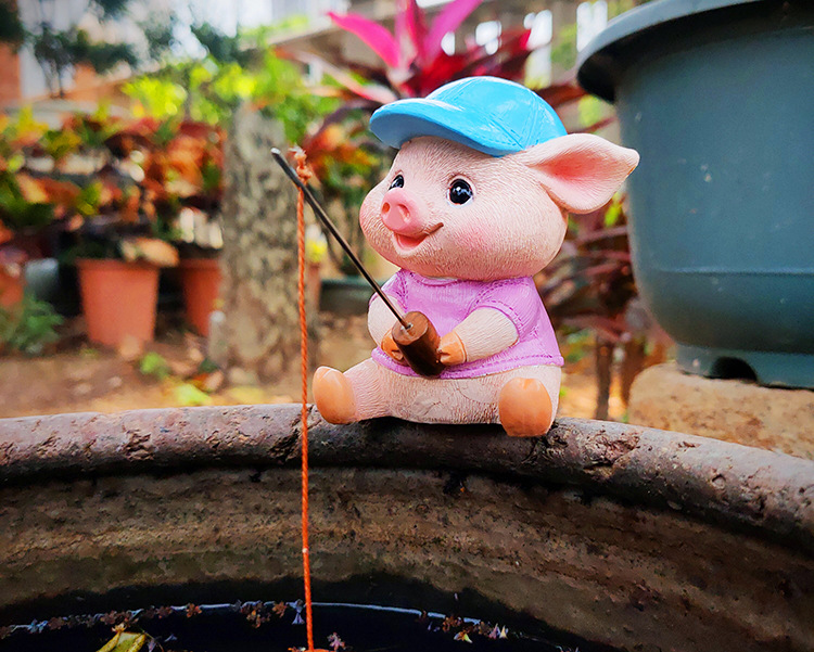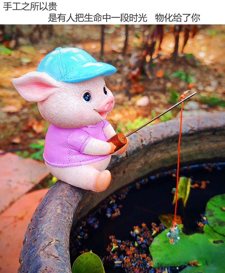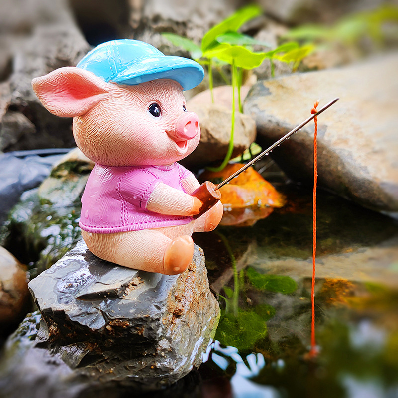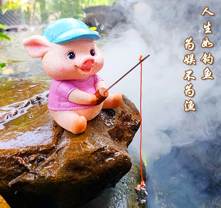 창조적 인 고대 방법 돼지 낚시 장식 장식품 안뜰 수영장 물 흡수 돌 바위 흐름 물 장치 수족관 물고기 탱크 풍경스토어 가기