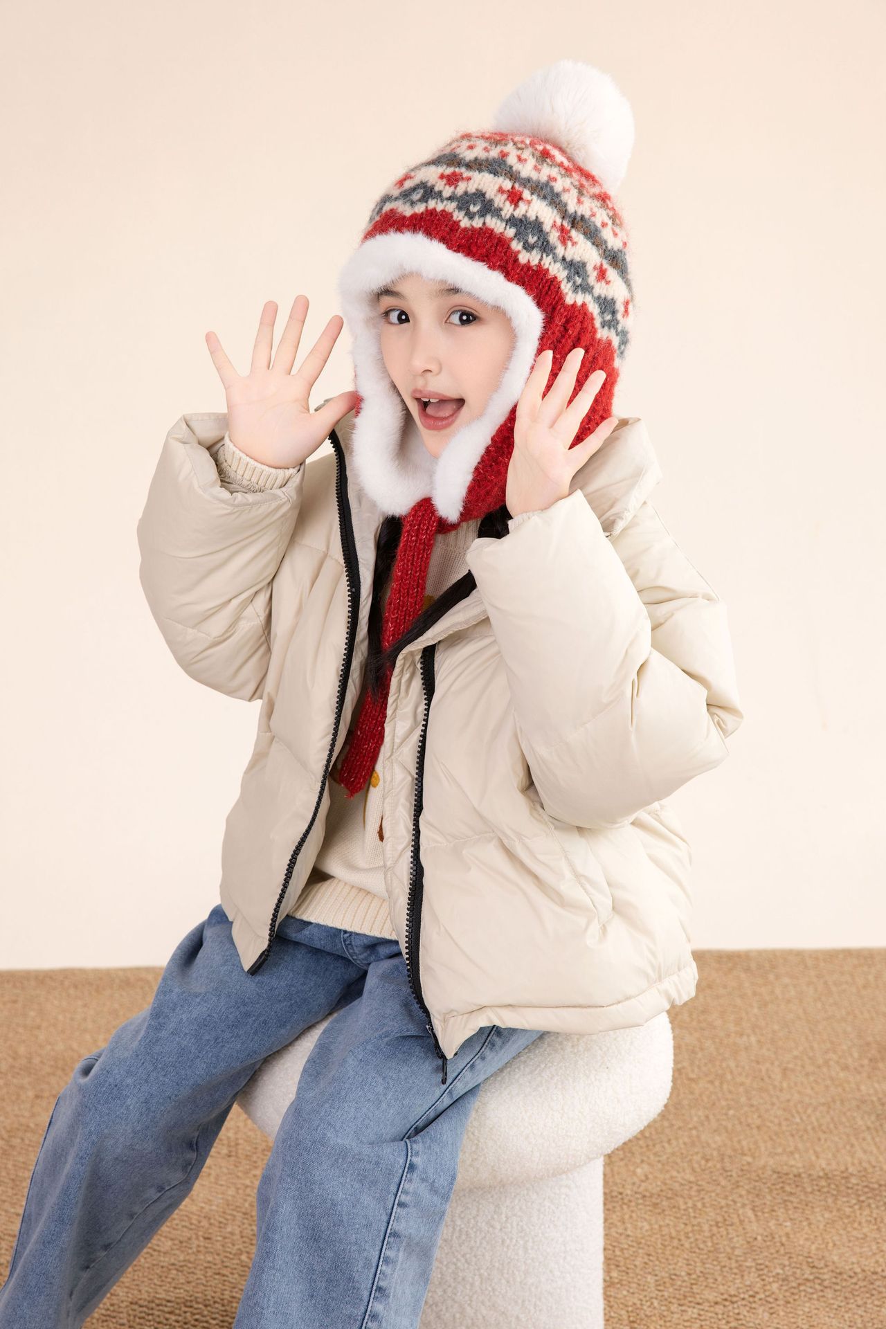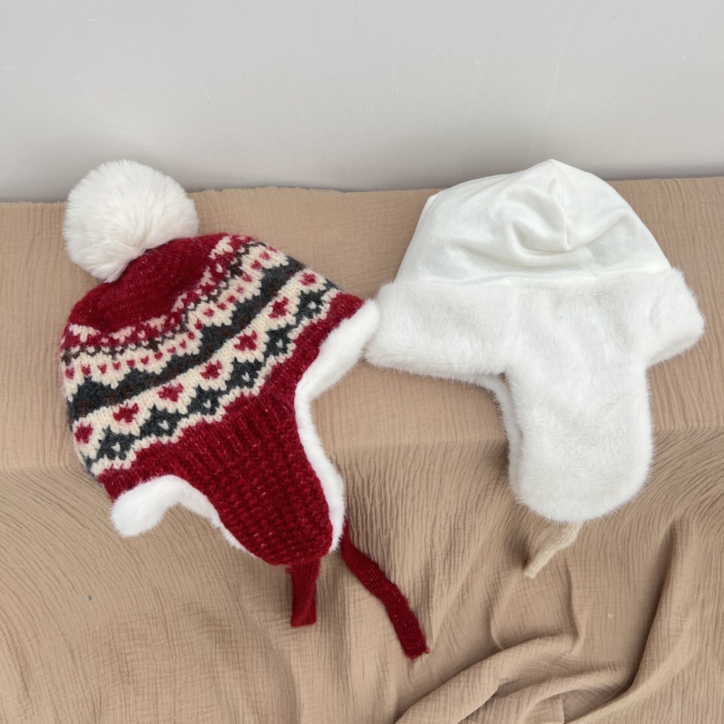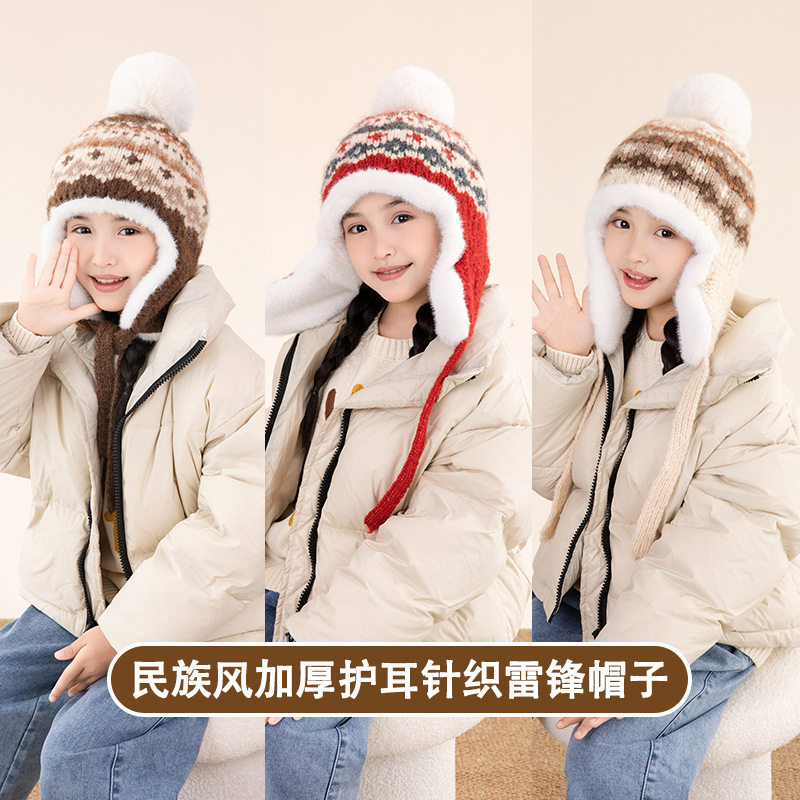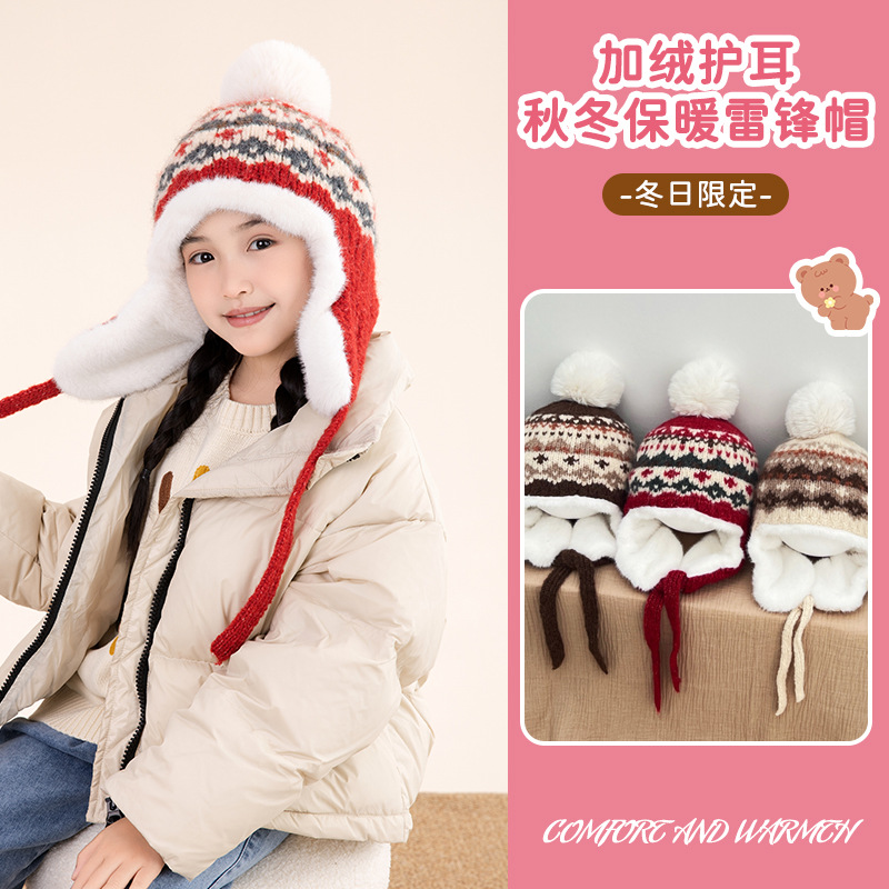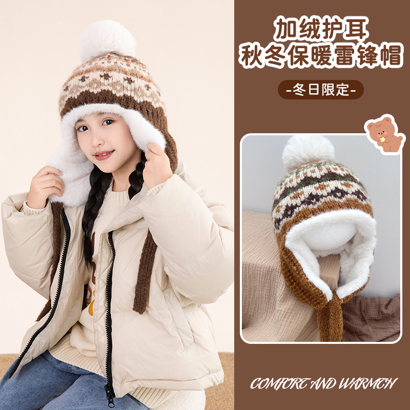 소년 소녀를위한 가을 겨울 귀 보호 모자 기모 어린 이용 모자 따뜻한 중 큰 어린이와 소녀 Lei Feng 니트 모자