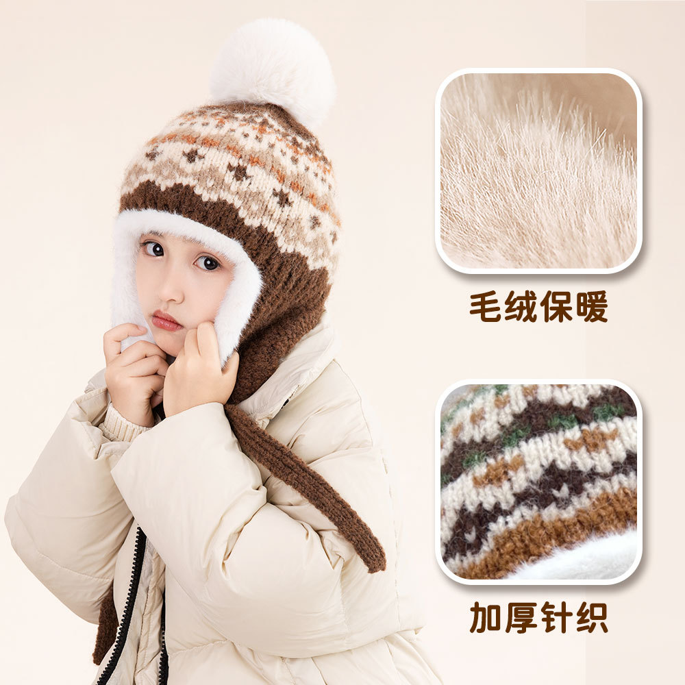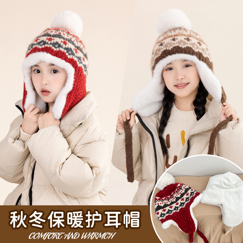 소년 소녀를위한 가을 겨울 귀 보호 모자 기모 어린 이용 모자 따뜻한 중 큰 어린이와 소녀 Lei Feng 니트 모자스토어 가기