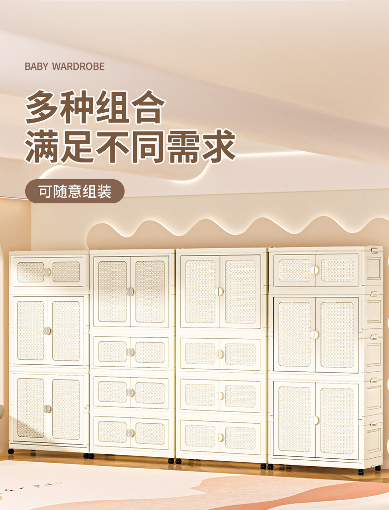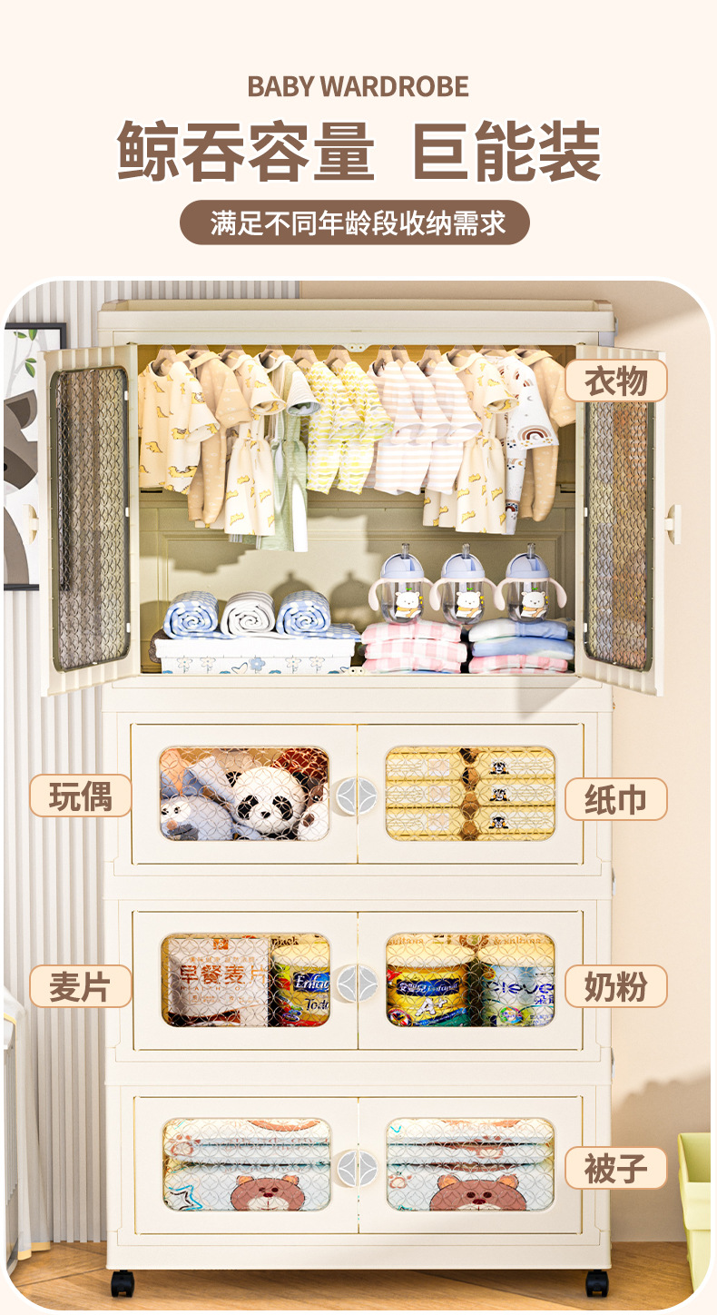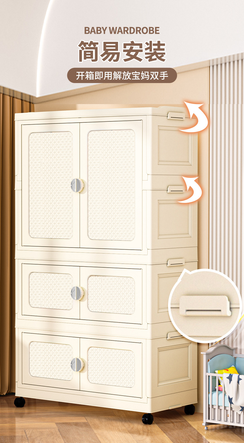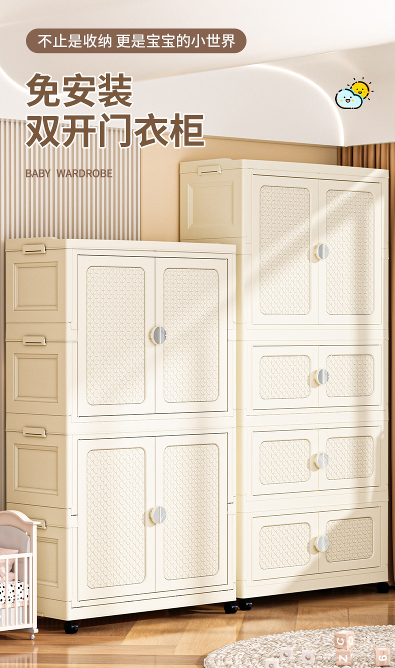 국경 접히는 이중 문 보관 캐비닛 어린이 아기 옷장 가정용 거실 플라스틱 보관 캐비닛 다층 간식 캐비닛