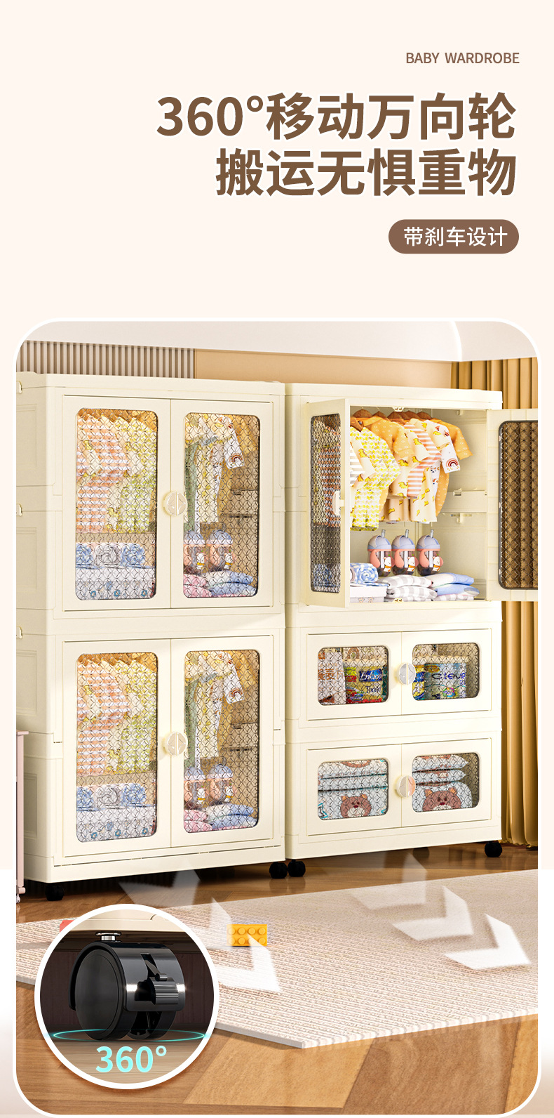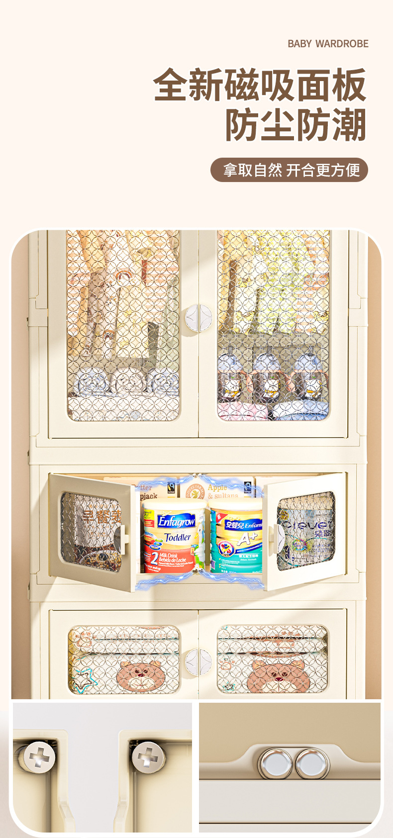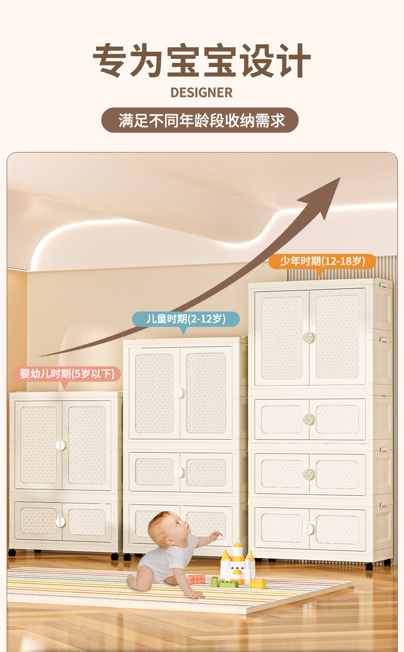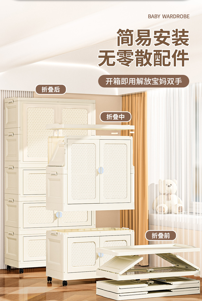 국경 접히는 이중 문 보관 캐비닛 어린이 아기 옷장 가정용 거실 플라스틱 보관 캐비닛 다층 간식 캐비닛