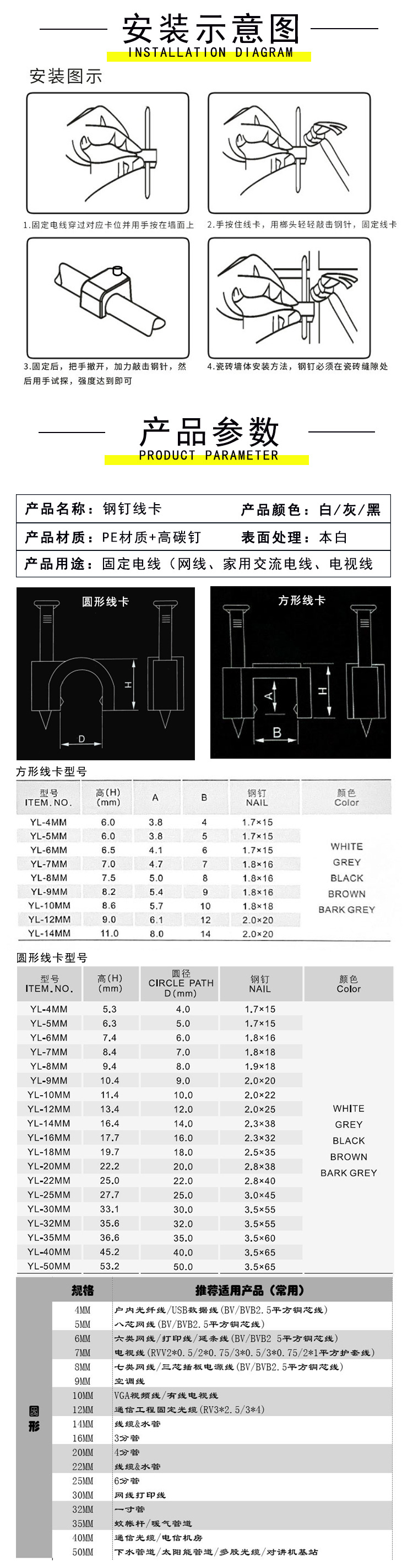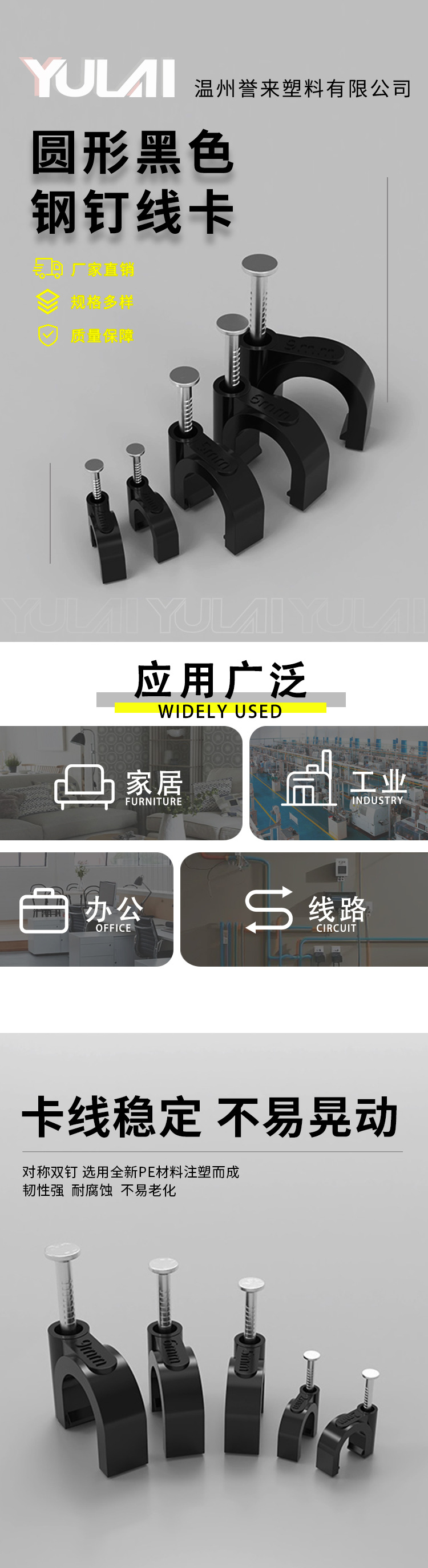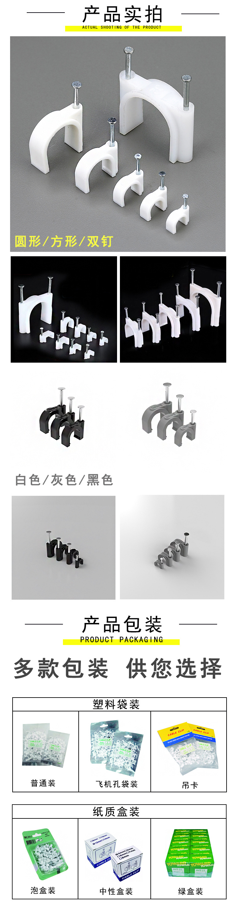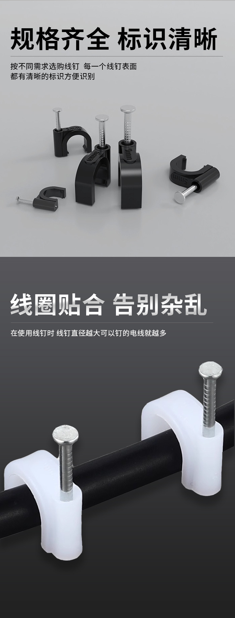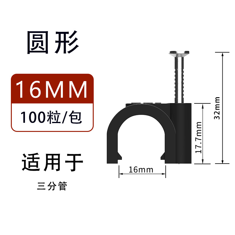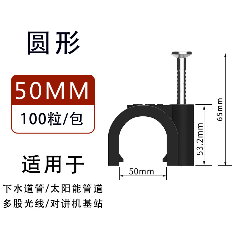 원형 강철 못선 고정 클립 검정색 네트워크 케이블 보호 클립 PVC 수도관 플라스틱 고정 클립 직판스토어 가기