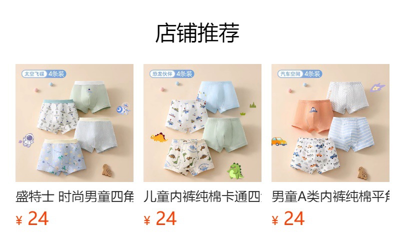공장 직판 고급 아동 속옷, 무형광, 통기성, A급 고급 순면, 유아용 남아 속옷스토어 가기