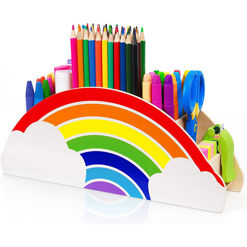 교사의 날 장식 펜 코너 데스크탑 장식 나무 저장 상자 펜 코너 교사 선물 레인보우 펜 코너 데스크 장식
