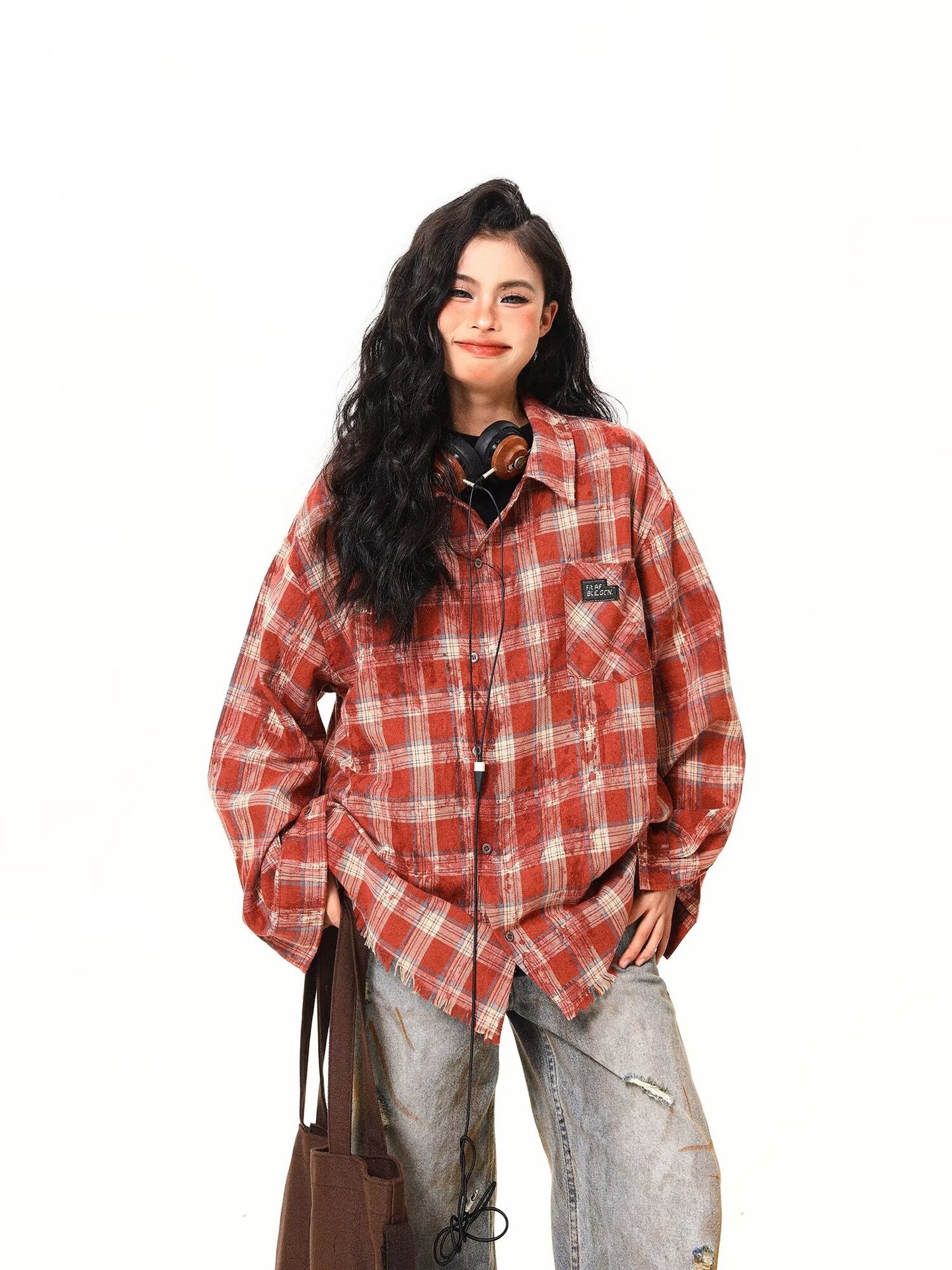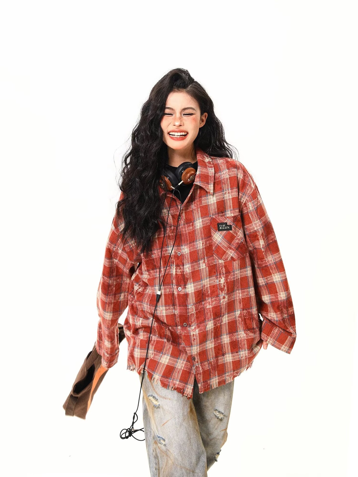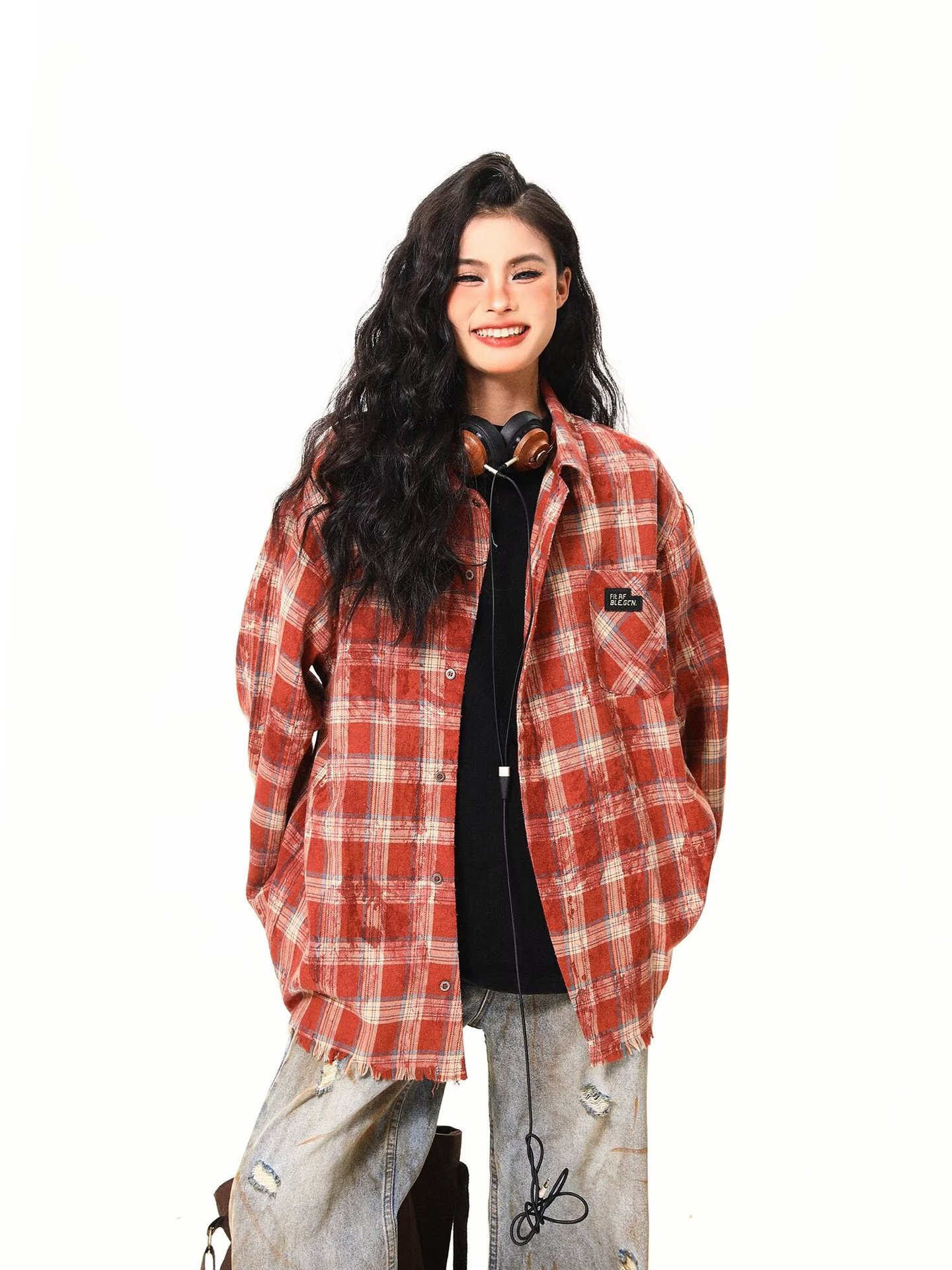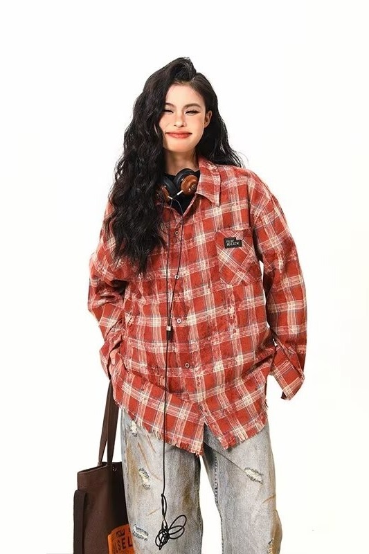아메리칸 스타일 스트리트 체크 타이 다이 셔츠 재킷 남자 봄 새로운 느슨한 술 러프 체크 무늬 셔츠 트렌디스토어 가기