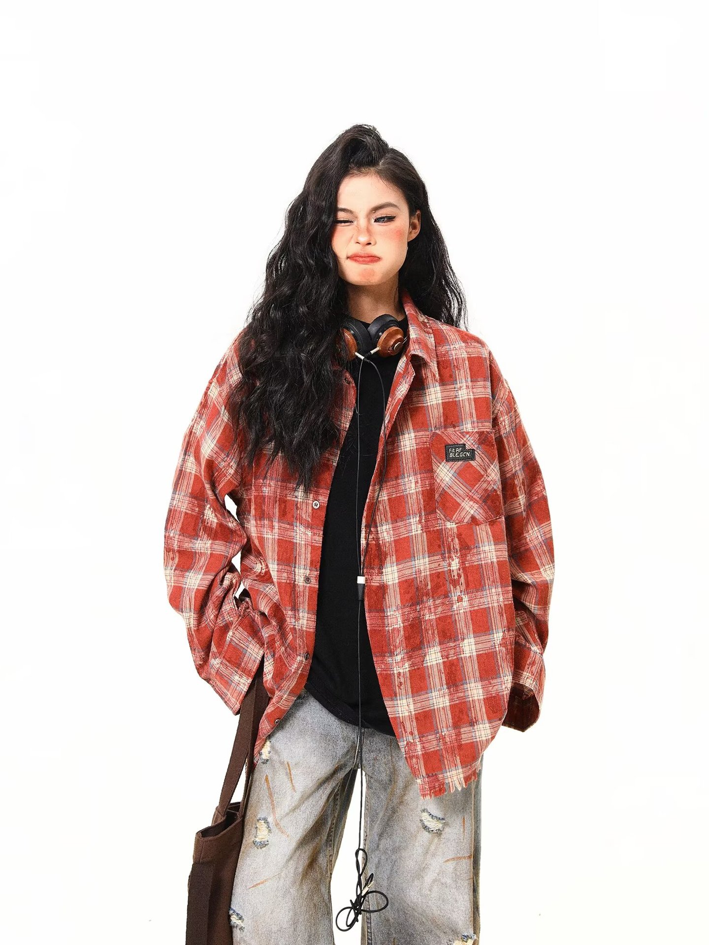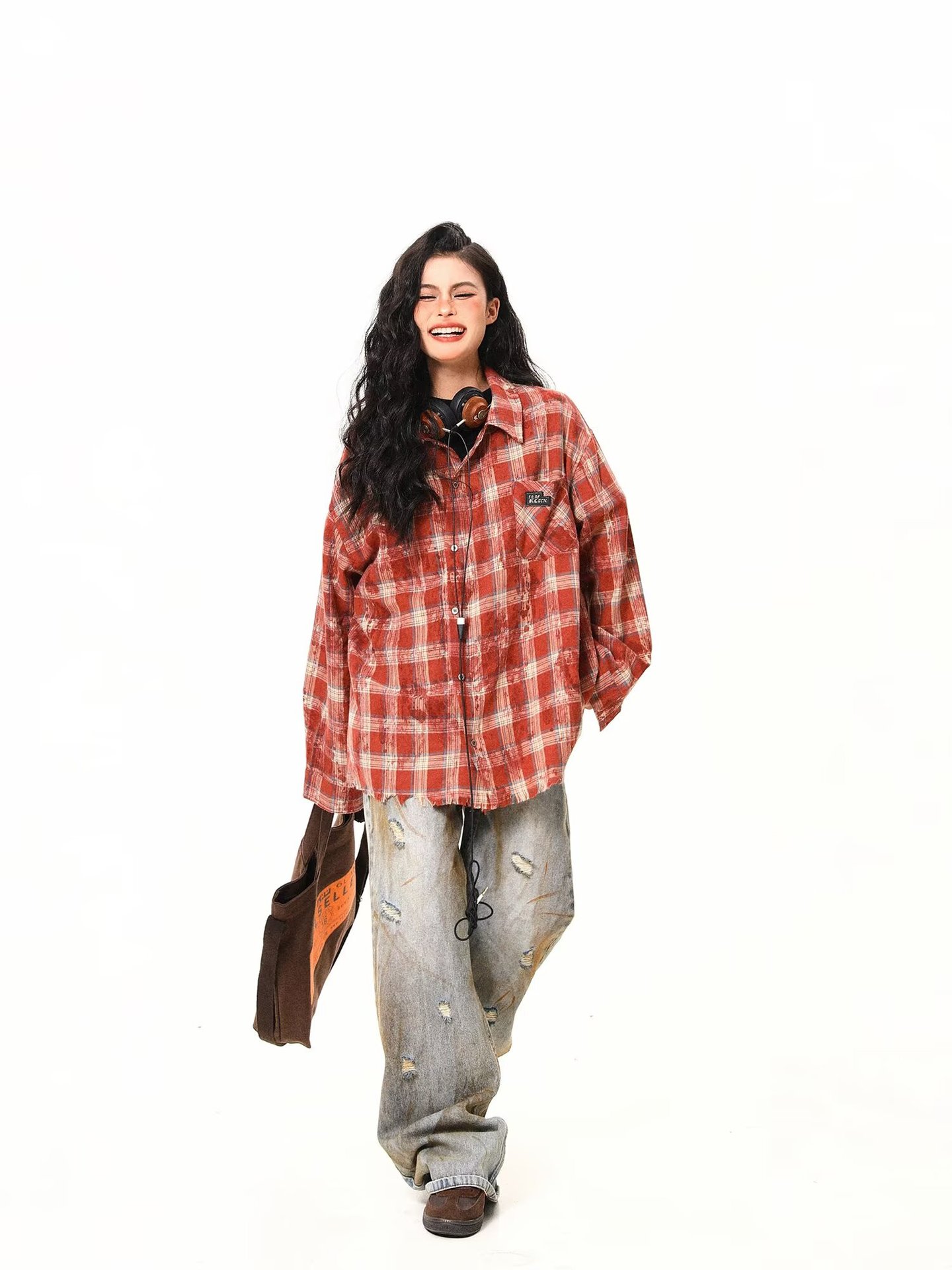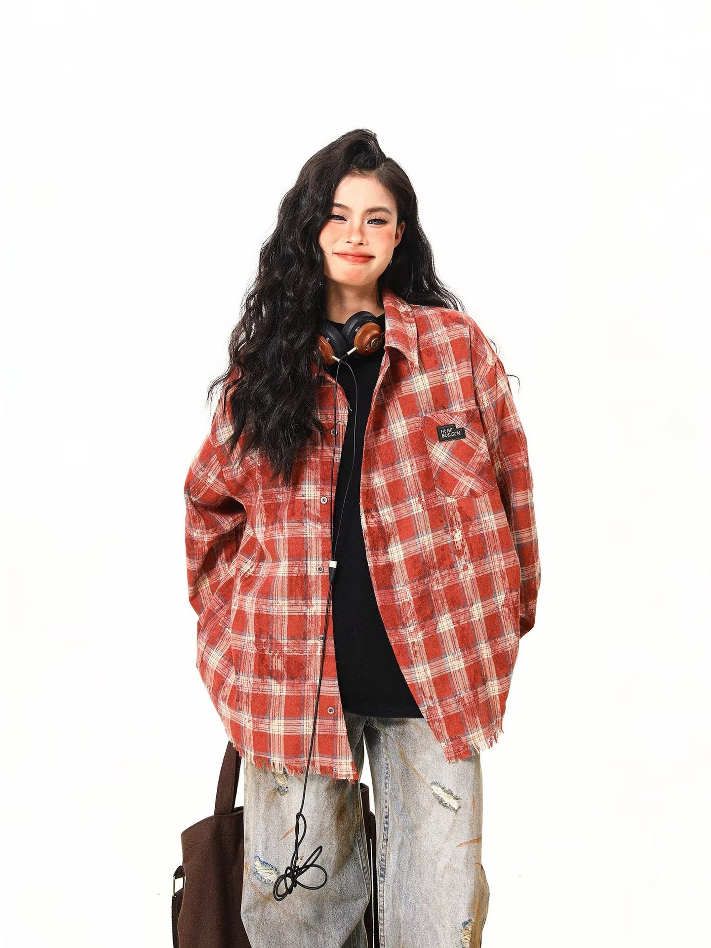 아메리칸 스타일 스트리트 체크 타이 다이 셔츠 재킷 남자 봄 새로운 느슨한 술 러프 체크 무늬 셔츠 트렌디스토어 가기