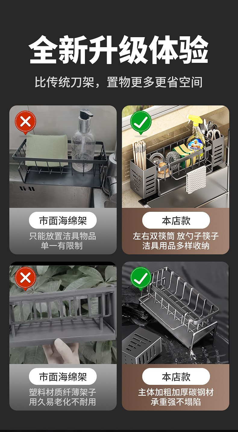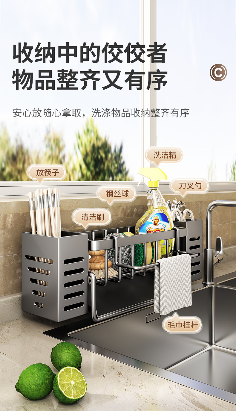 국경 간 주방 싱크 드레인 랙 싱크 천 스폰지 세제 보관 랙 다기능 식기 랙스토어 가기