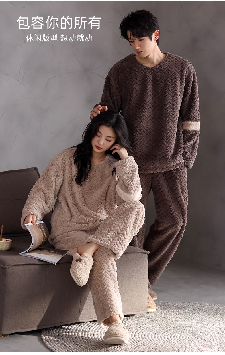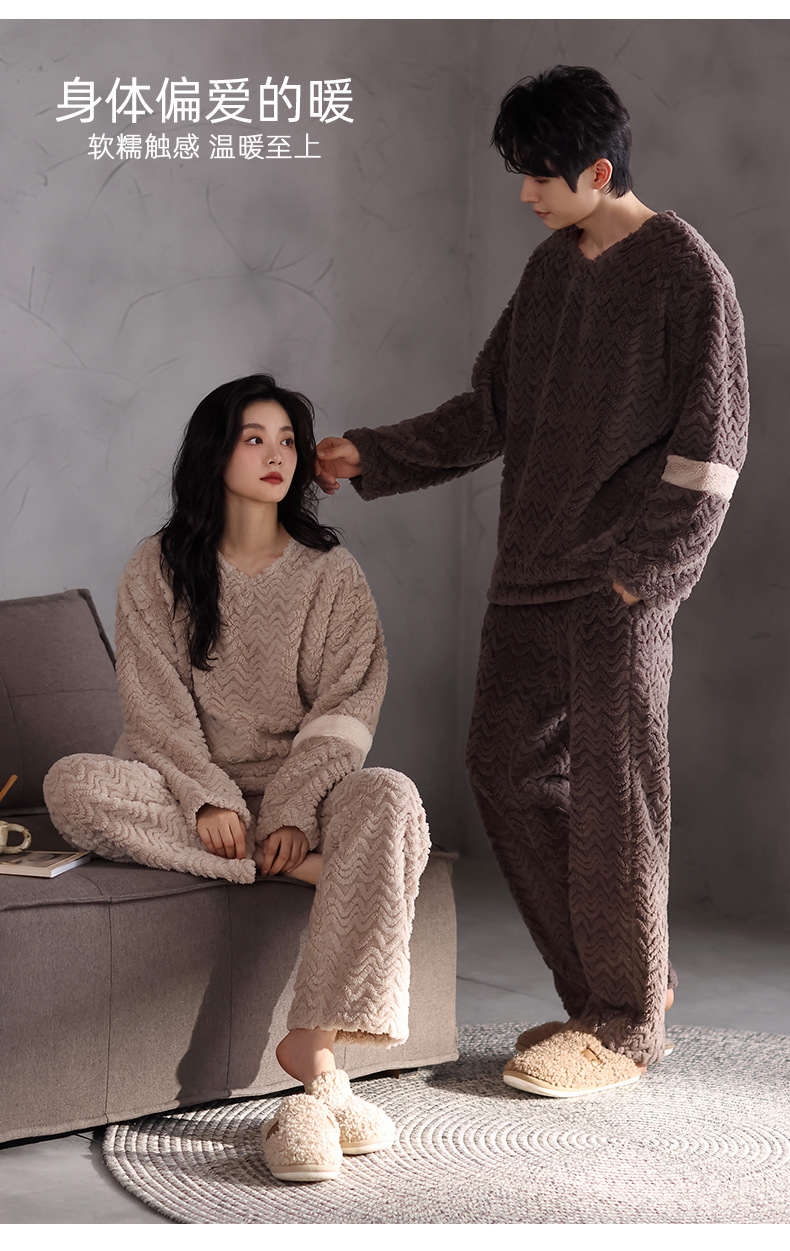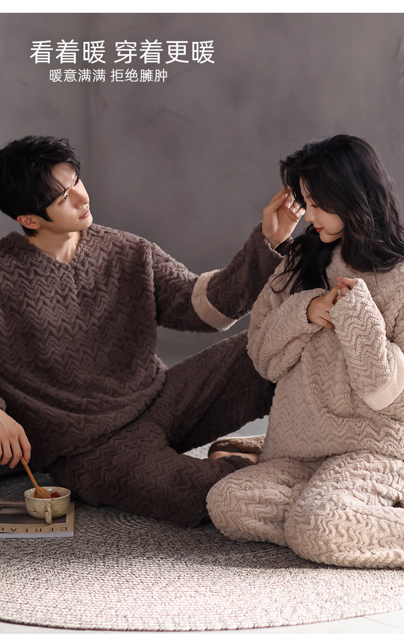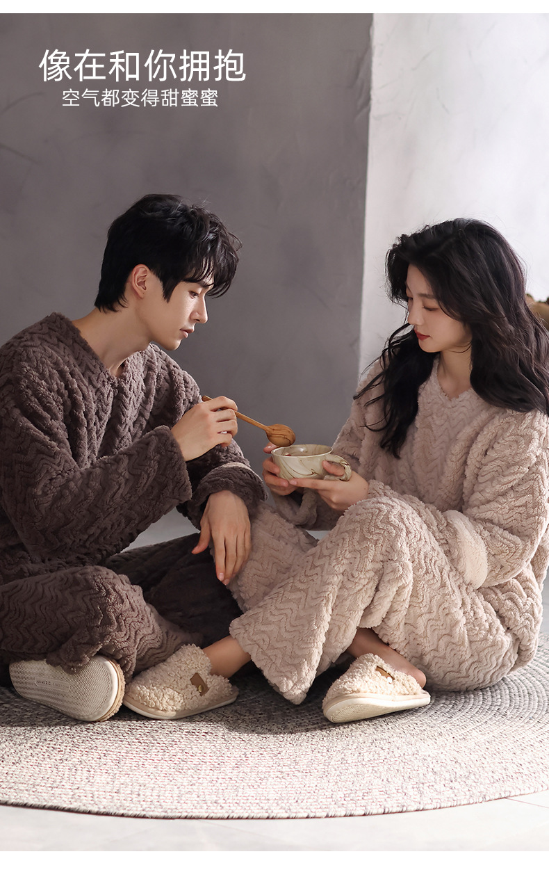 2026년 신상 가을 겨울 커플 잠옷 코랄 벨벳 플러스 벨벳 두꺼운 따뜻한 플란넬 커플 홈웨어 세트