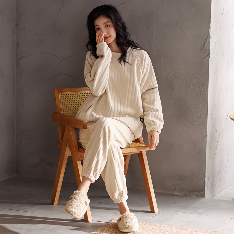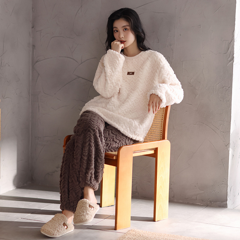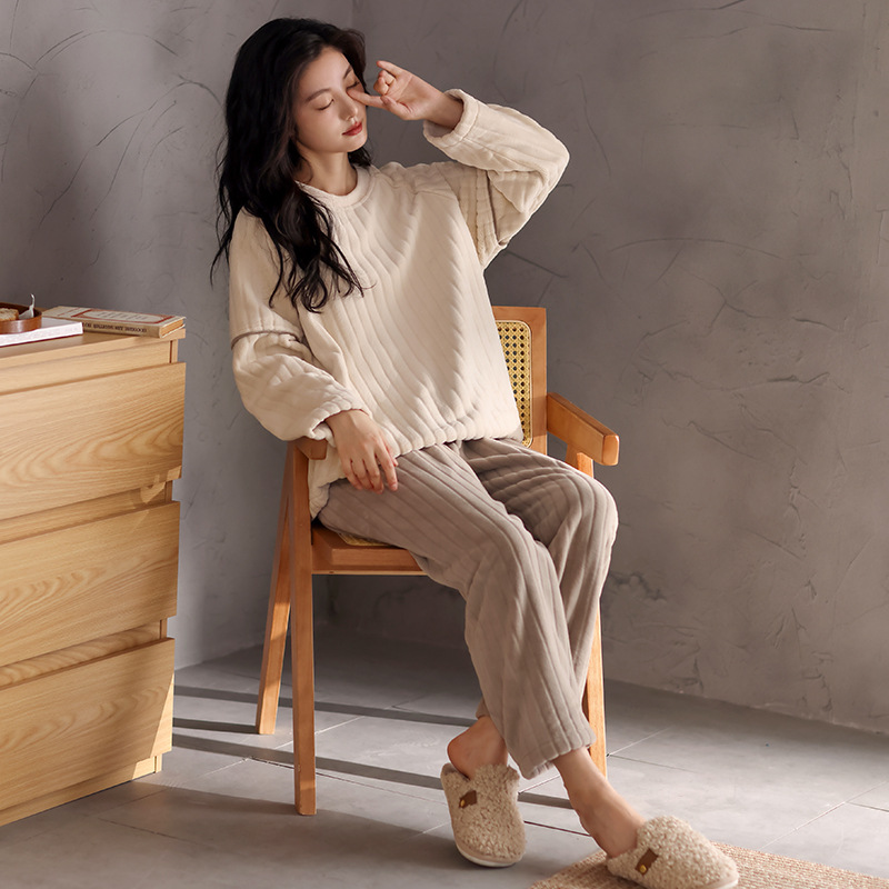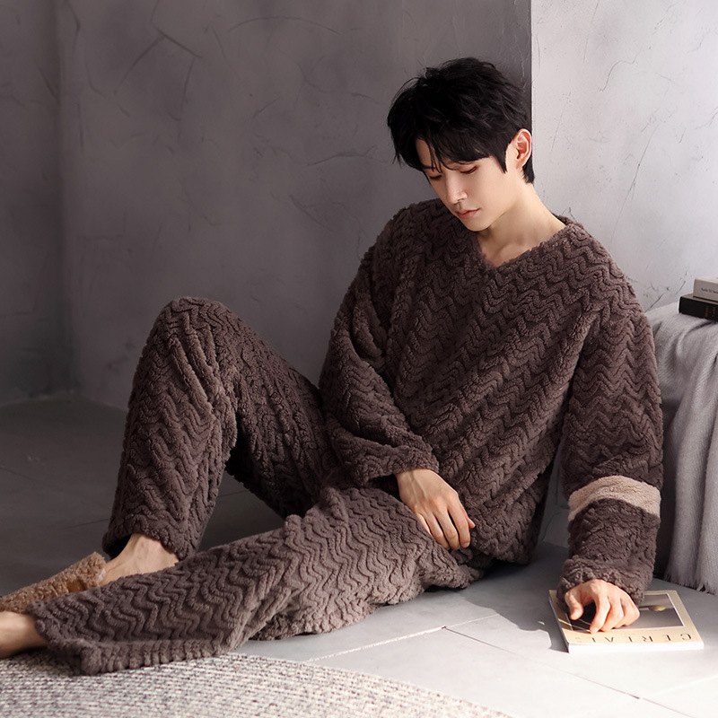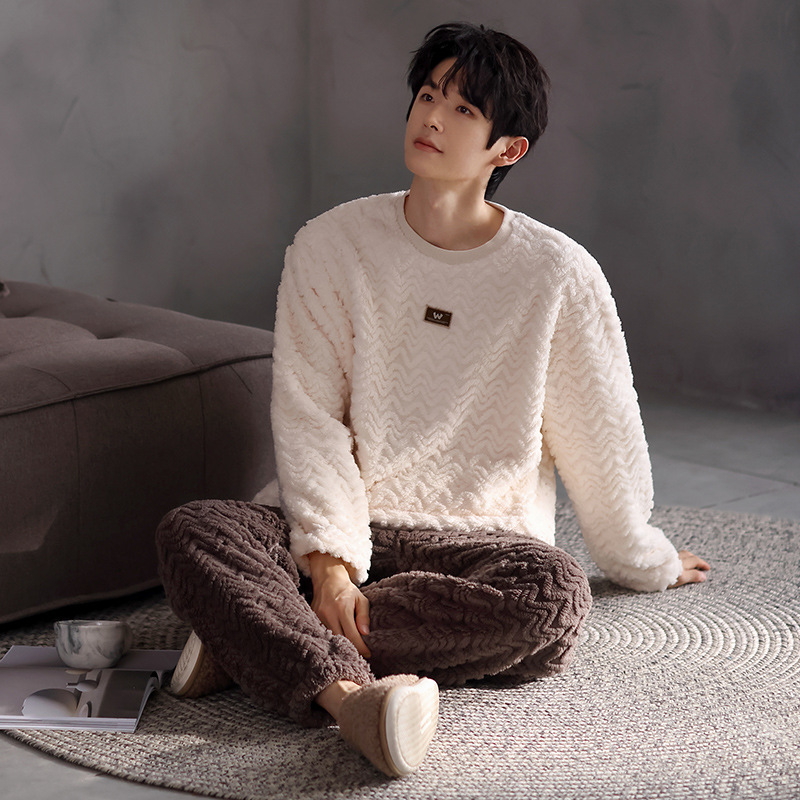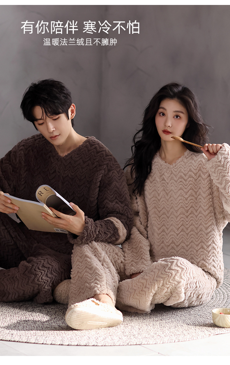 2026년 신상 가을 겨울 커플 잠옷 코랄 벨벳 플러스 벨벳 두꺼운 따뜻한 플란넬 커플 홈웨어 세트