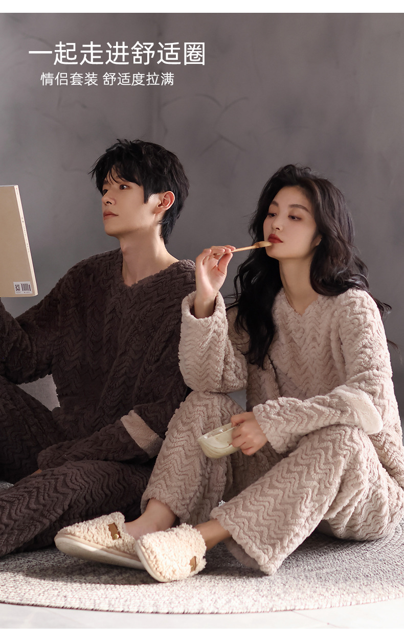 2026년 신상 가을 겨울 커플 잠옷 코랄 벨벳 플러스 벨벳 두꺼운 따뜻한 플란넬 커플 홈웨어 세트스토어 가기