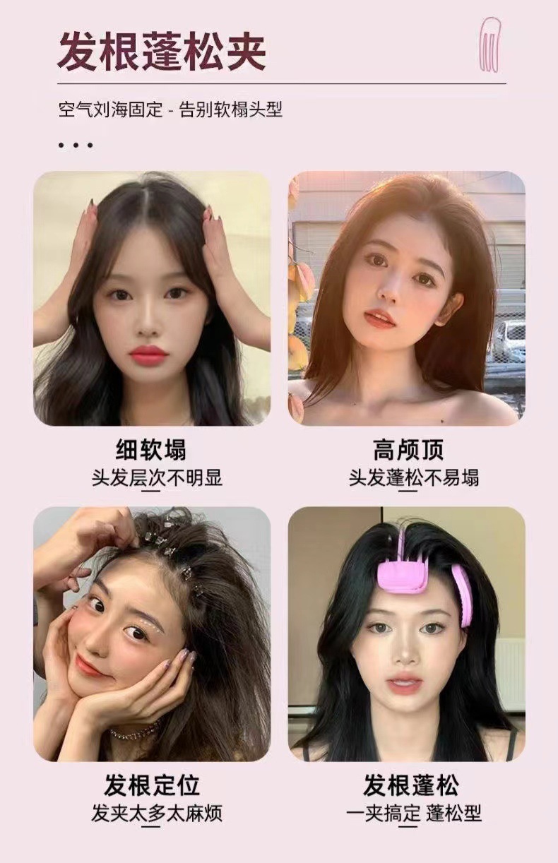바람 플라스틱 빗 패드 머리 뿌리 머리 클립 높은 두개골 상단 푹신한 유물 한국 이마 앞머리 솜털 클립 미용 도구스토어 가기