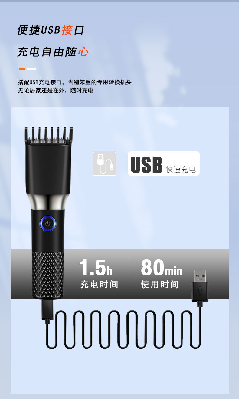 국경 간 새로운 USB 남성 조절 가능한 전기 헤어 클리퍼 가정용 전기 클리퍼 다기능 전기 클리퍼