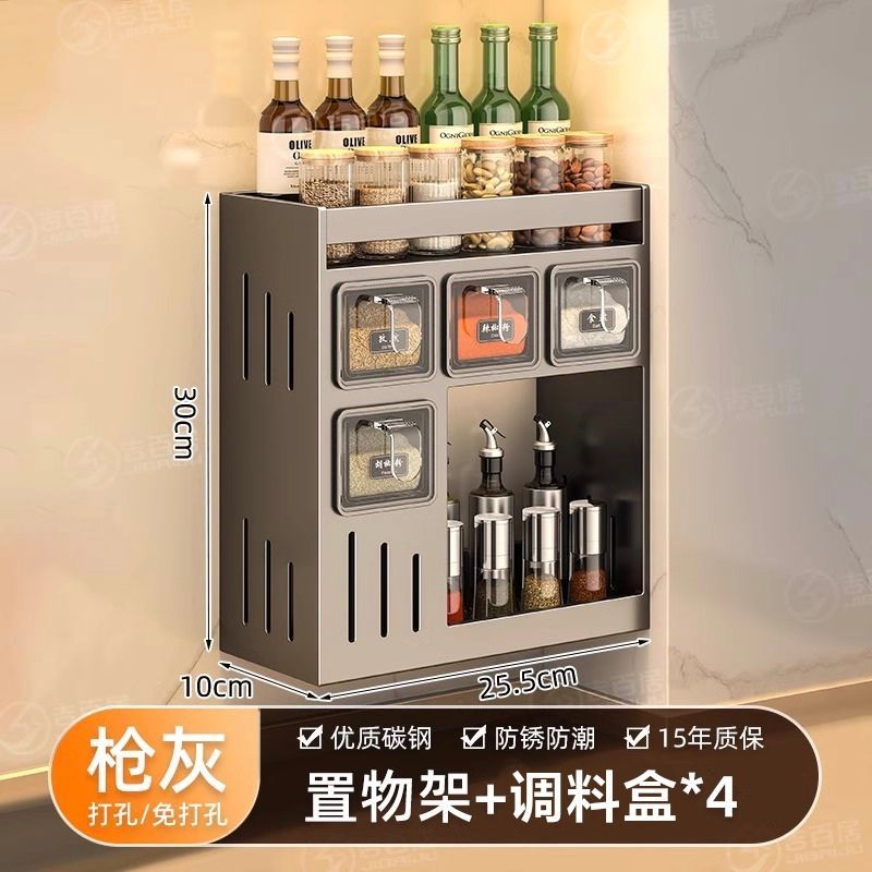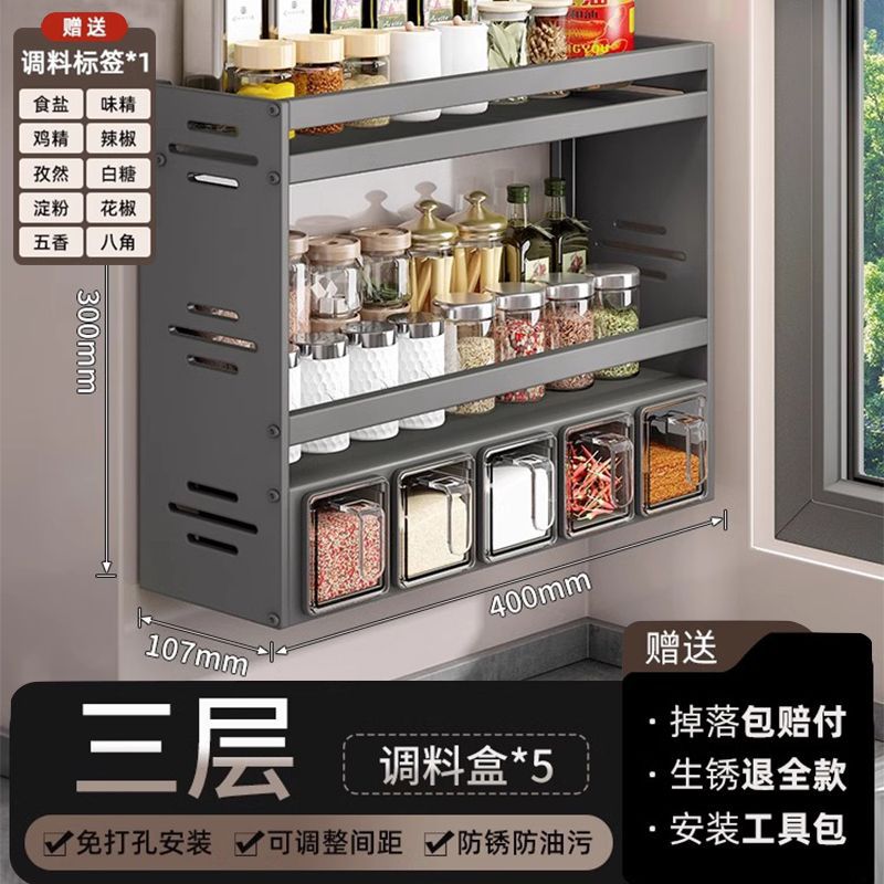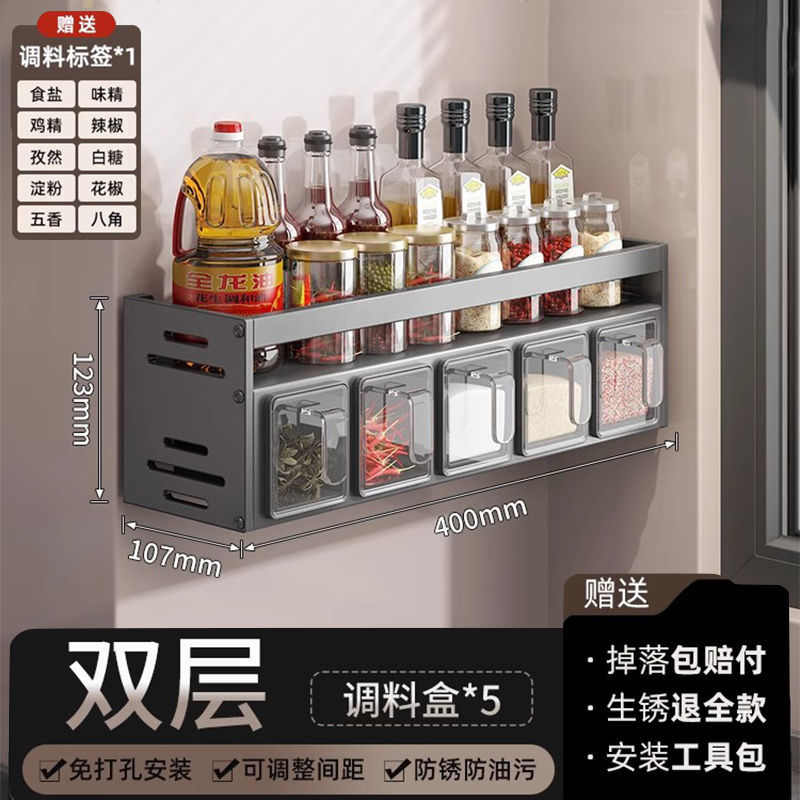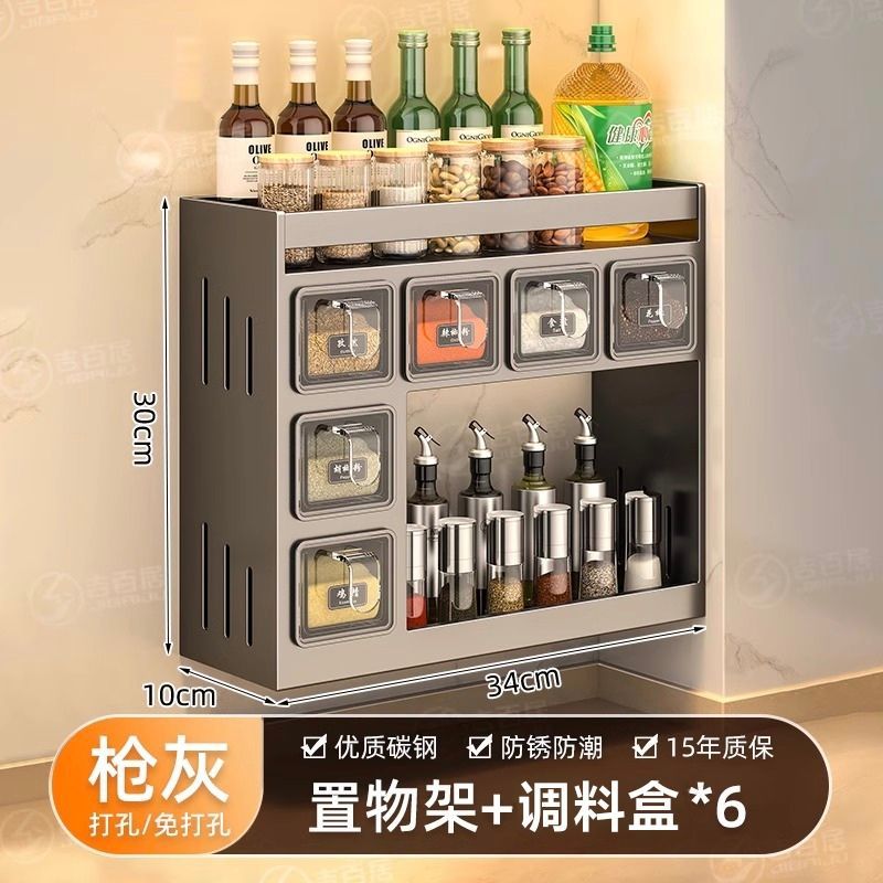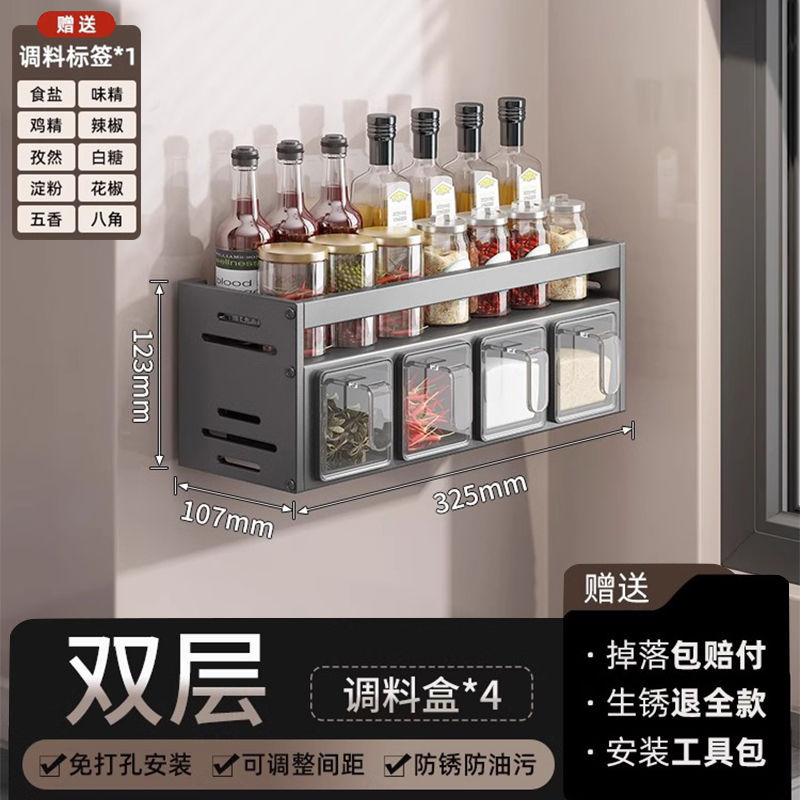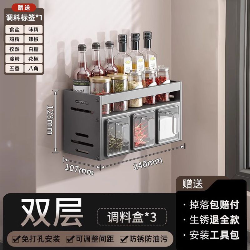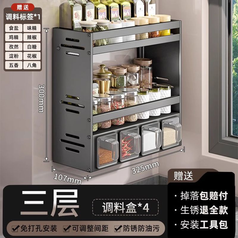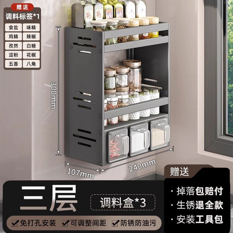 주방 조미료 상자 보관 랙 천공되지 않은 벽걸이 다기능 양념 항아리 병 조미료 조합 세트 보관 랙스토어 가기