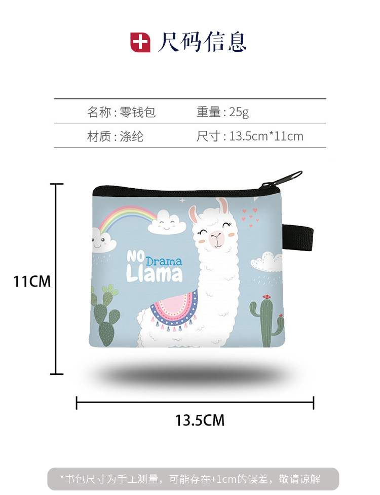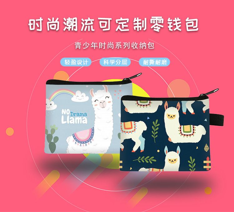 新款羊驼零钱包儿童可爱大容量高级感钥匙卡包学生迷你方形钱包批