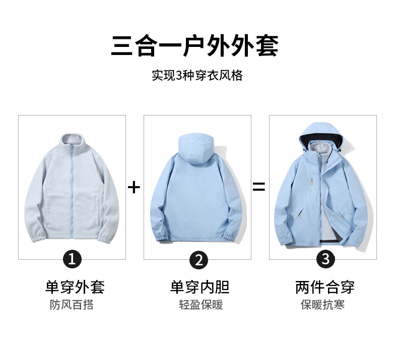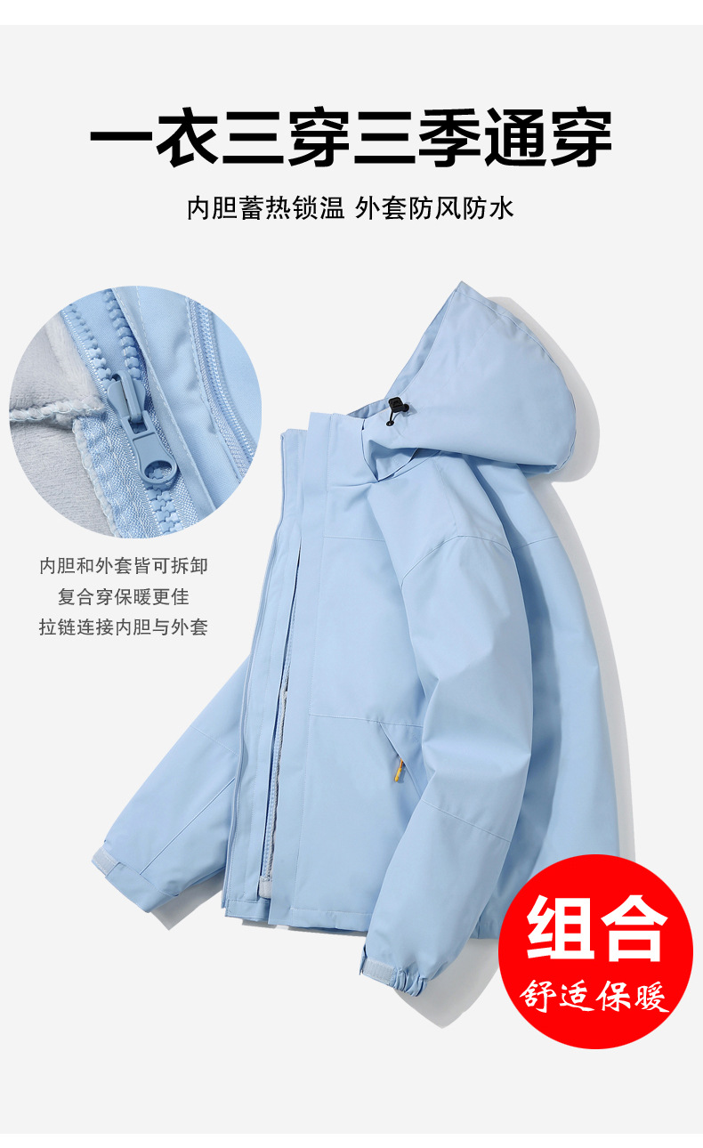 남성과 여성을위한 야외 커플의 3 대 1 분리 가능한 재킷 자수 로고 패션 브랜드 작업복스토어 가기