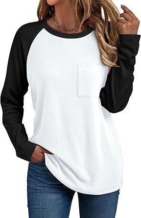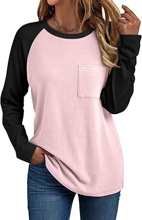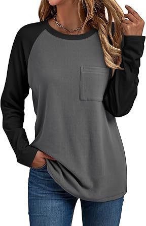 아마존 2026 유럽 및 미국 해외 무역 여성복 인기 상품 라운드넥 긴팔 스플라이싱 티셔츠 패션 포켓 다용도 셔츠스토어 가기