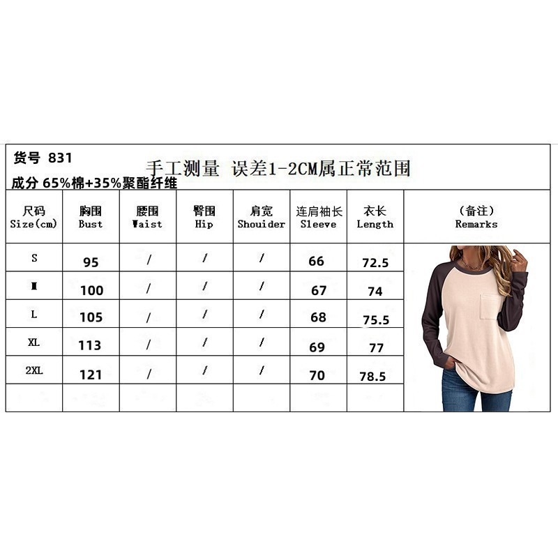 아마존 2026 유럽 및 미국 해외 무역 여성복 인기 상품 라운드넥 긴팔 스플라이싱 티셔츠 패션 포켓 다용도 셔츠