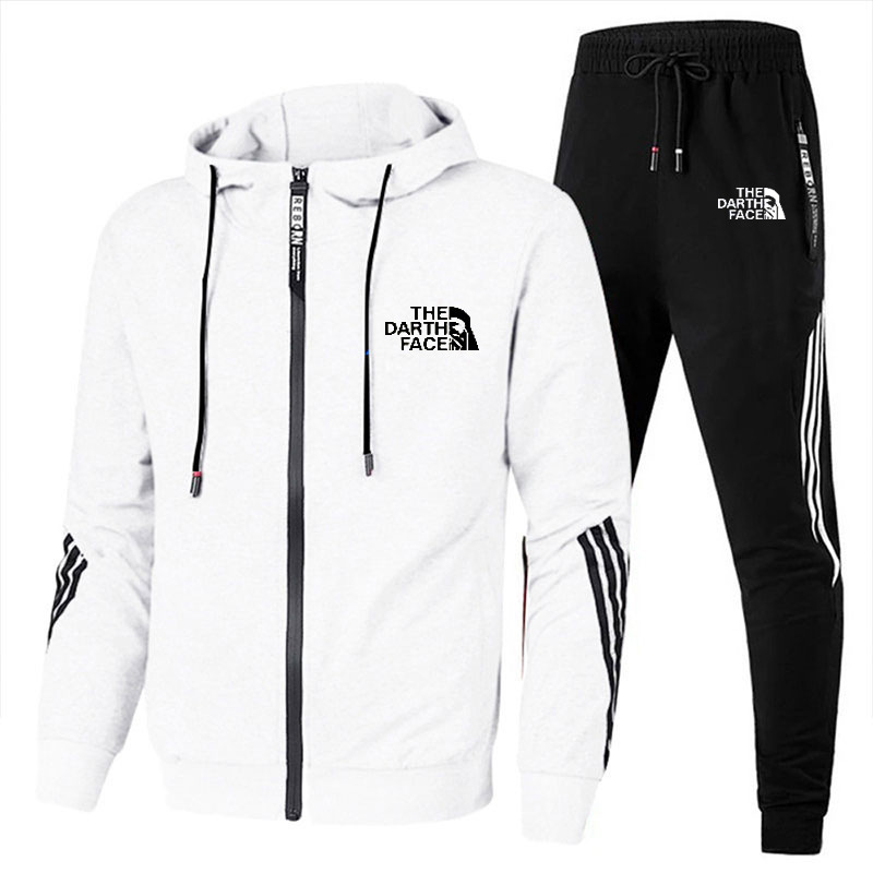 봄과 가을 유럽과 미국의 트렌디 브랜드 캐주얼 남성 운동복 스웨트 셔츠 정장 스트라이프 프린트 후드 지퍼 셔츠 투피스 세트
