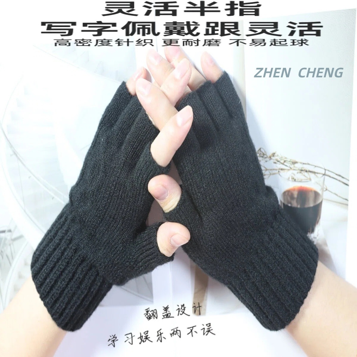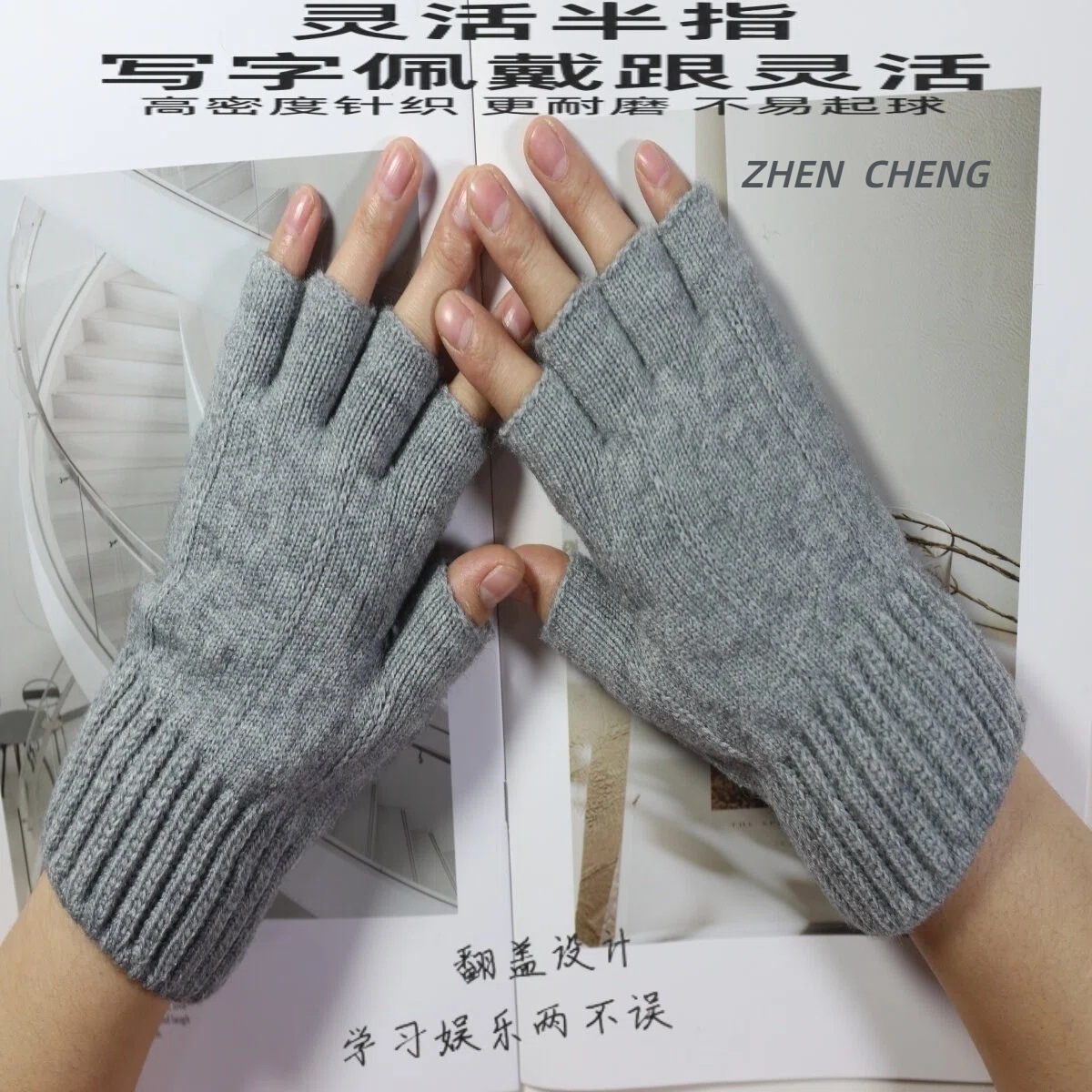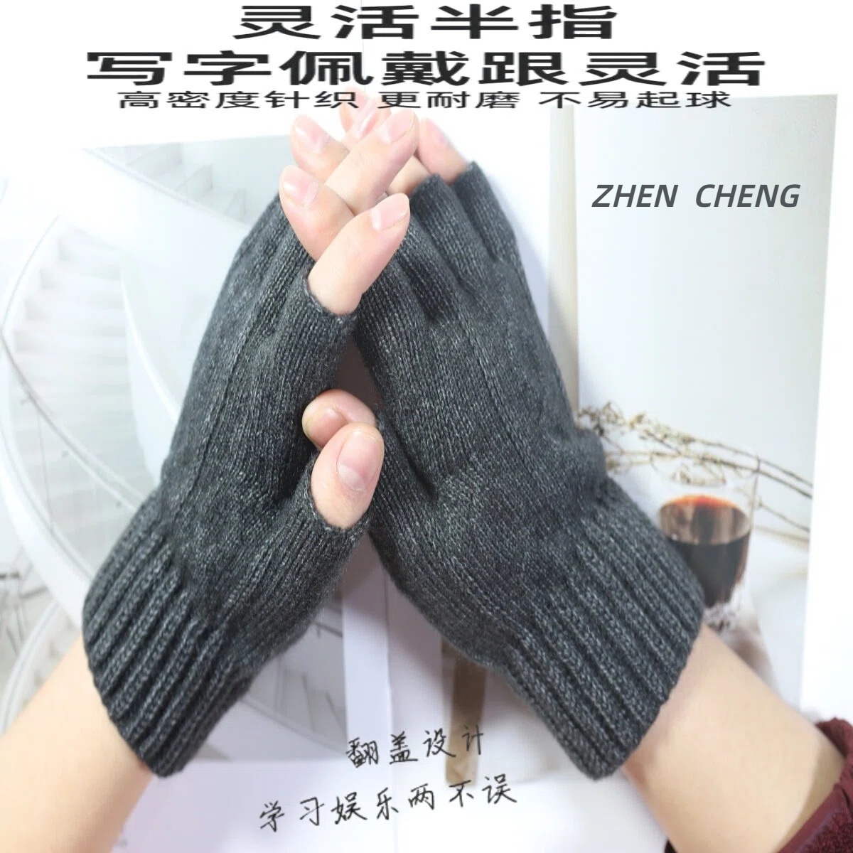 공장 직접 판매 남성용 반 손가락 따뜻한 장갑 겨울 패션 한국어 버전 두꺼운 핑거리스 따뜻한 장갑 학생 쓰기