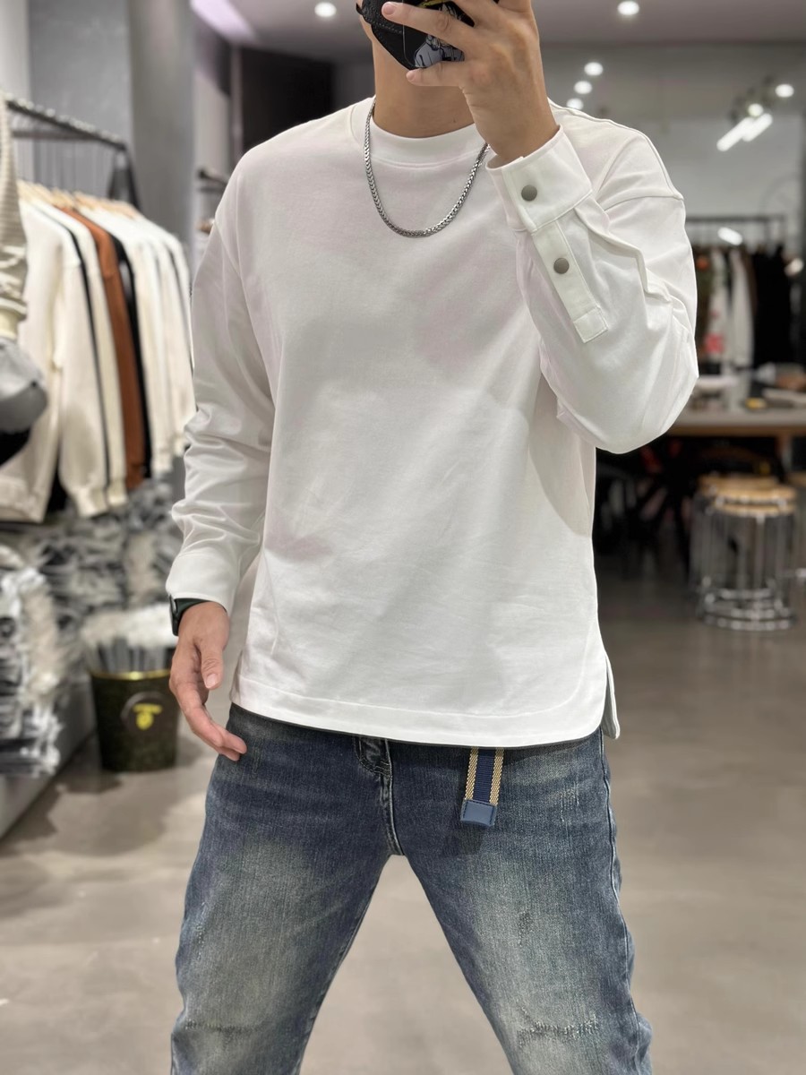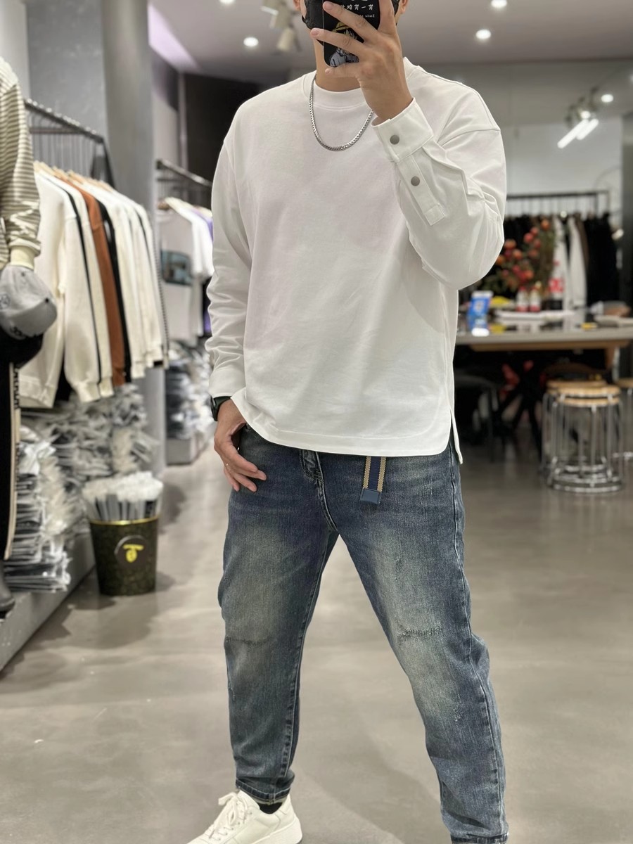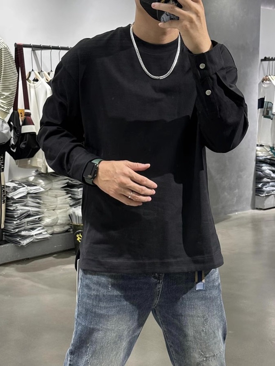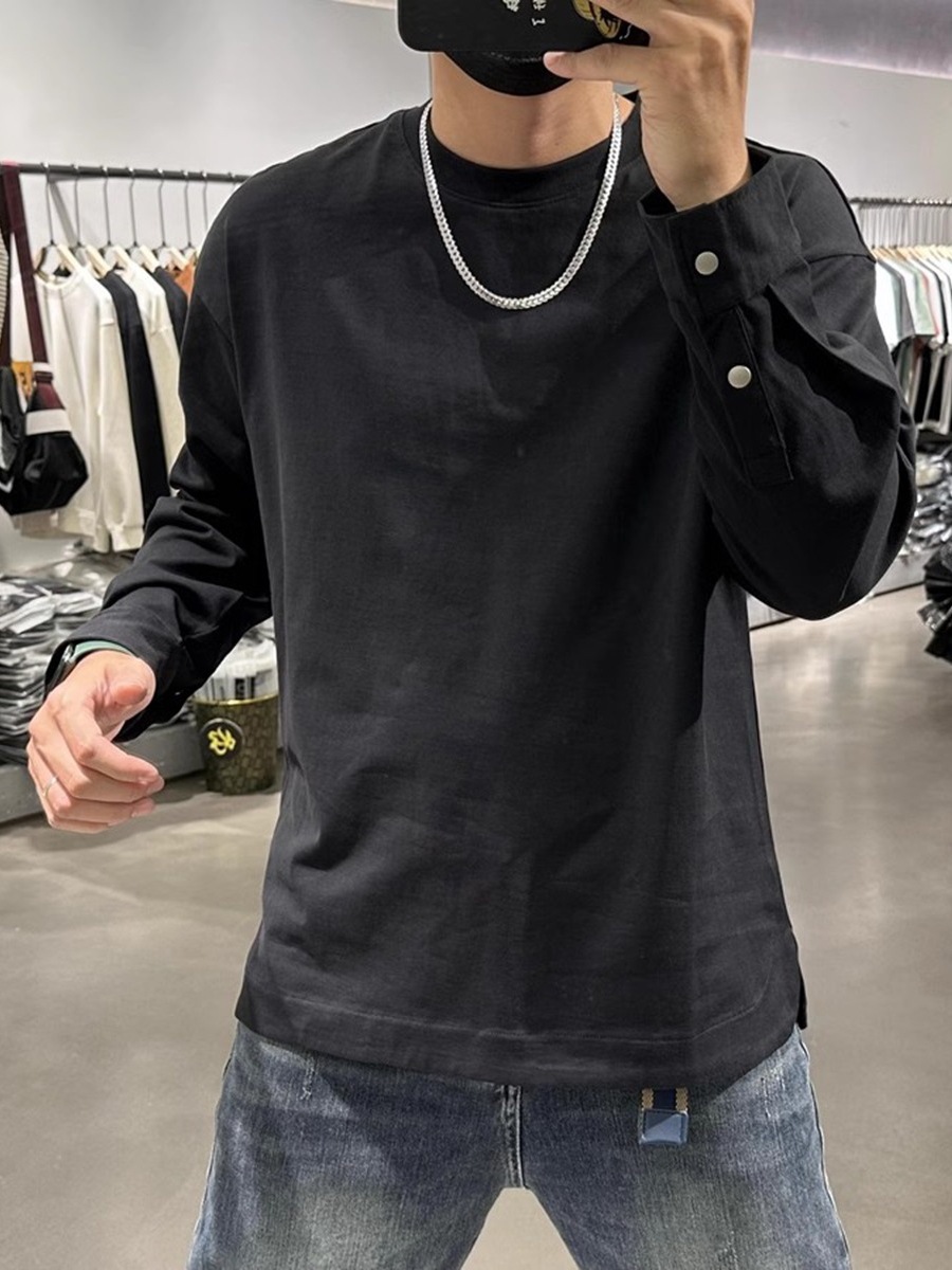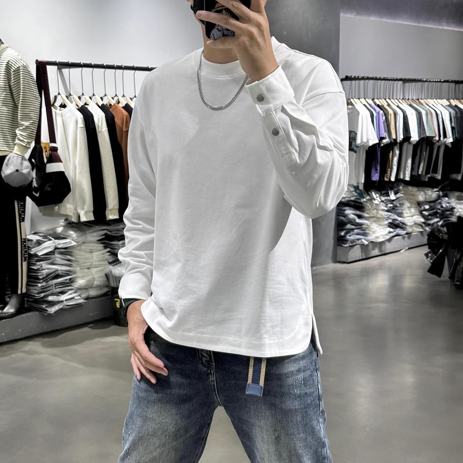 가을 솔리드 컬러 스웨터 남성용 슬림 핏 이너 벤트 긴팔 티셔츠 남성용 풀오버 버튼 커프 남성용 의류스토어 가기