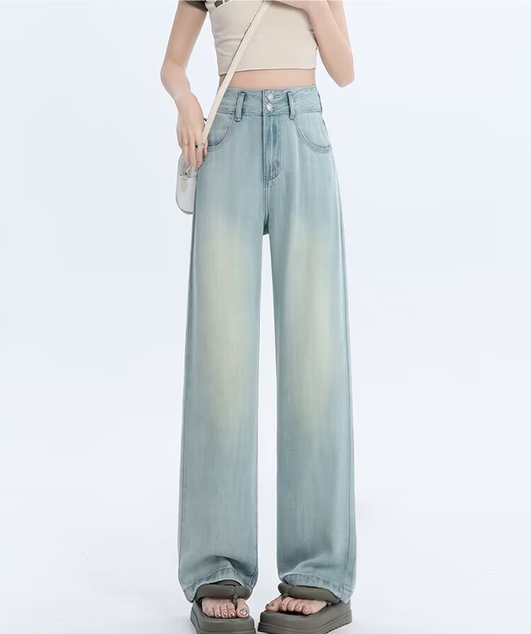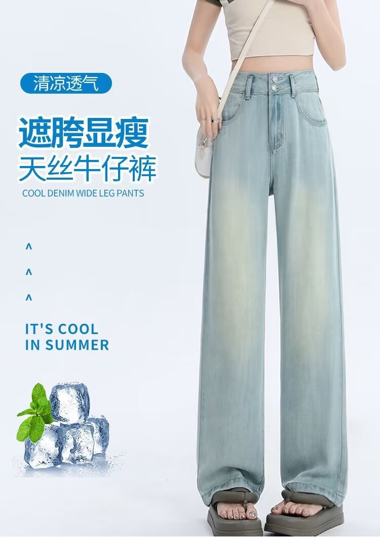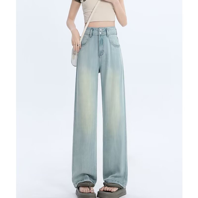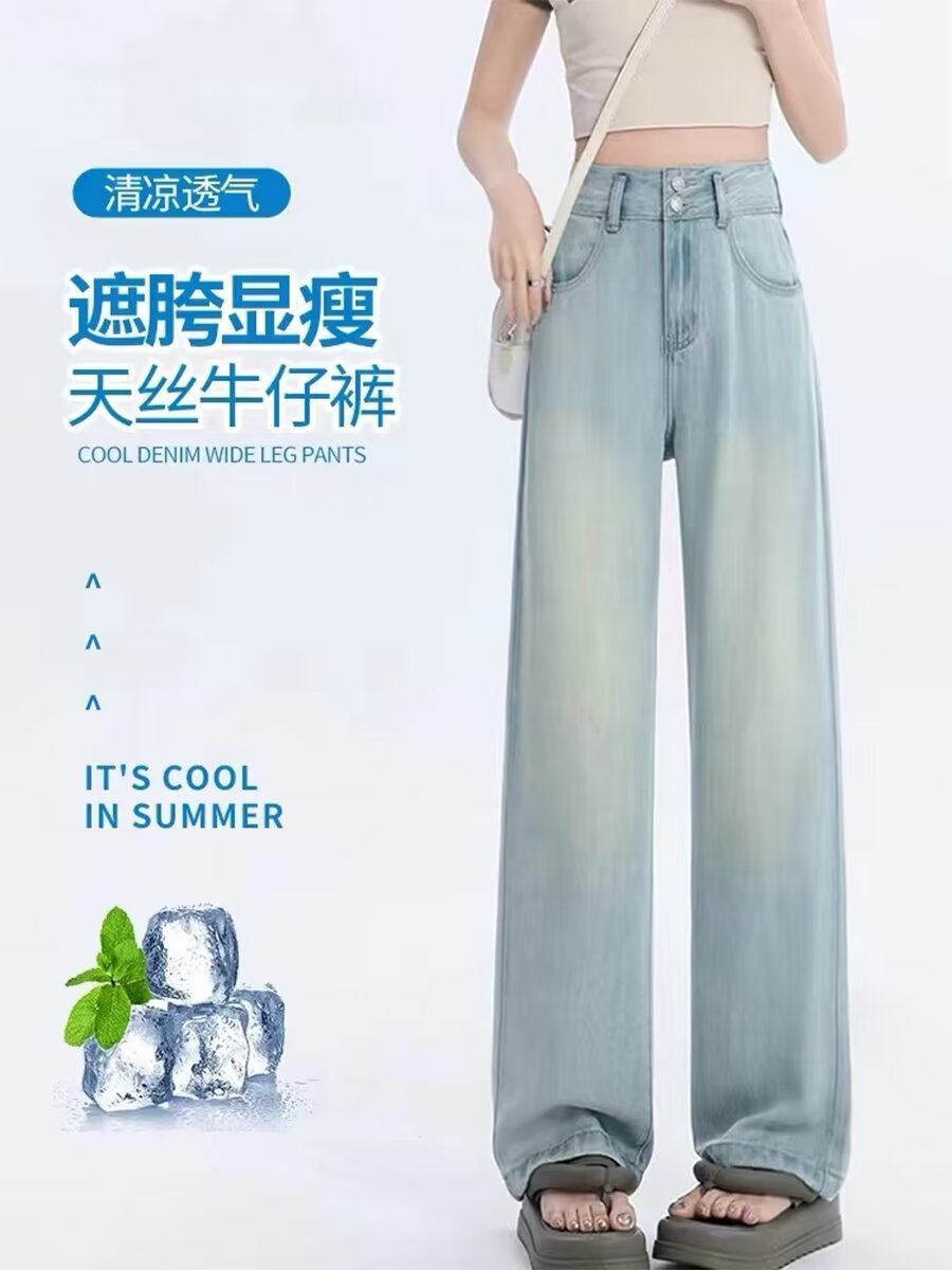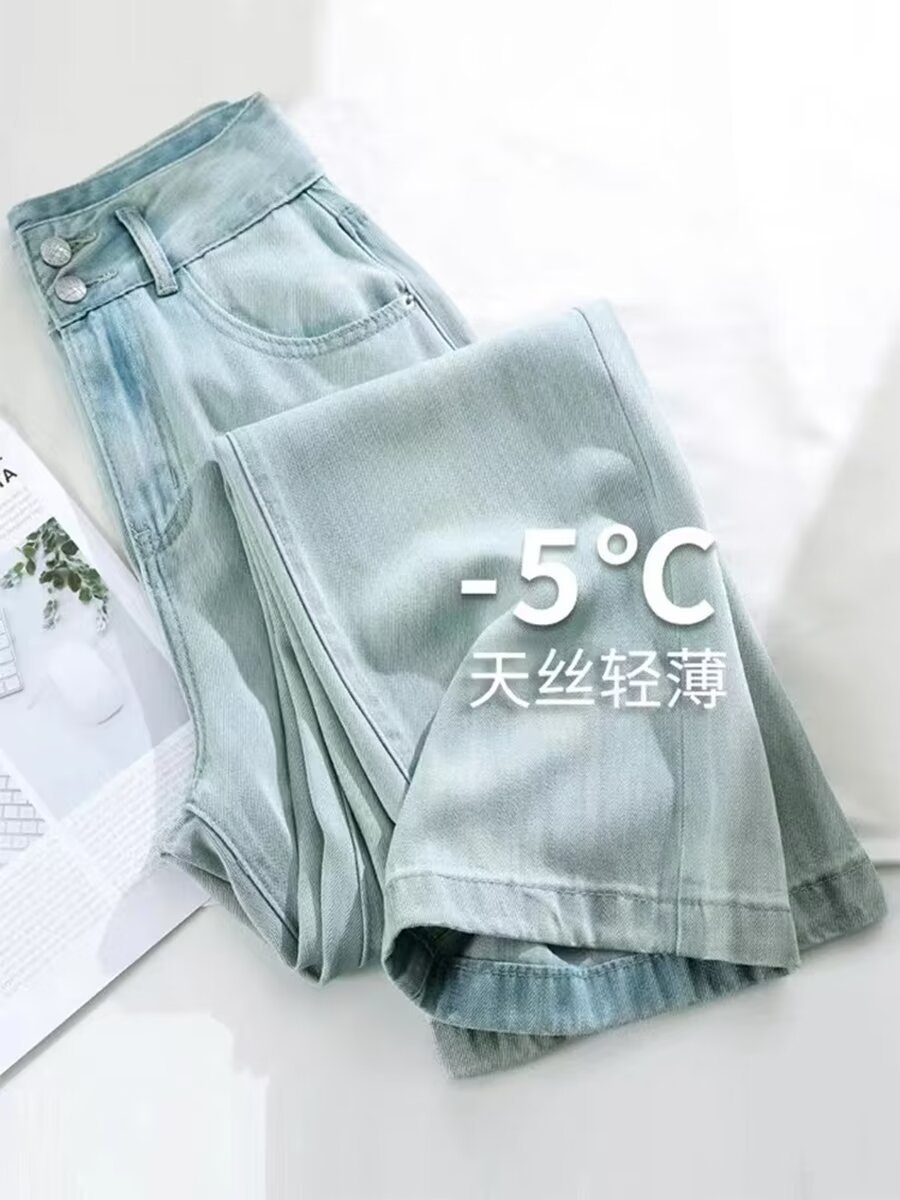 가벼운 텐셀 부드러운 청바지 여성용 가을 얇은 배 모양의 바디 플러스 사이즈 슬림 핏 느슨한 아이스 실크 딥 와이드 레그 바지