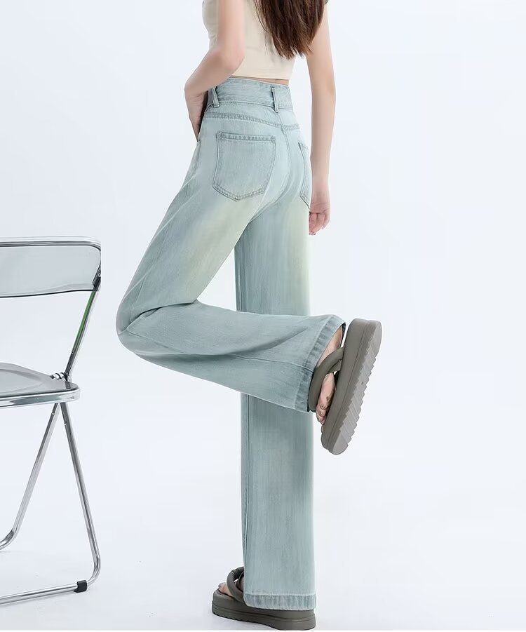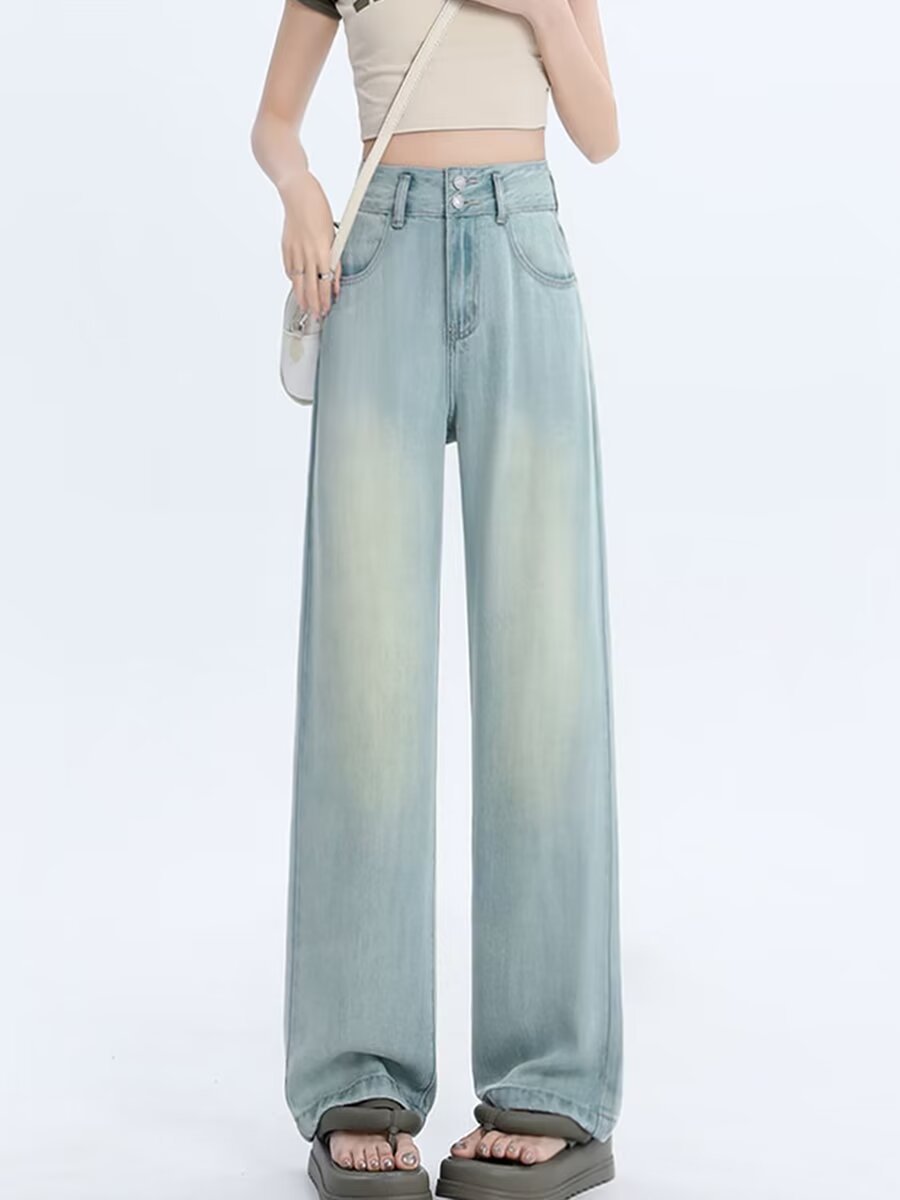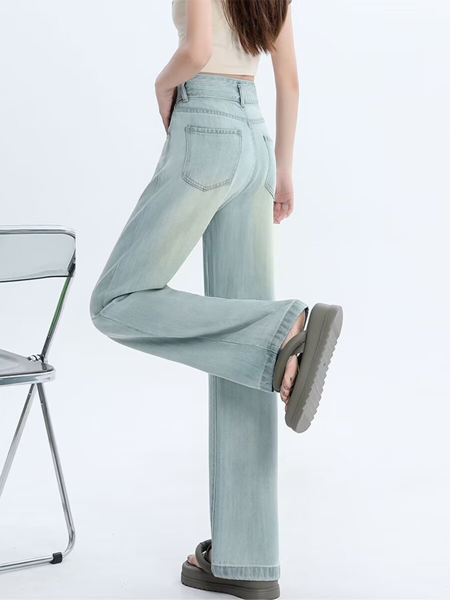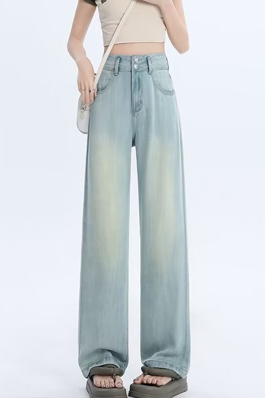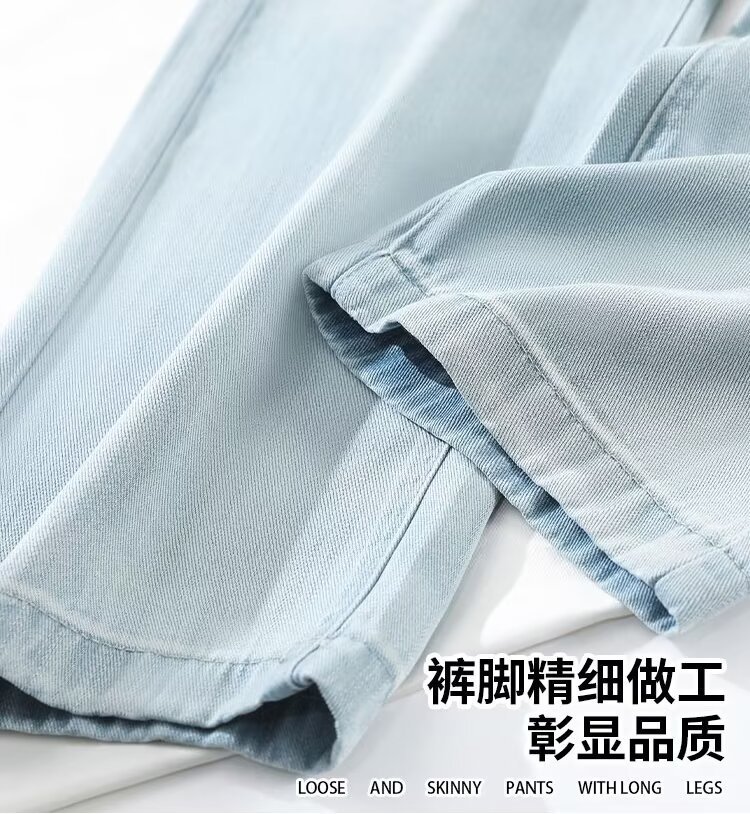 가벼운 텐셀 부드러운 청바지 여성용 가을 얇은 배 모양의 바디 플러스 사이즈 슬림 핏 느슨한 아이스 실크 딥 와이드 레그 바지
