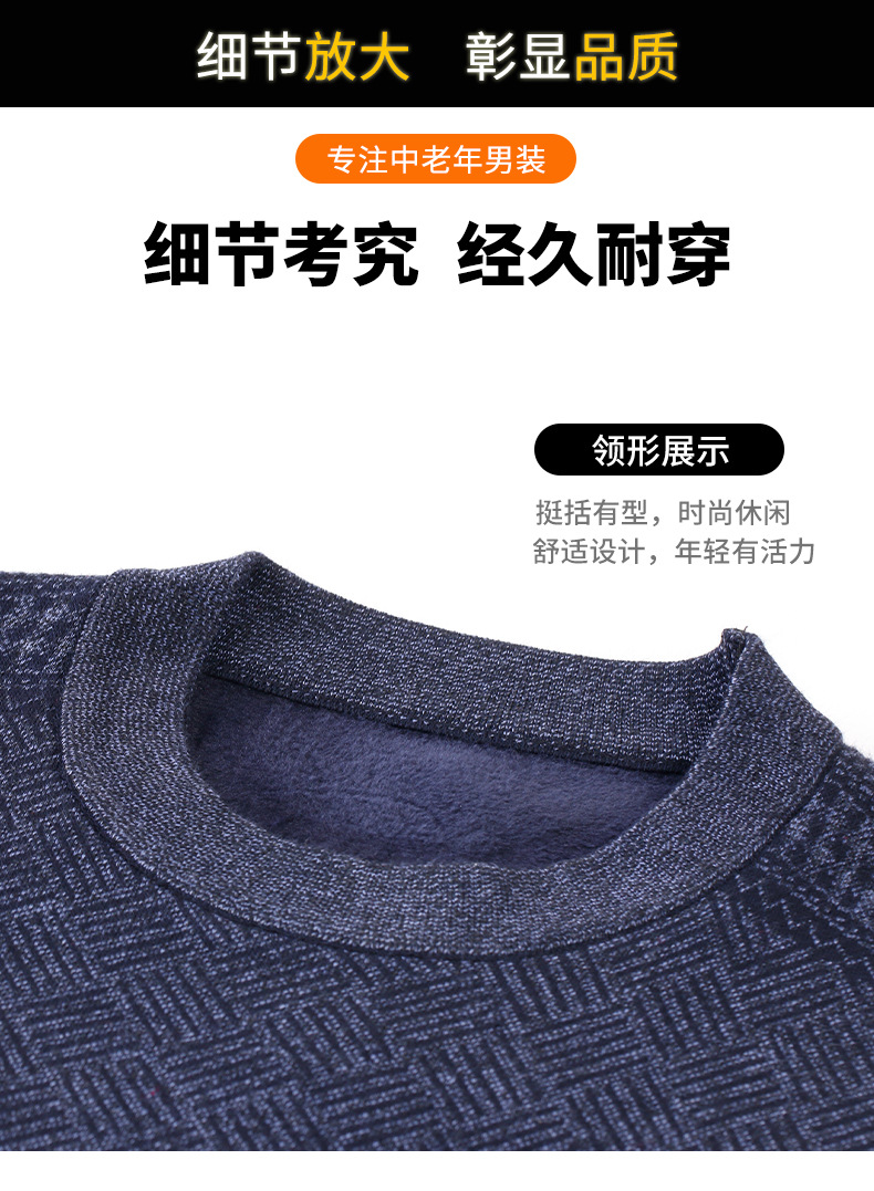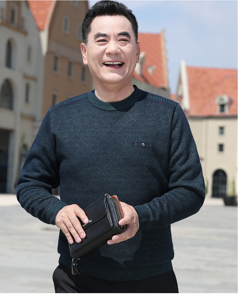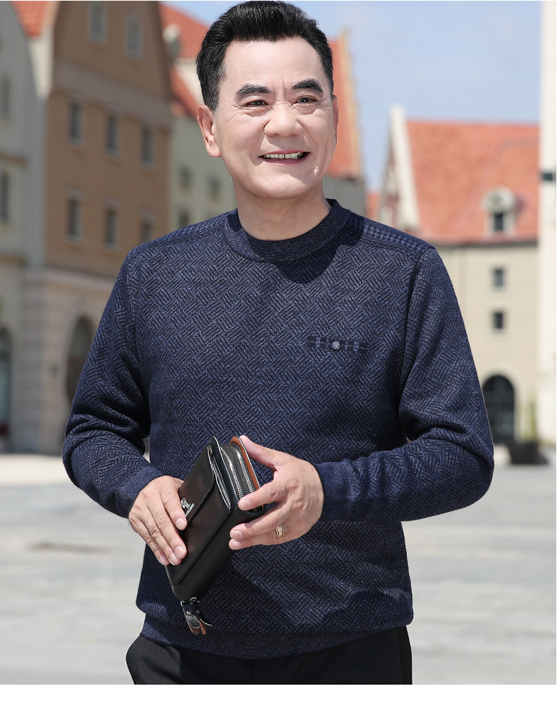 아빠의 겨울 스웨터 기모 두꺼운 중년 노인 할아버지의 겨울 따뜻한 니트 크루 넥 풀오버 베이스 셔츠스토어 가기