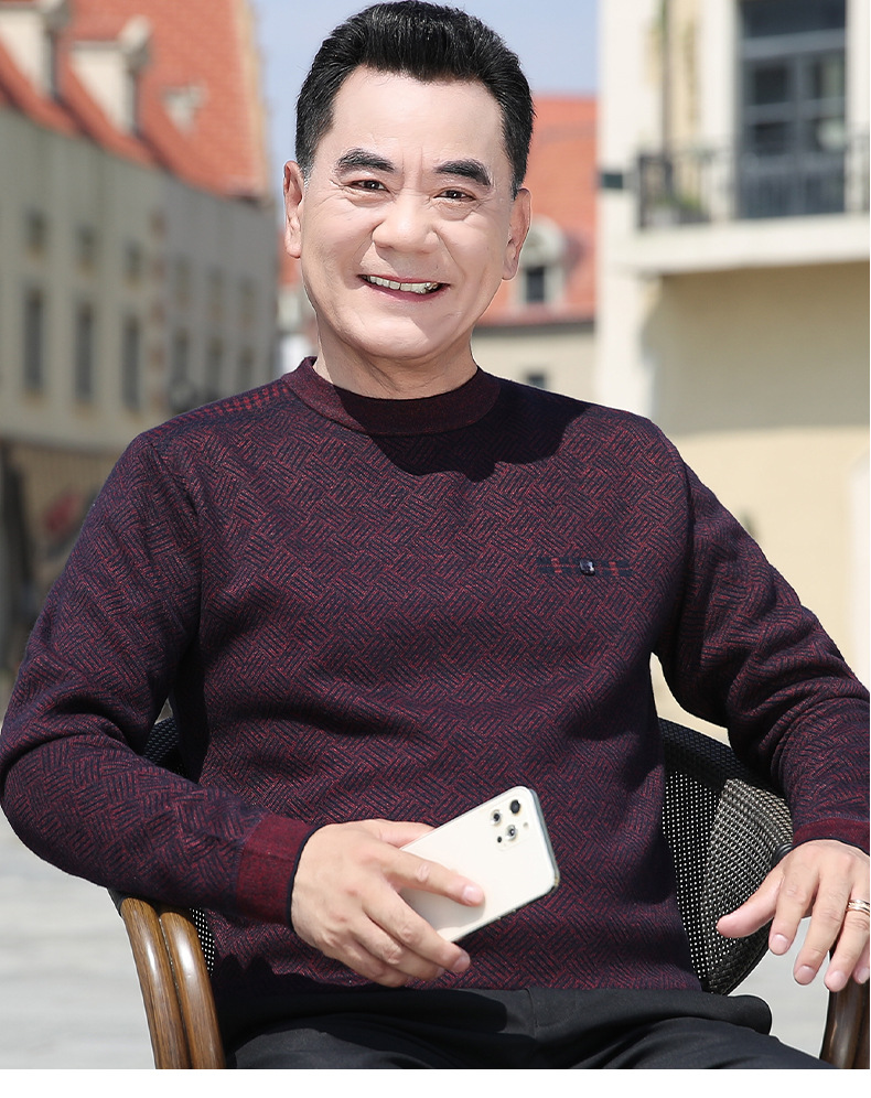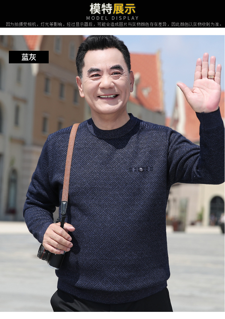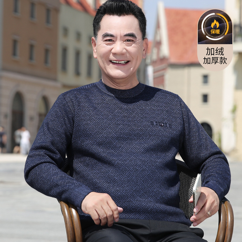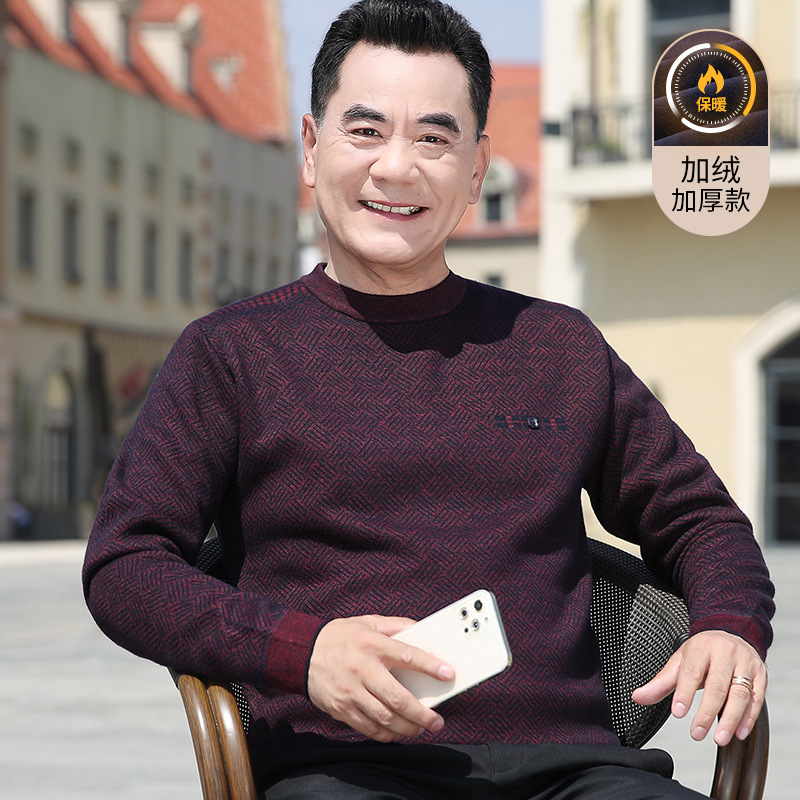 아빠의 겨울 스웨터 기모 두꺼운 중년 노인 할아버지의 겨울 따뜻한 니트 크루 넥 풀오버 베이스 셔츠