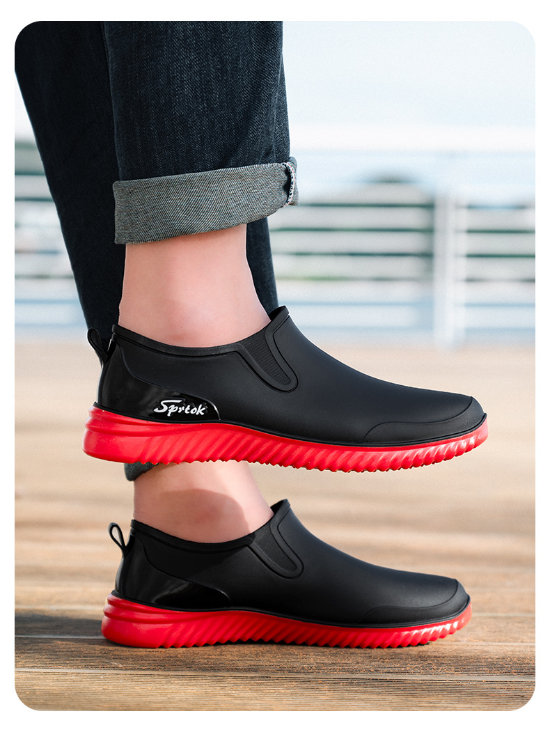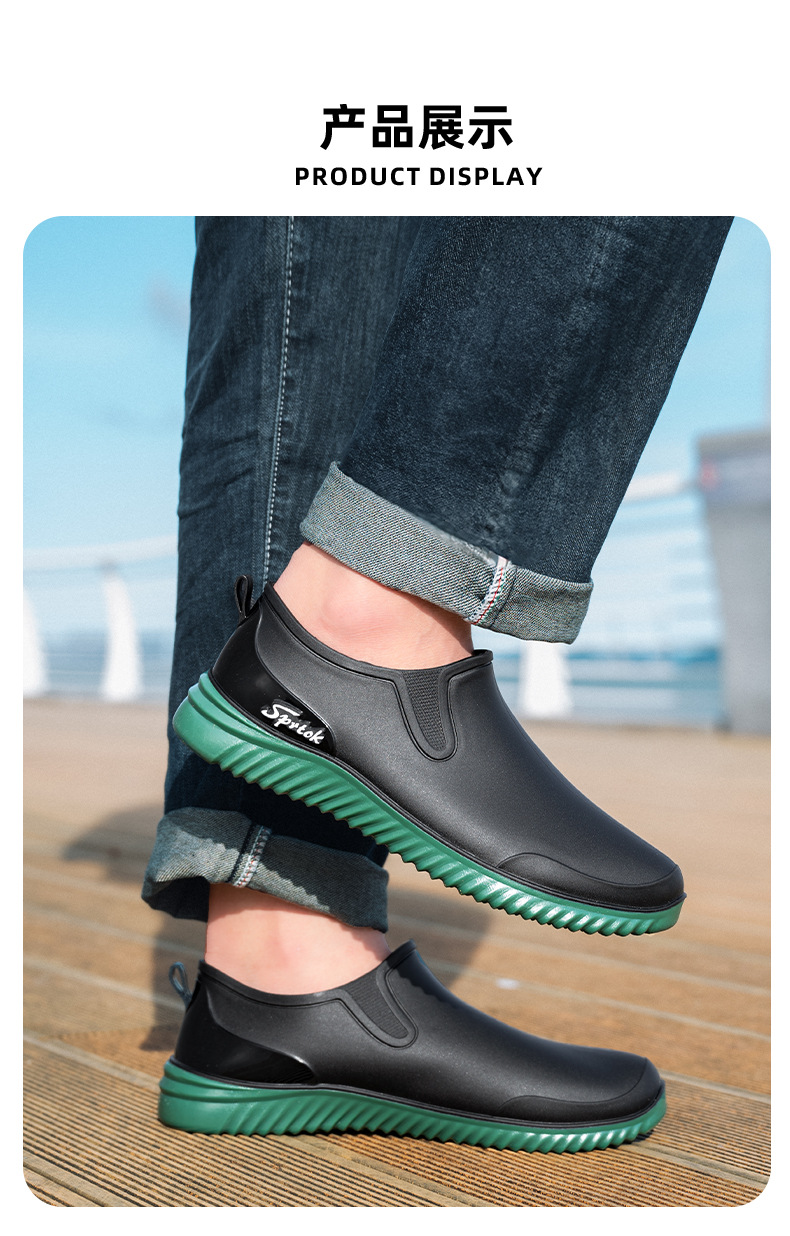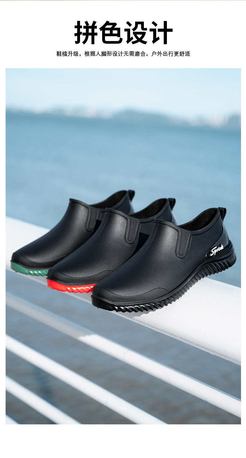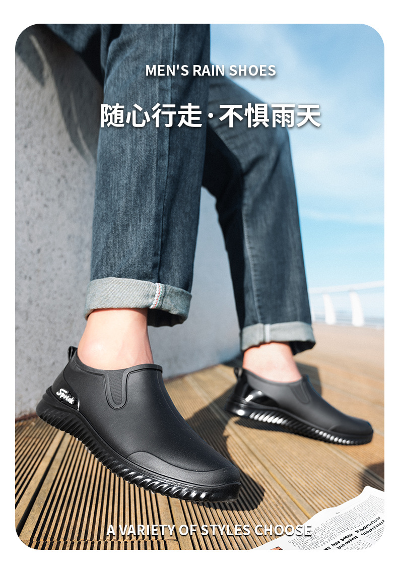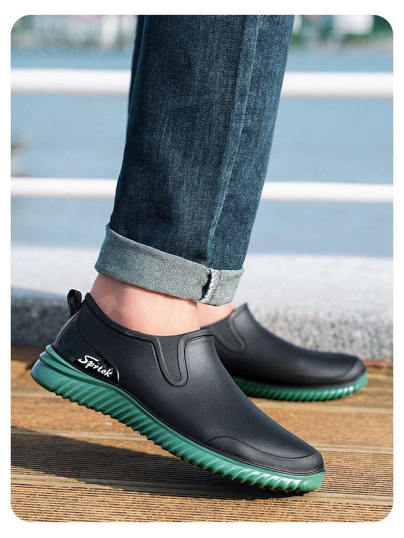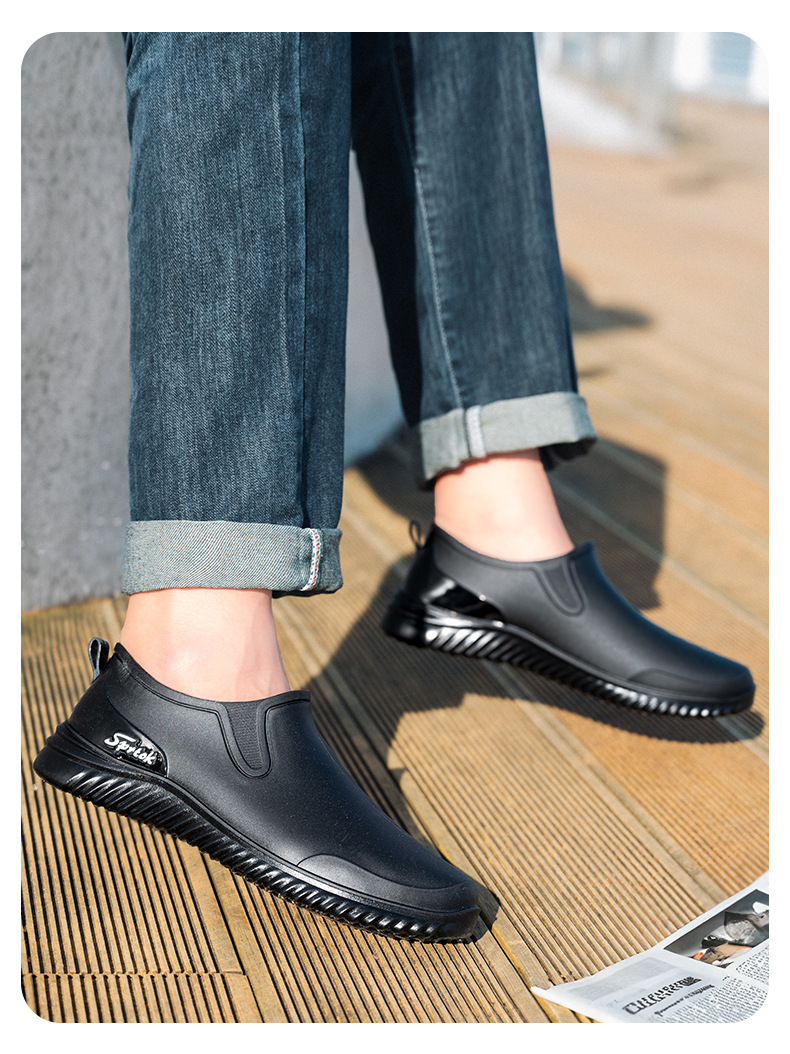 패션 로우 탑 비 신발 남성용 방수 미끄럼 방지 두꺼운 바닥 내마모성 얕은 입 신발 세차 주방 요리사 작업 고무 신발