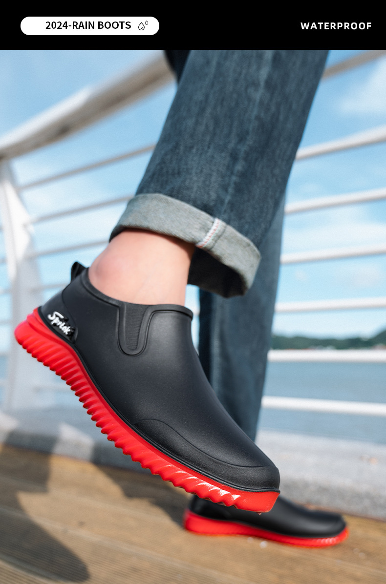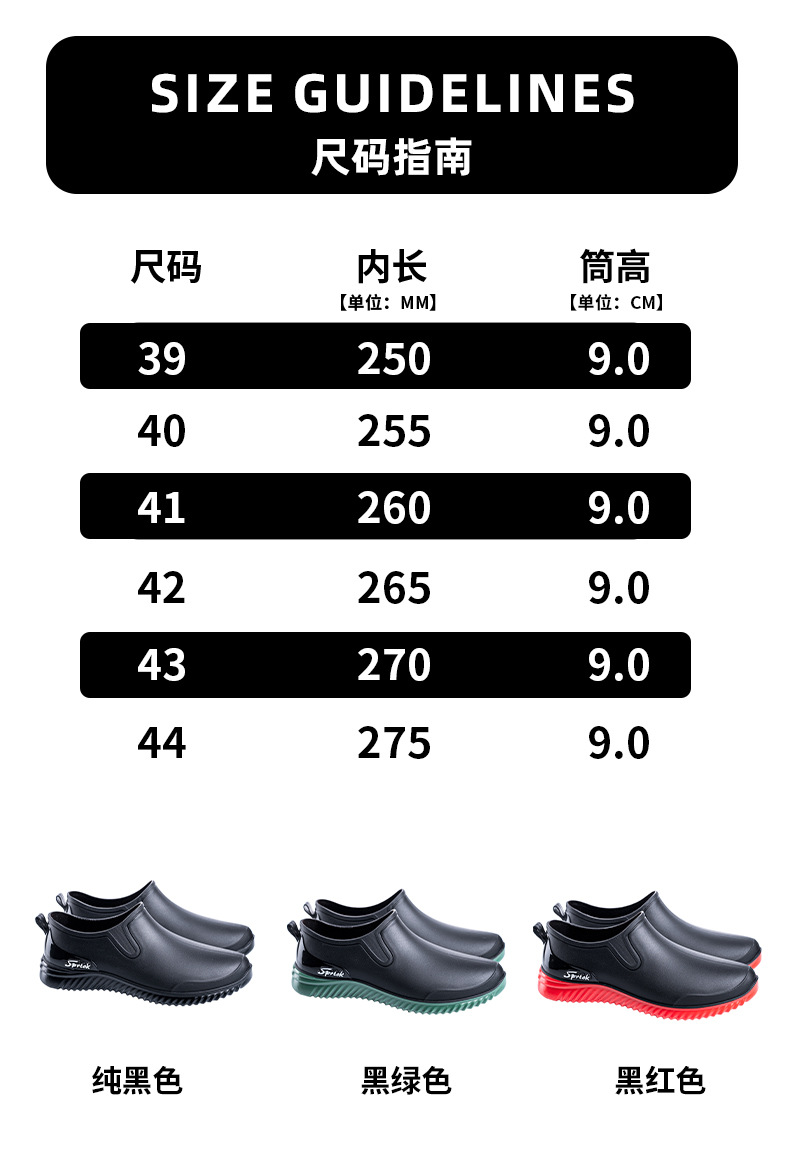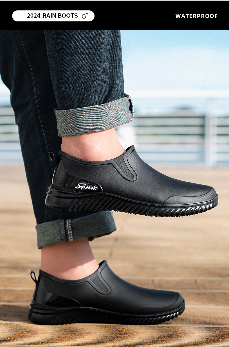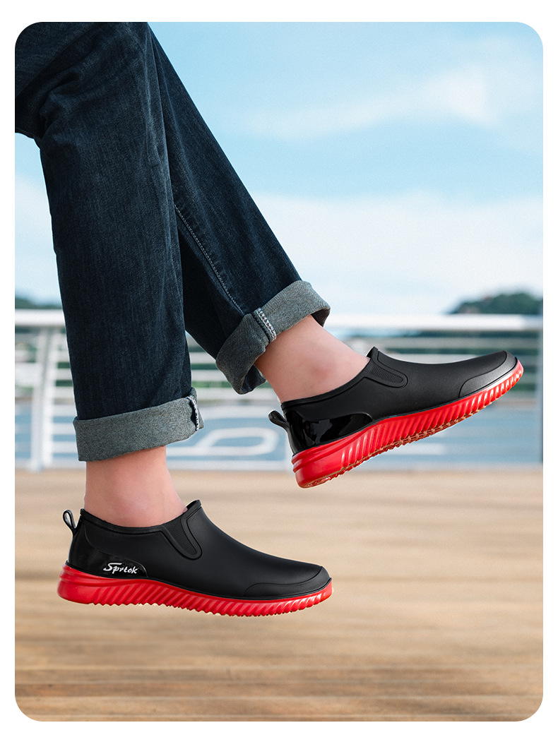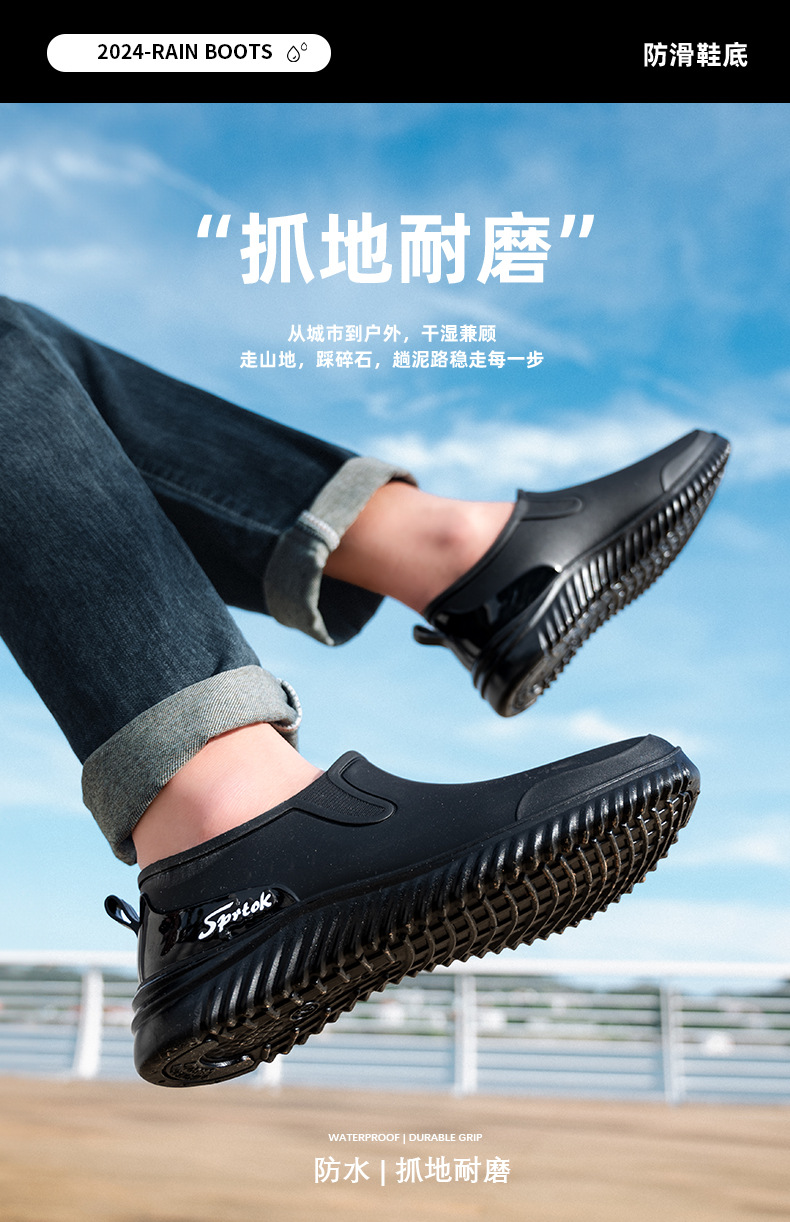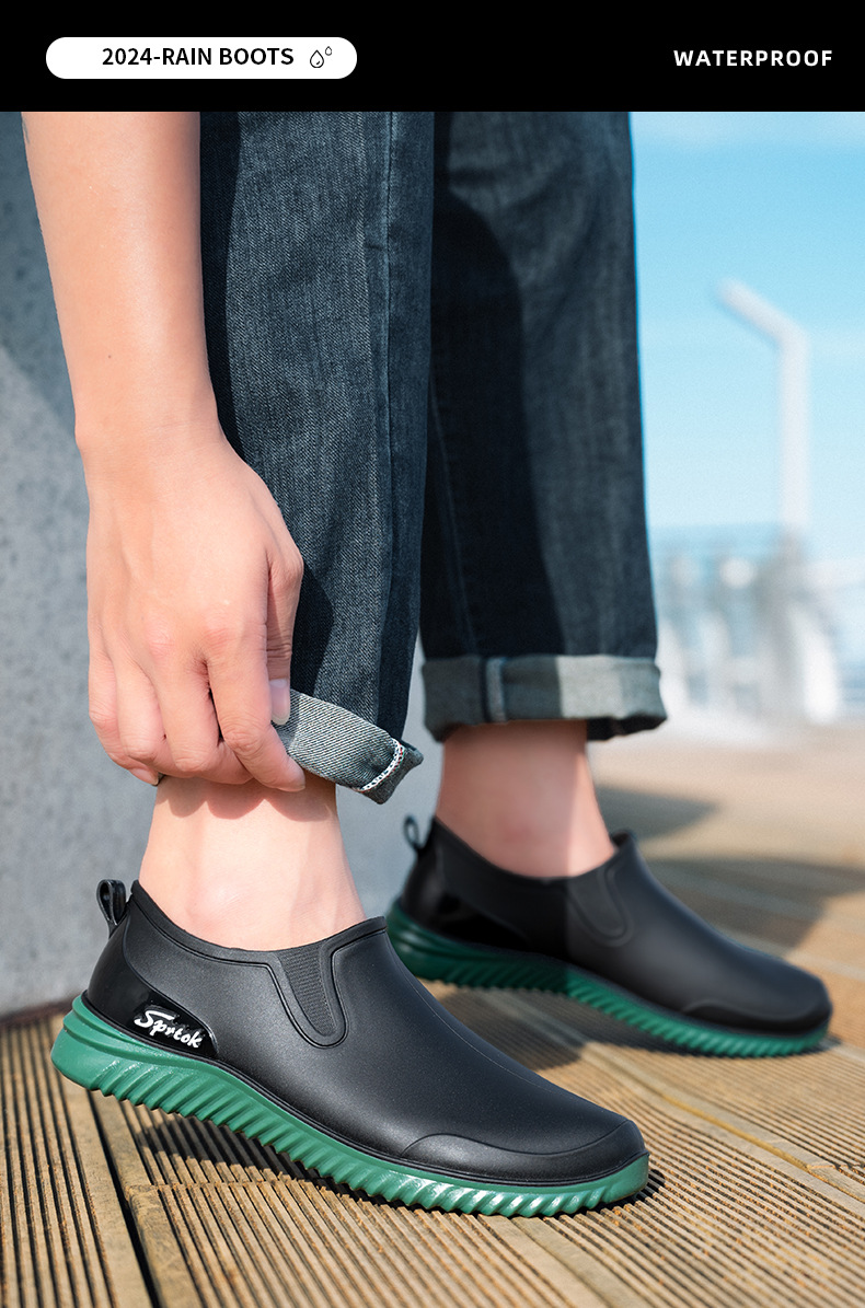 패션 로우 탑 비 신발 남성용 방수 미끄럼 방지 두꺼운 바닥 내마모성 얕은 입 신발 세차 주방 요리사 작업 고무 신발