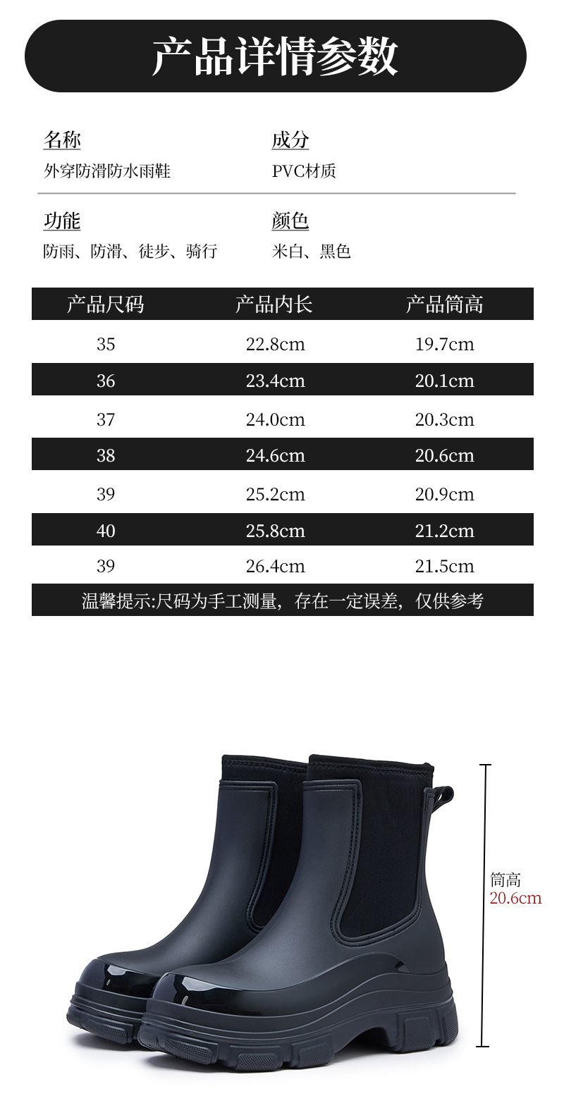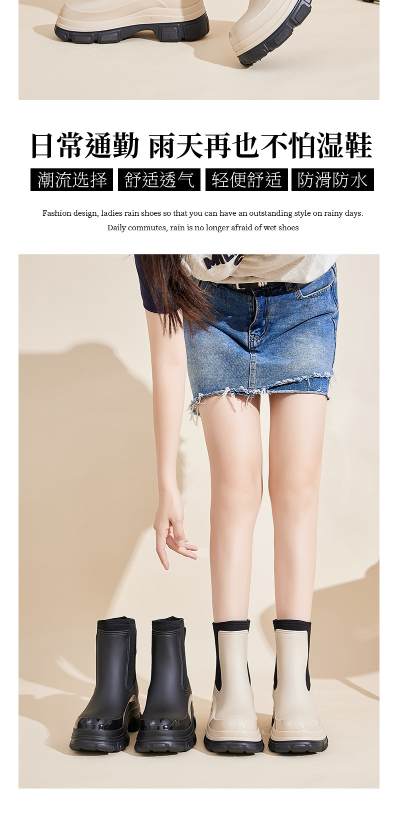 여성용 크로스보더 패션 레인부츠 2025 신상 레인부츠, 키높이 방수화, 첼시 숏부츠, 아웃도어 미끄럼 방지 레인부츠