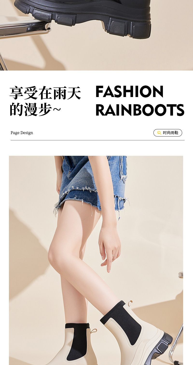 여성용 크로스보더 패션 레인부츠 2025 신상 레인부츠, 키높이 방수화, 첼시 숏부츠, 아웃도어 미끄럼 방지 레인부츠스토어 가기