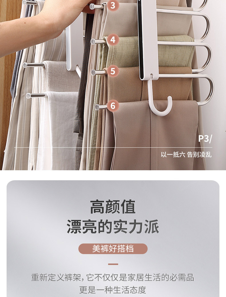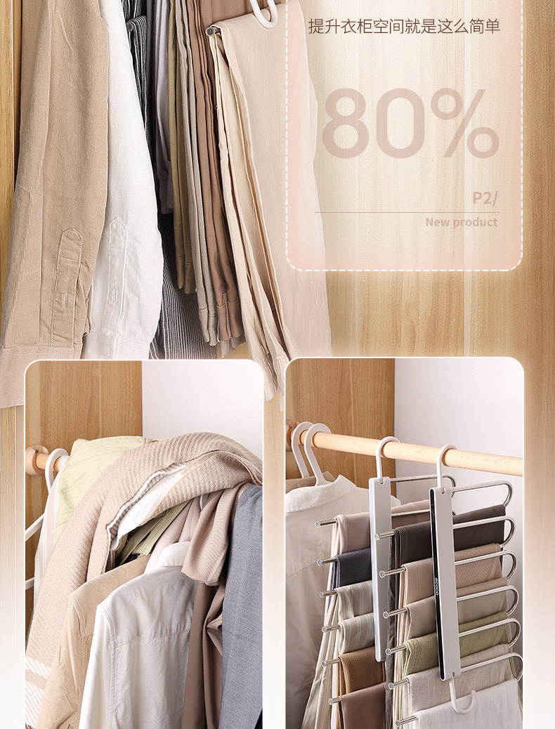 이탈리아 접이식 바지 랙 텔레스코픽 멀티 레이어 바지 걸이 가정용 매직 바지 클립 옷장 보관 바지 옷걸이