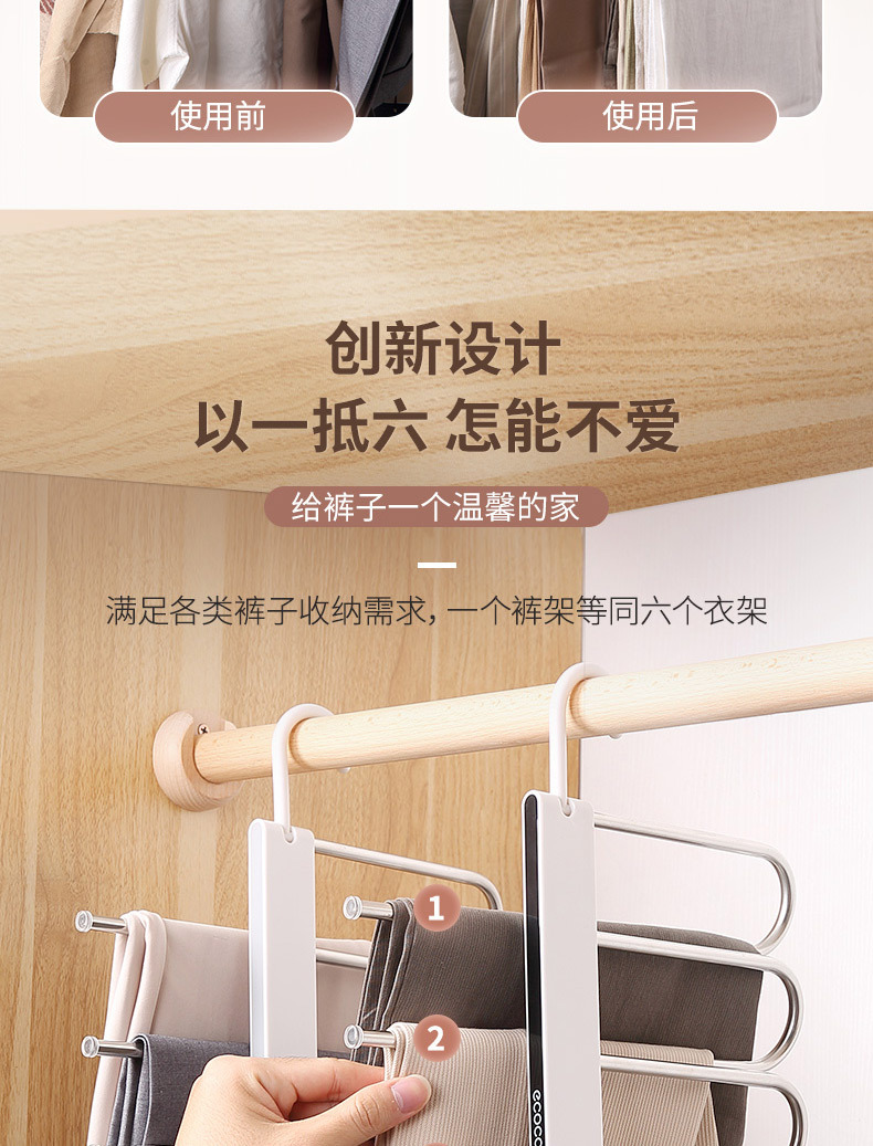 이탈리아 접이식 바지 랙 텔레스코픽 멀티 레이어 바지 걸이 가정용 매직 바지 클립 옷장 보관 바지 옷걸이스토어 가기