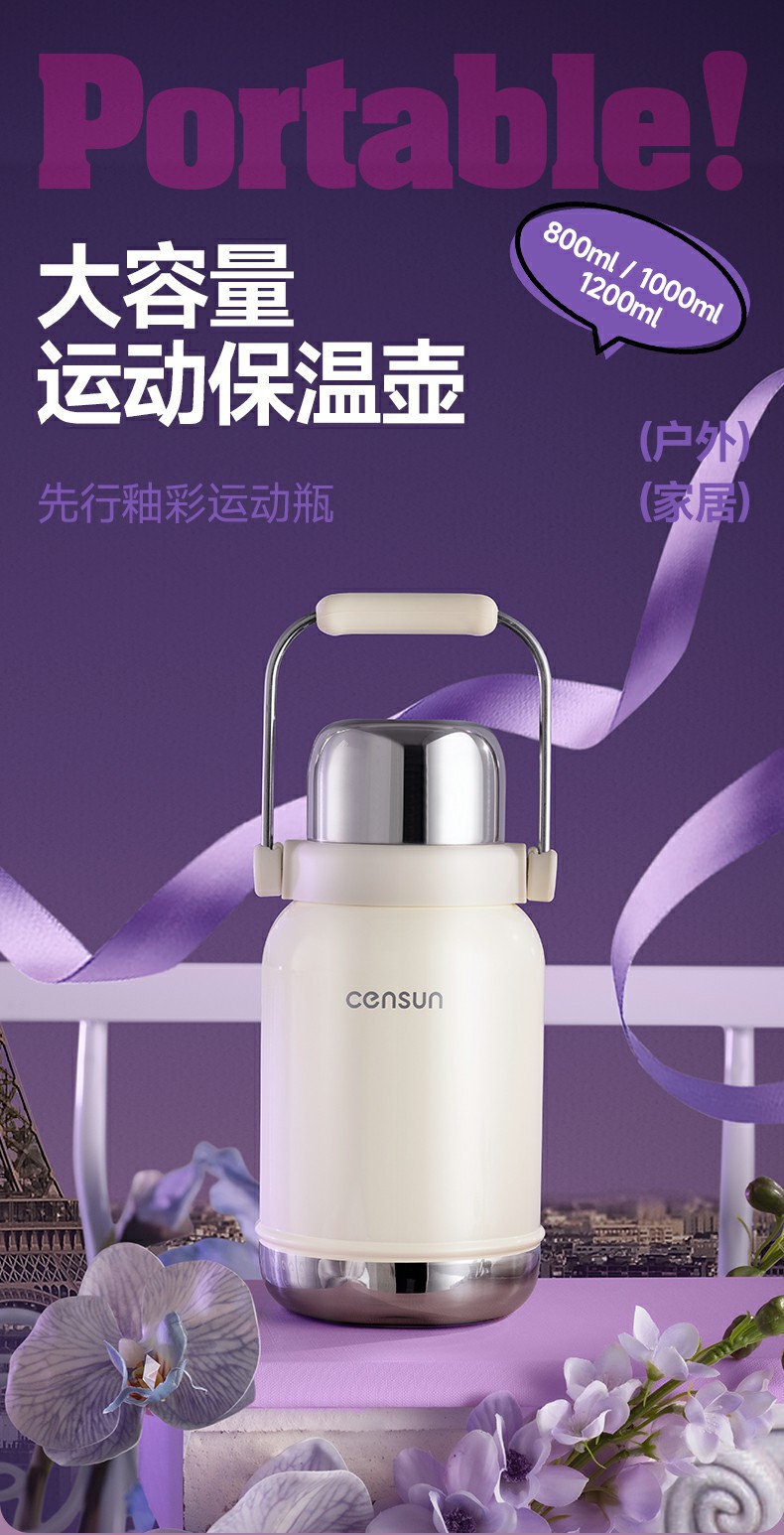 뚱뚱한 동라이 폭발 대용량 보온병 유약 스포츠 병 316 휴대용 로프 야외 스포츠 냄비 보온병
