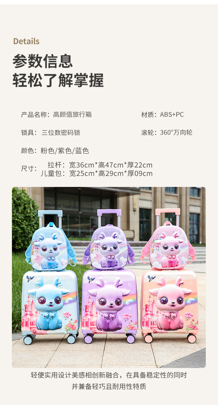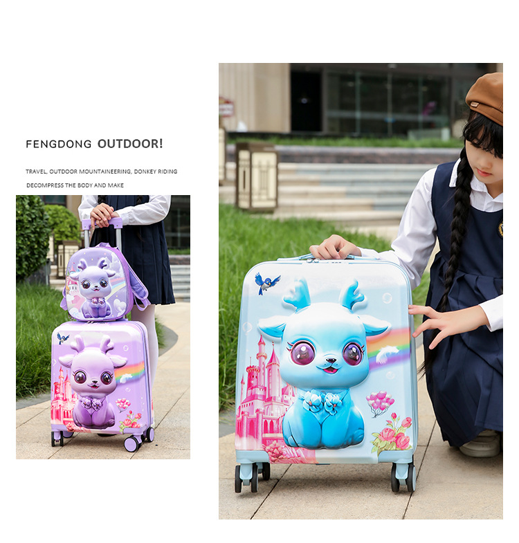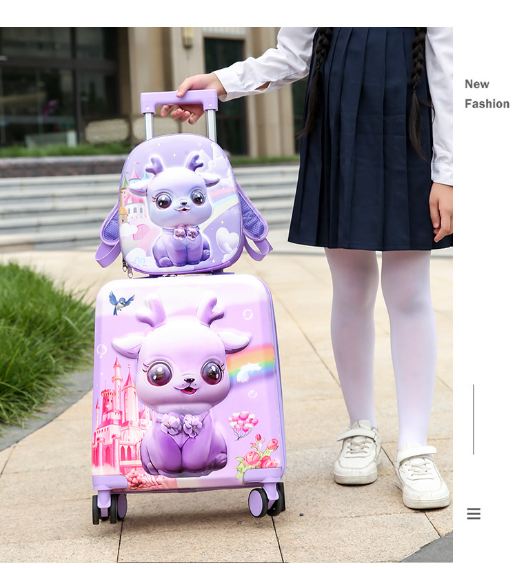 새로운 어린이용 여행 가방, 기내 반입 가능, 대용량, 만화 캐릭터 세트, 트롤리 가방, 도매, 수납 가능한 여행 가방, 배낭스토어 가기