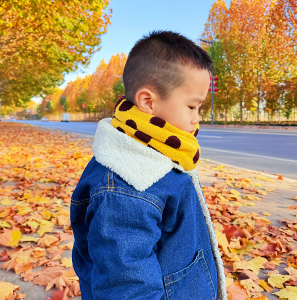 • 어린이 스카프 [땡땡이] 검정색과 노란색