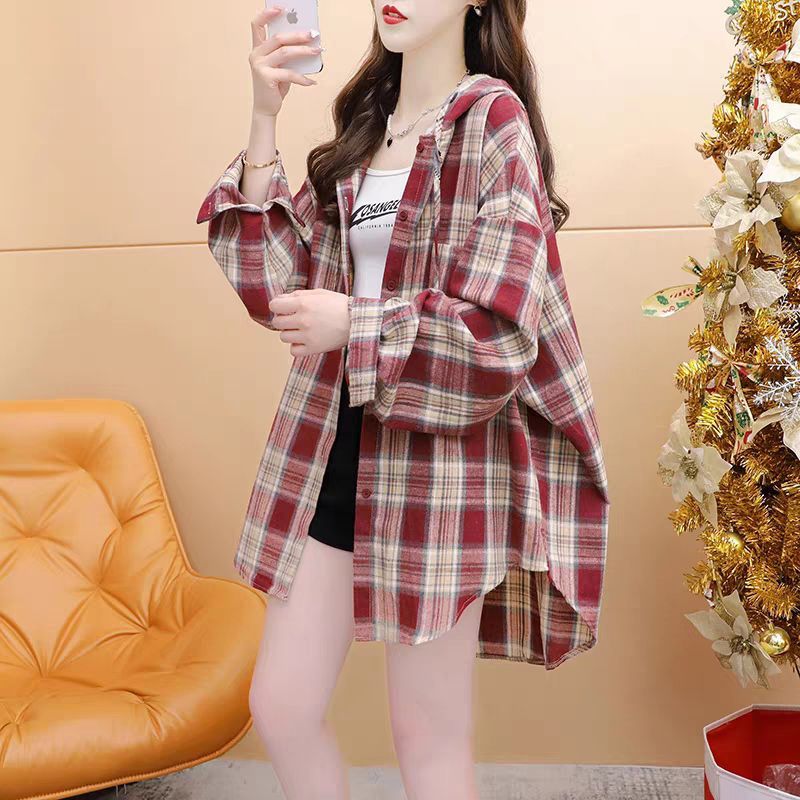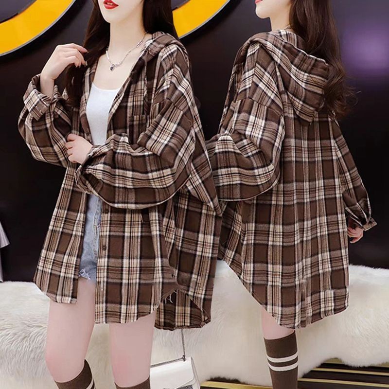 [재고] 여성 봄 · 가을 신형 후드가 깔린 셔츠 캐주얼 한국식 긴팔 재킷