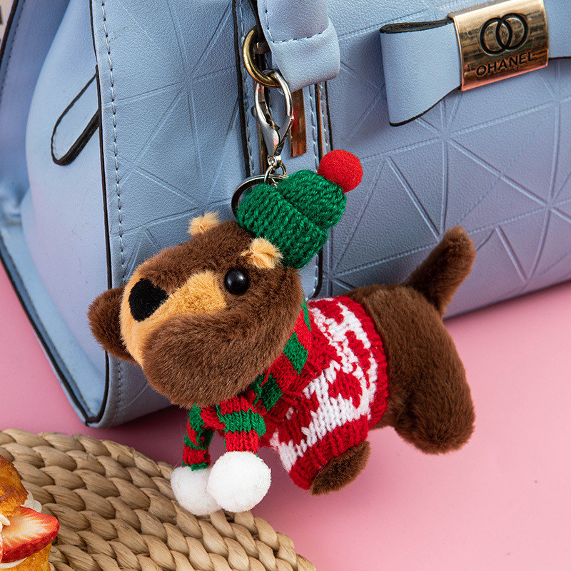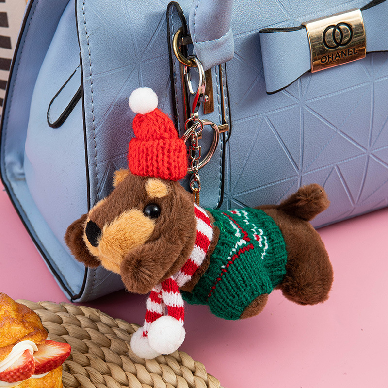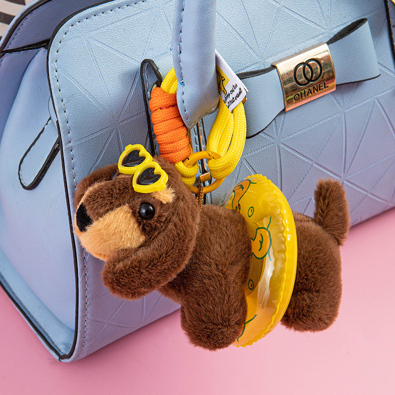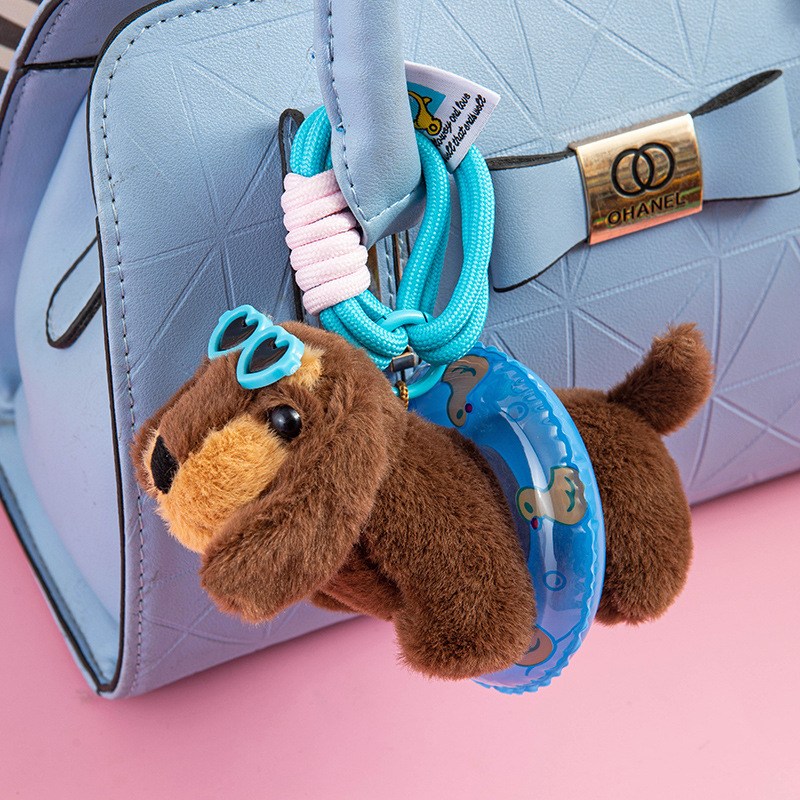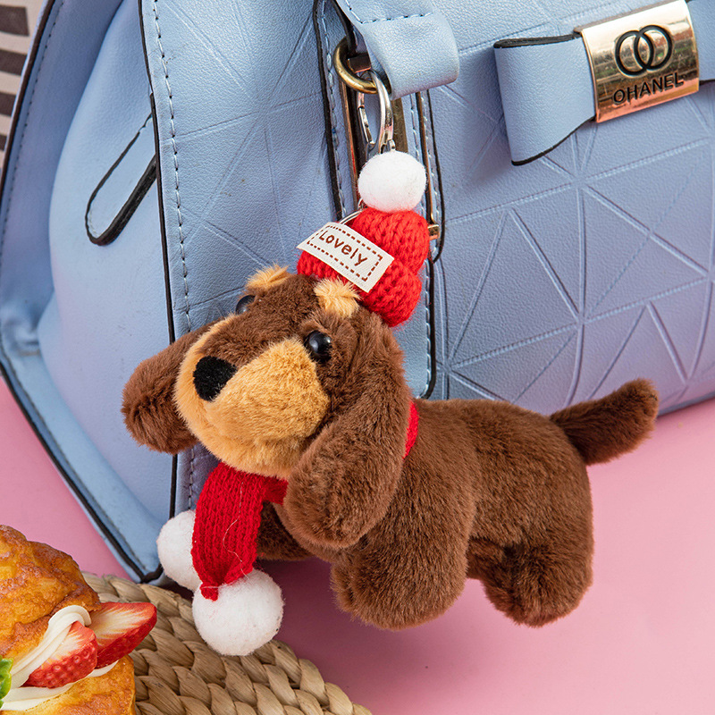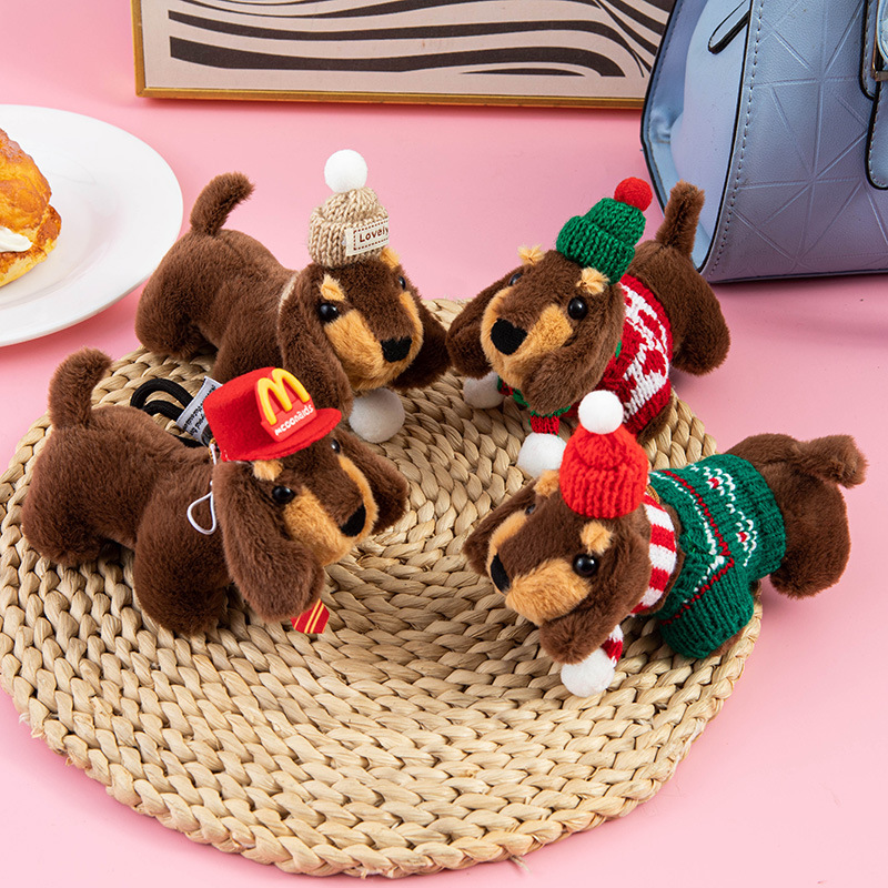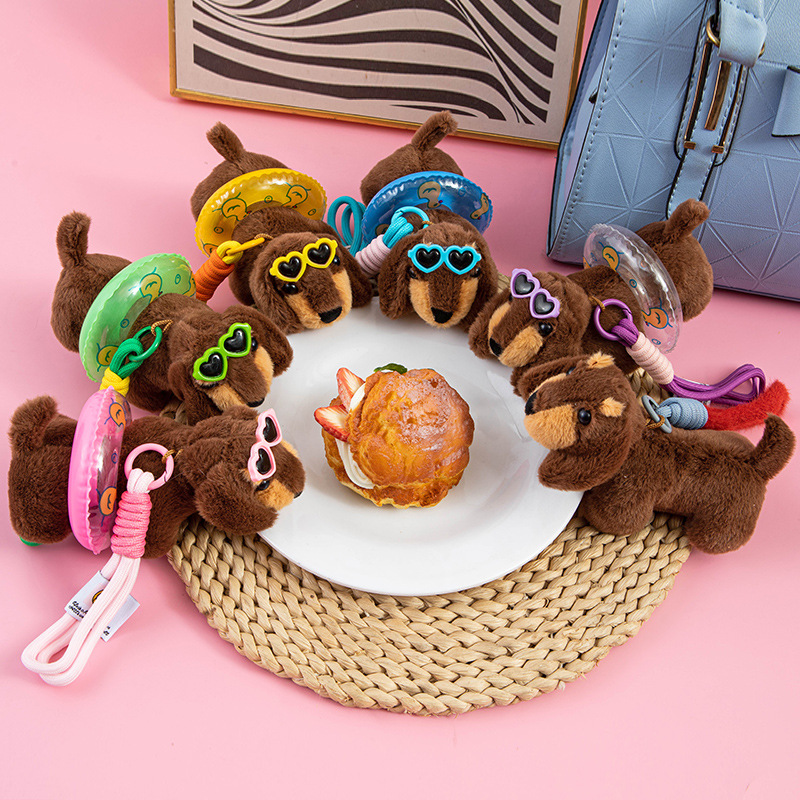 한국식 귀여운 만화 닥스 훈트 키 체인 봉제 인형 가방 펜던트 미니 인형 매달려 장식품