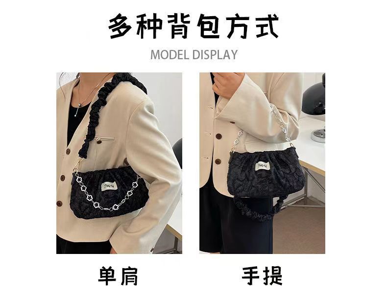 프랑스 틈새 디자인 하이 엔드 플리츠 언더 암 가방 유행 올 매치 체인 2024 새로운 가을 작은 사첼스토어 가기