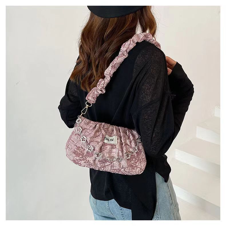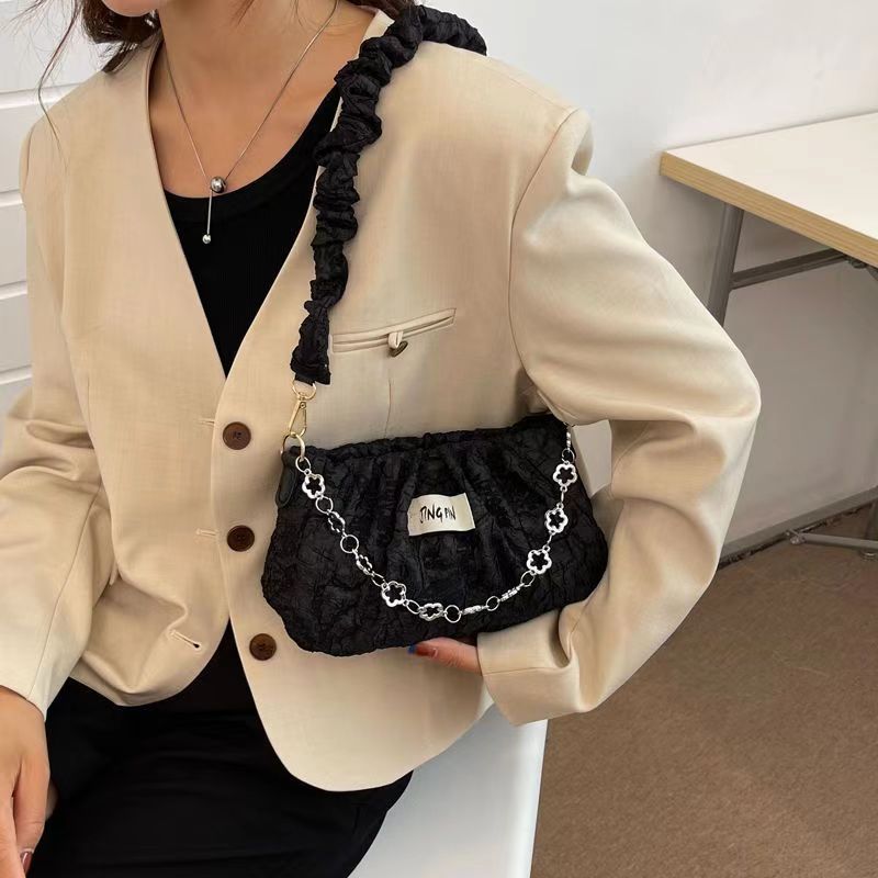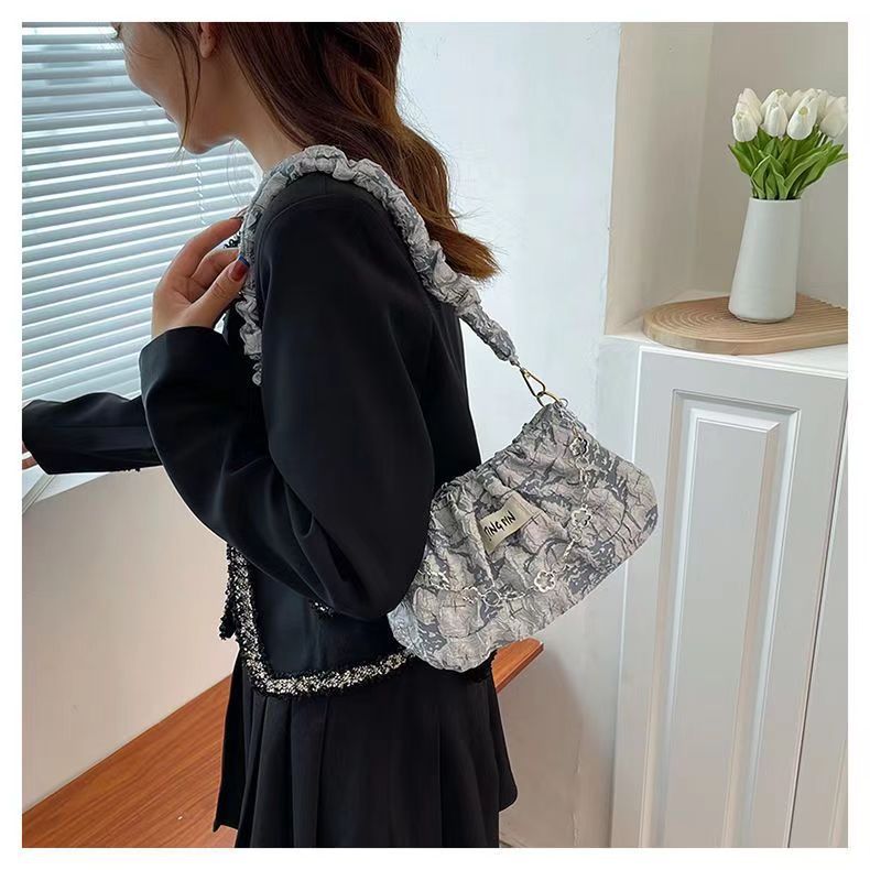프랑스 틈새 디자인 하이 엔드 플리츠 언더 암 가방 유행 올 매치 체인 2024 새로운 가을 작은 사첼